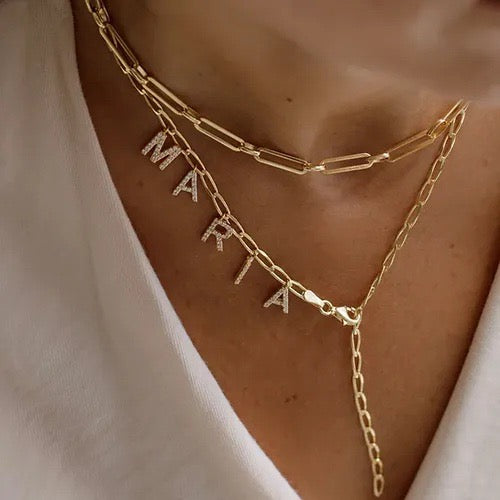 Jumbo Bubble Letter Necklace, Large CZ Diamond Initial Pendant, 925 Sterling Silver Personalized Jewelry
