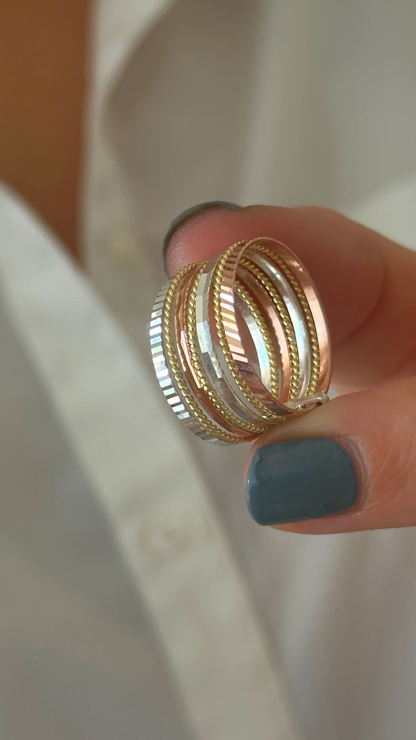 10mm 7 Seven Days Stack Thick Wide Band Ring Set 14K Tricolor Gold Rose Sterling Silver Blessing Ring Three Tone Jewelry gift for her