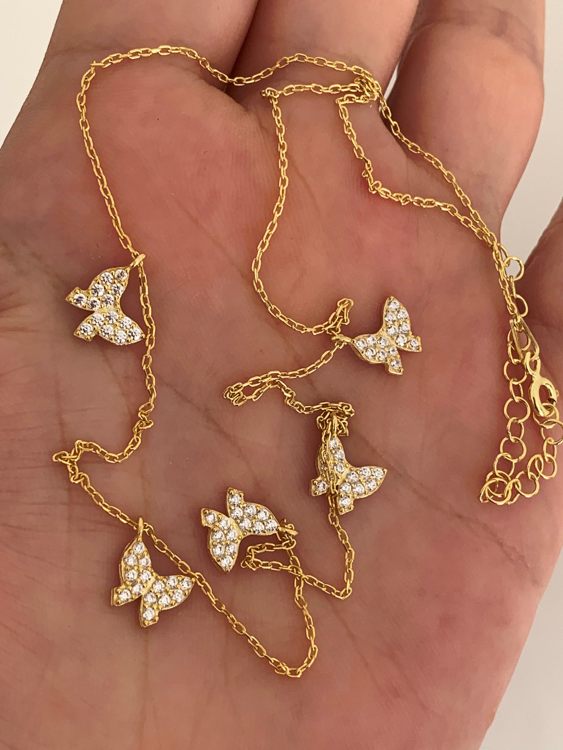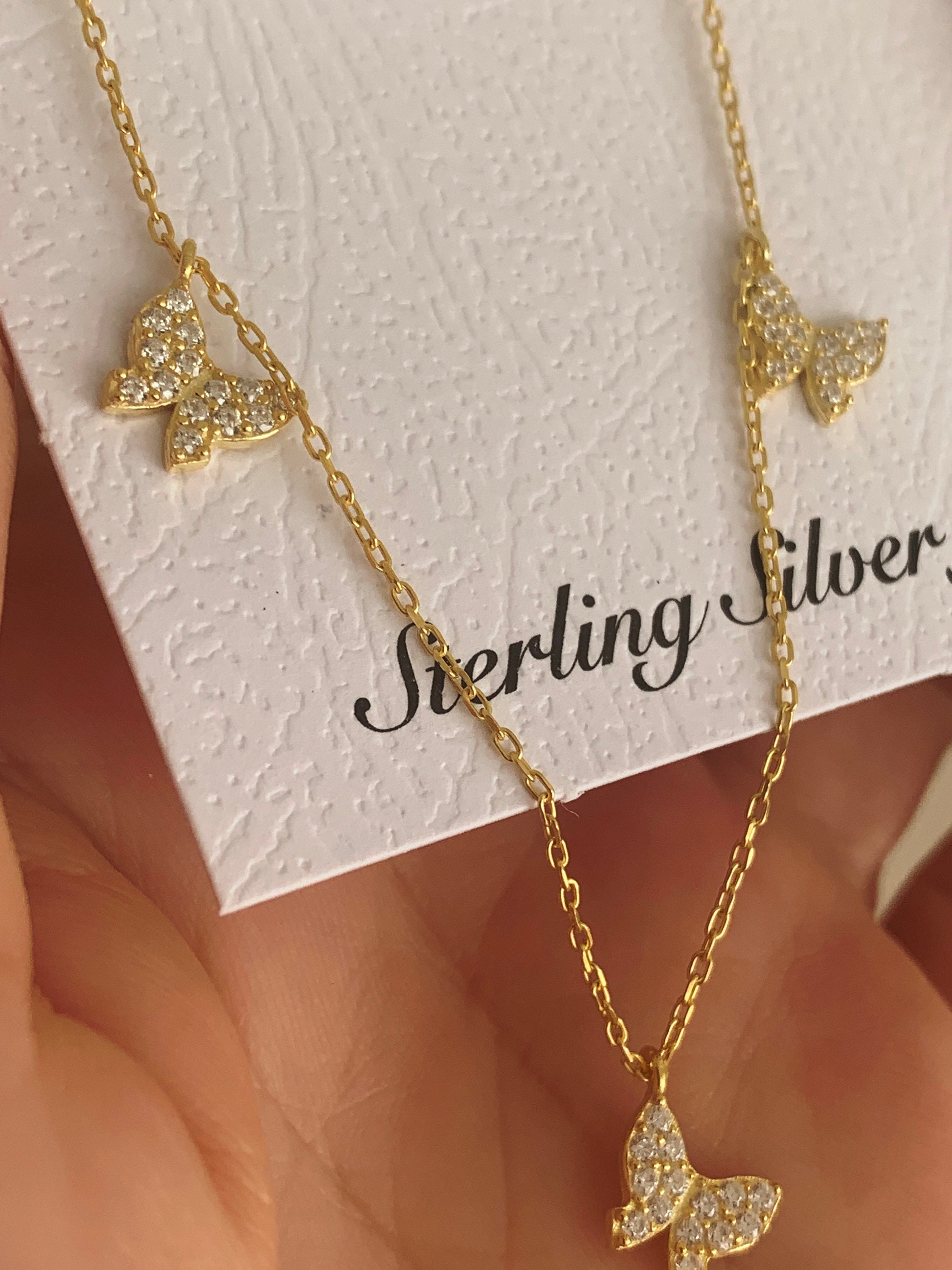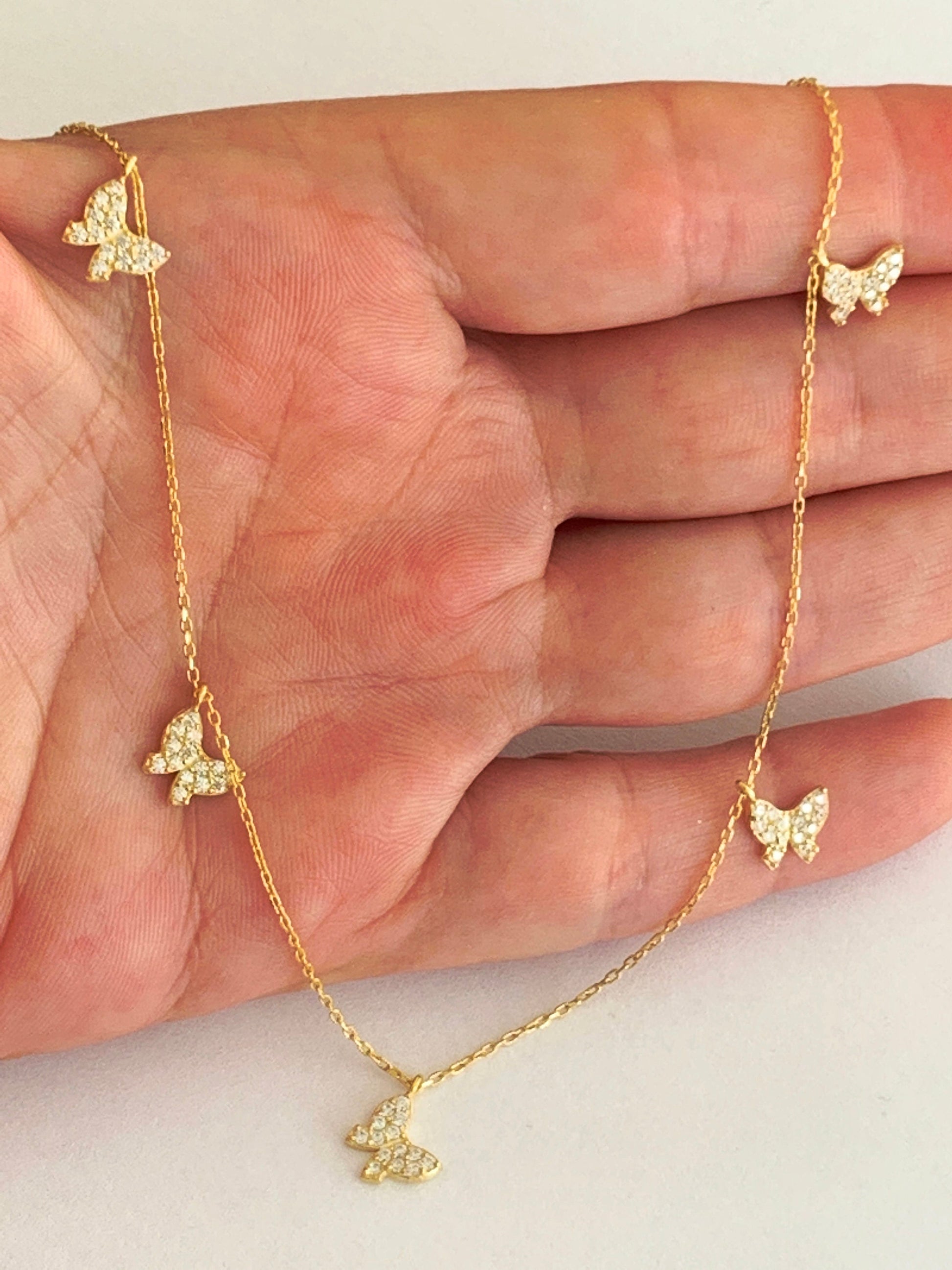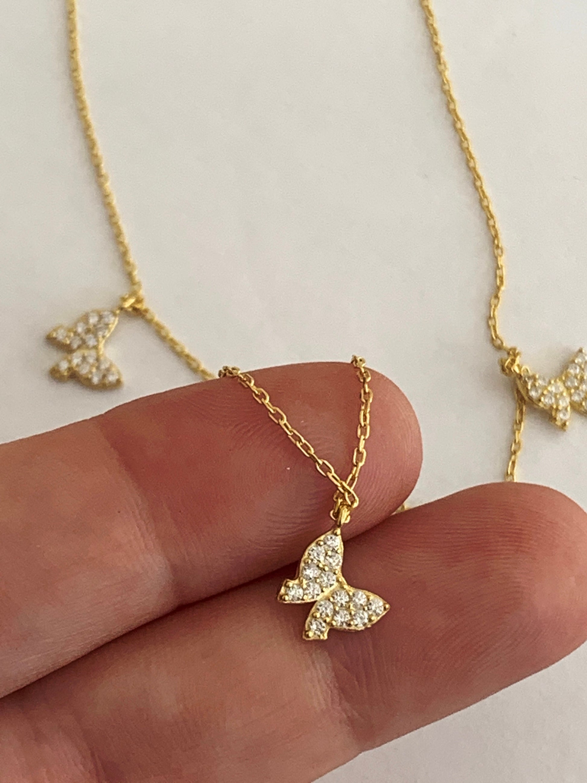 18K Gold Butterfly Necklace, Gemmed Butterfly Necklace, Layering Necklace, Gift for Her, Mothers day Gift, Christmas Gift , Birthday Gift