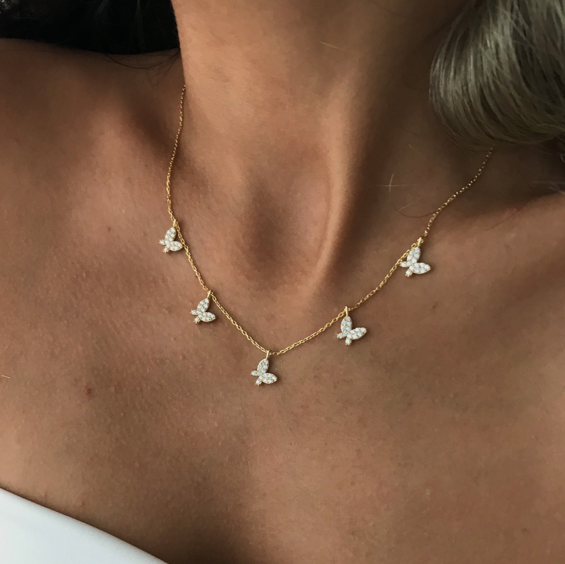 Gold Butterfly Necklace, Butterfly Choker, Layering Necklace, Pave Zirconia Gemstone, Gift for her, Birthday Gift idea, Trendy 925 Sterling Silver Jewelry Shop
