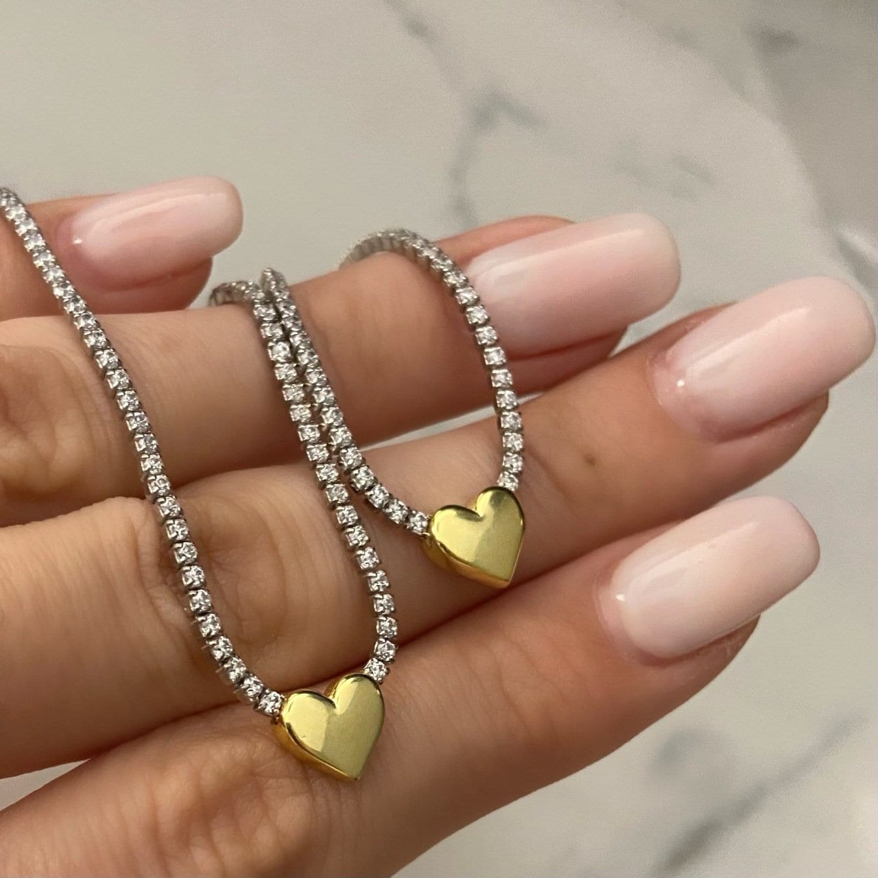CZ Tennis Necklce with Heart Description: