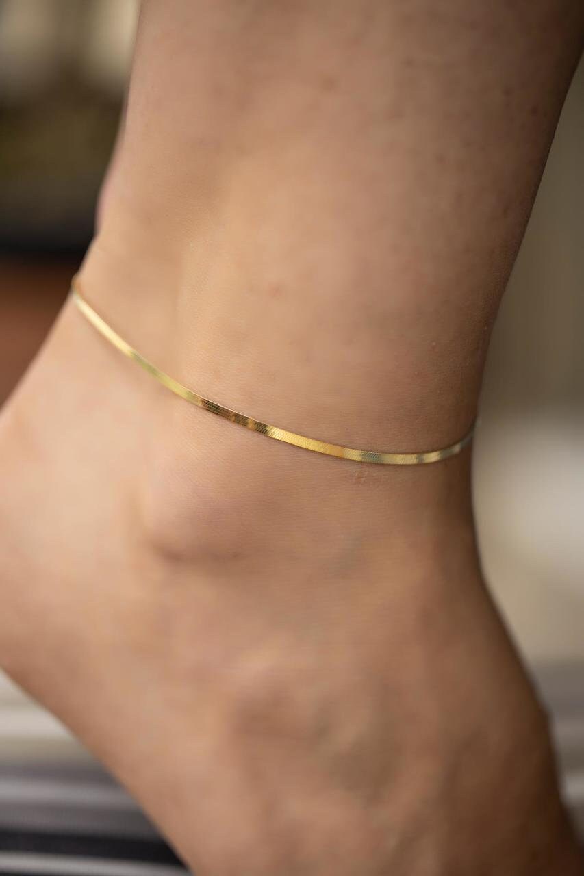 925 Sterling Silver Magic Herringbone Anklet, Flat Snake Chain Anklet, Gold Chain Anklet, Beach Anklet, Silver Anklet, Layering Anklet, 3mm