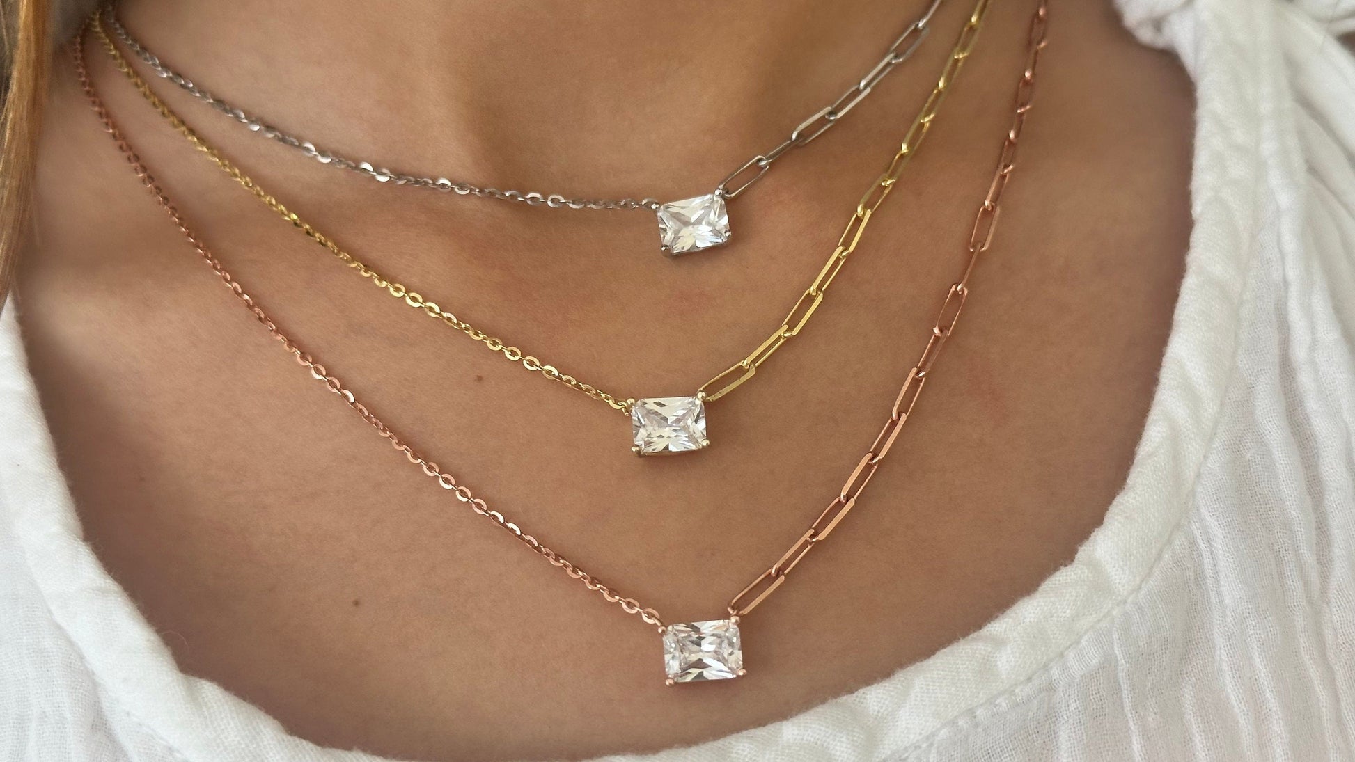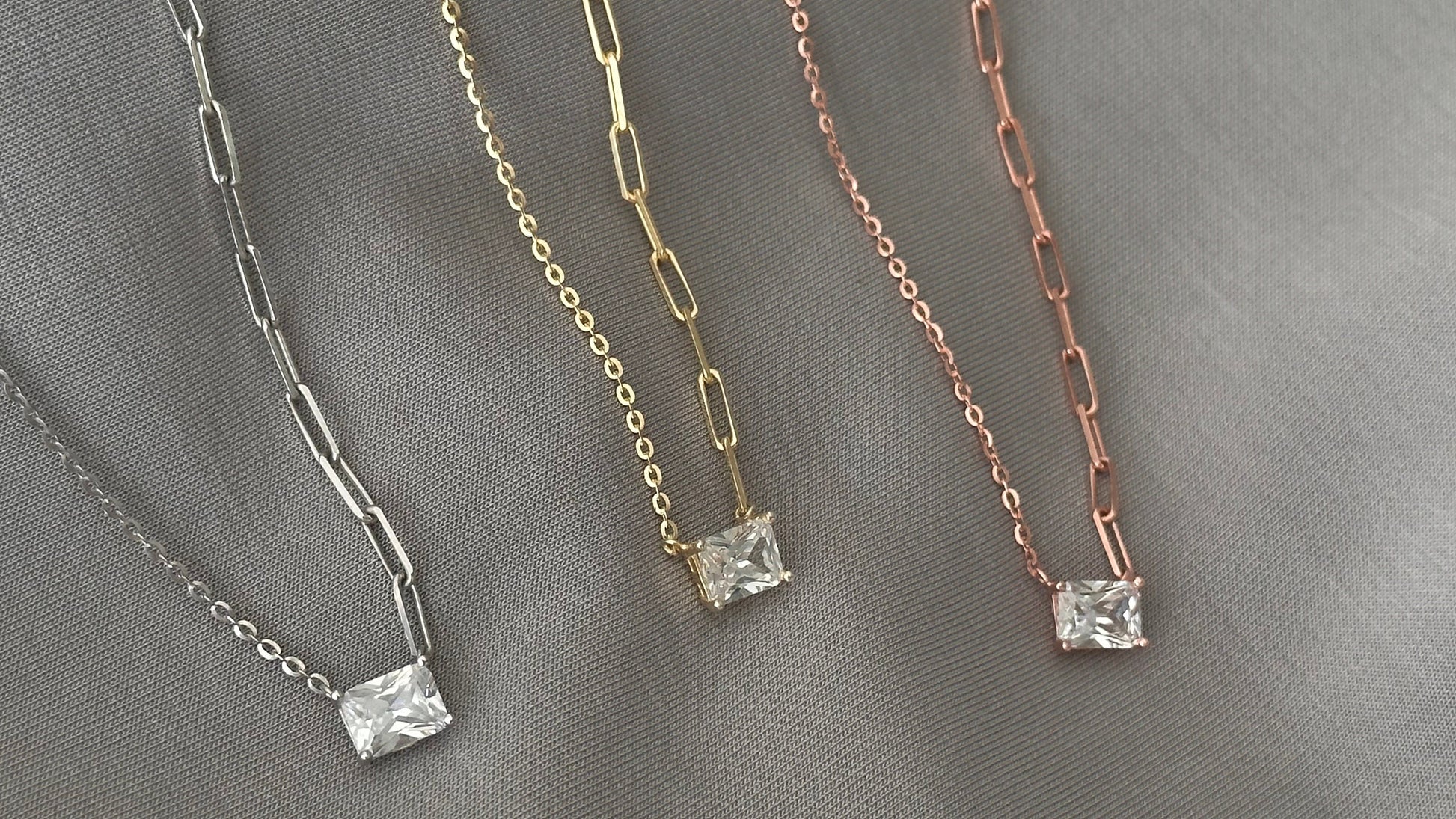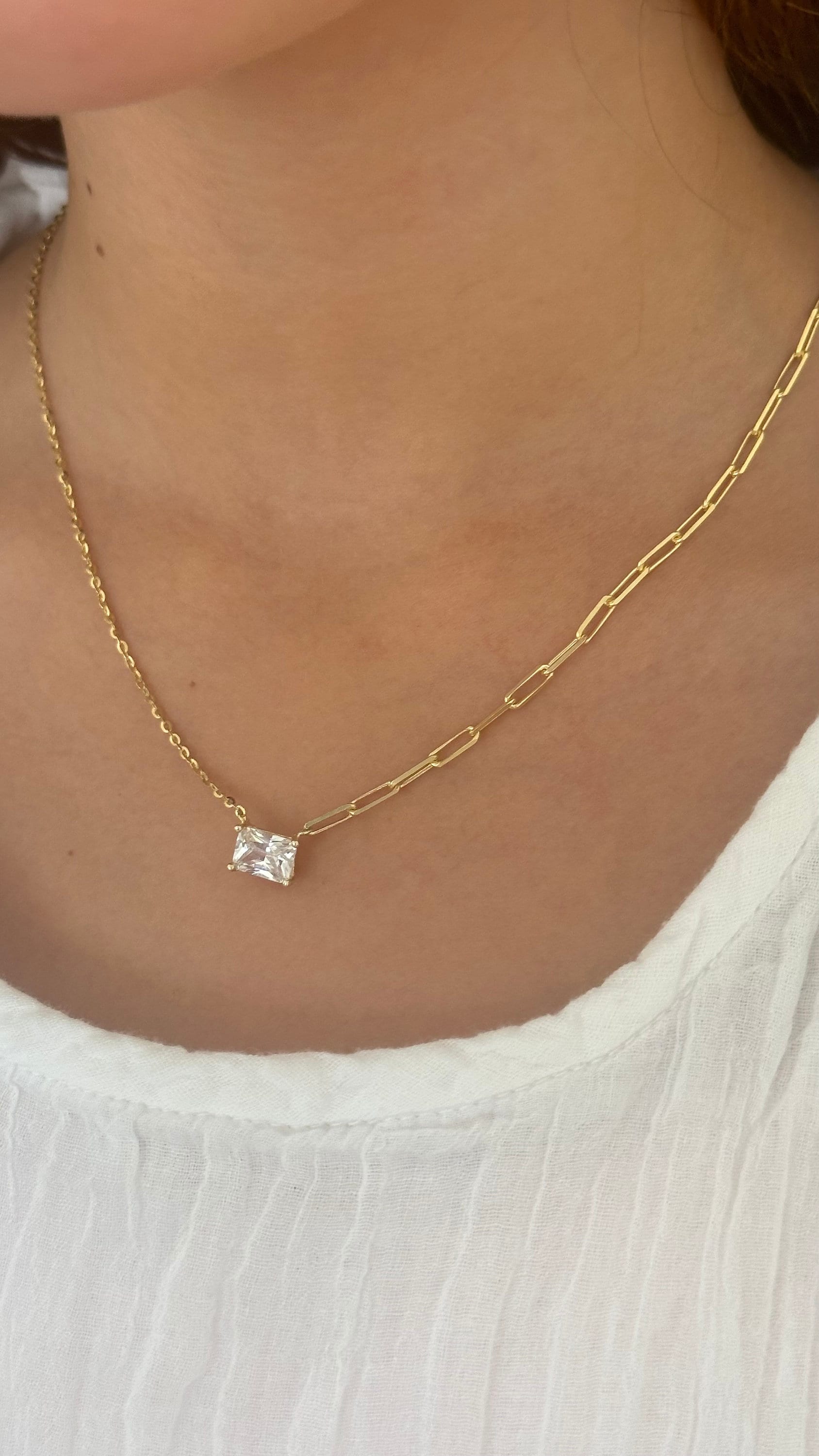 Baguette Necklace Crystal Diamond Shiny Zirconia Rectangle Stone Emerald Cut Pendant Necklace Layering Gift for her Baguette Jewelry 925