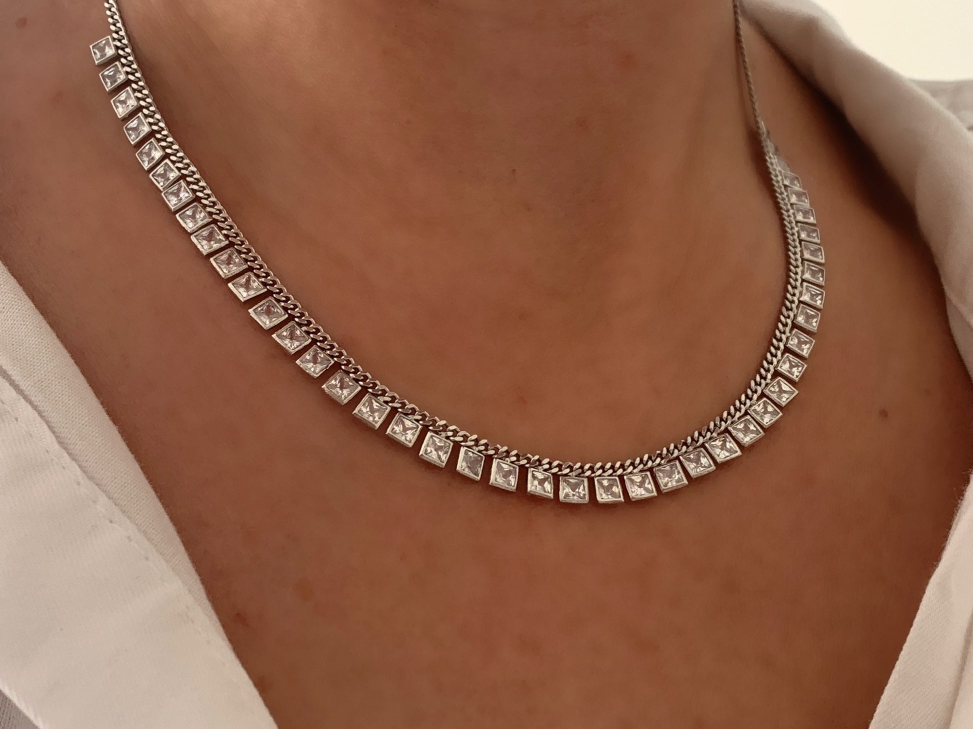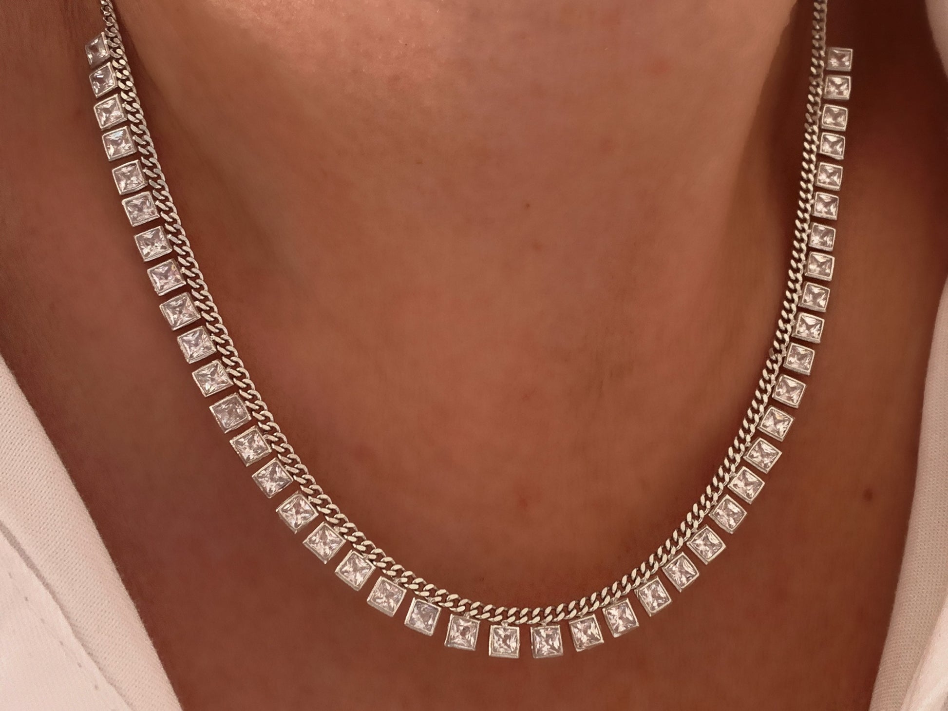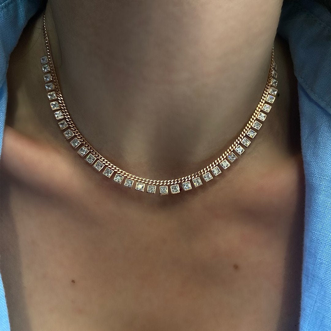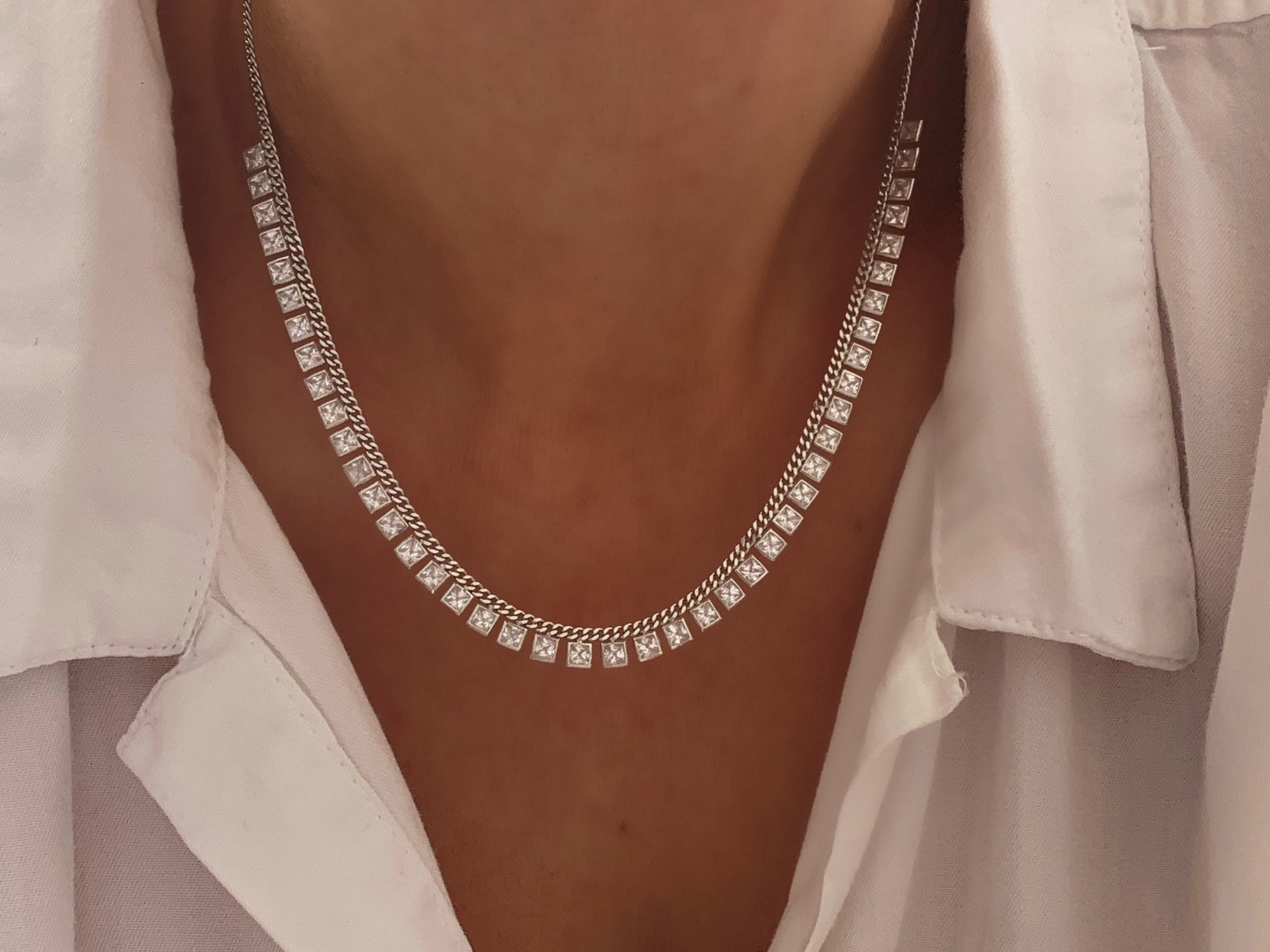 Baguette Choker Necklace, Baguette Chain, Zircon Necklace, Diamond Necklace, Crystal Necklace, CZ Necklace, Gift for her, Trendy Jewelry, Choker Necklace