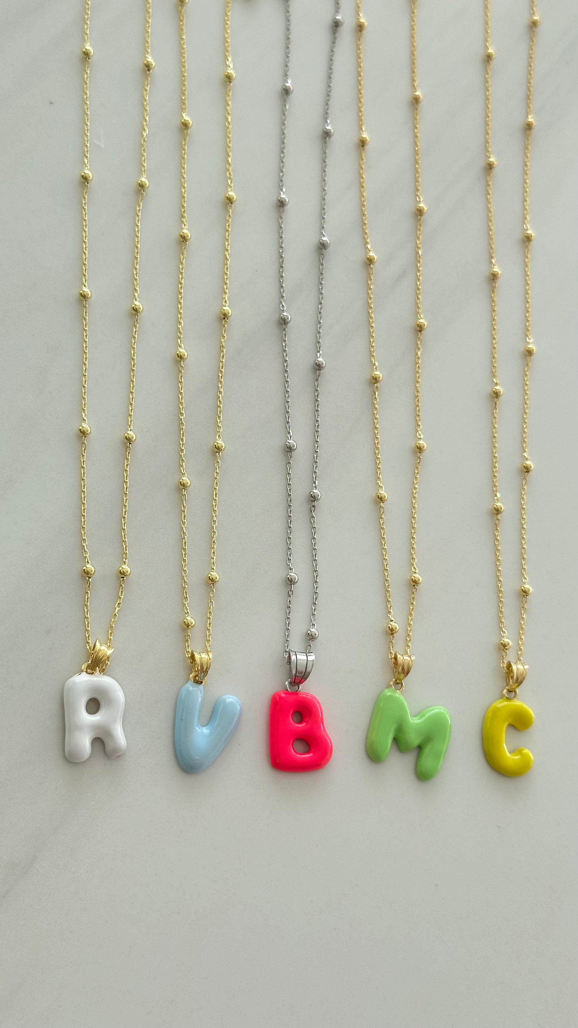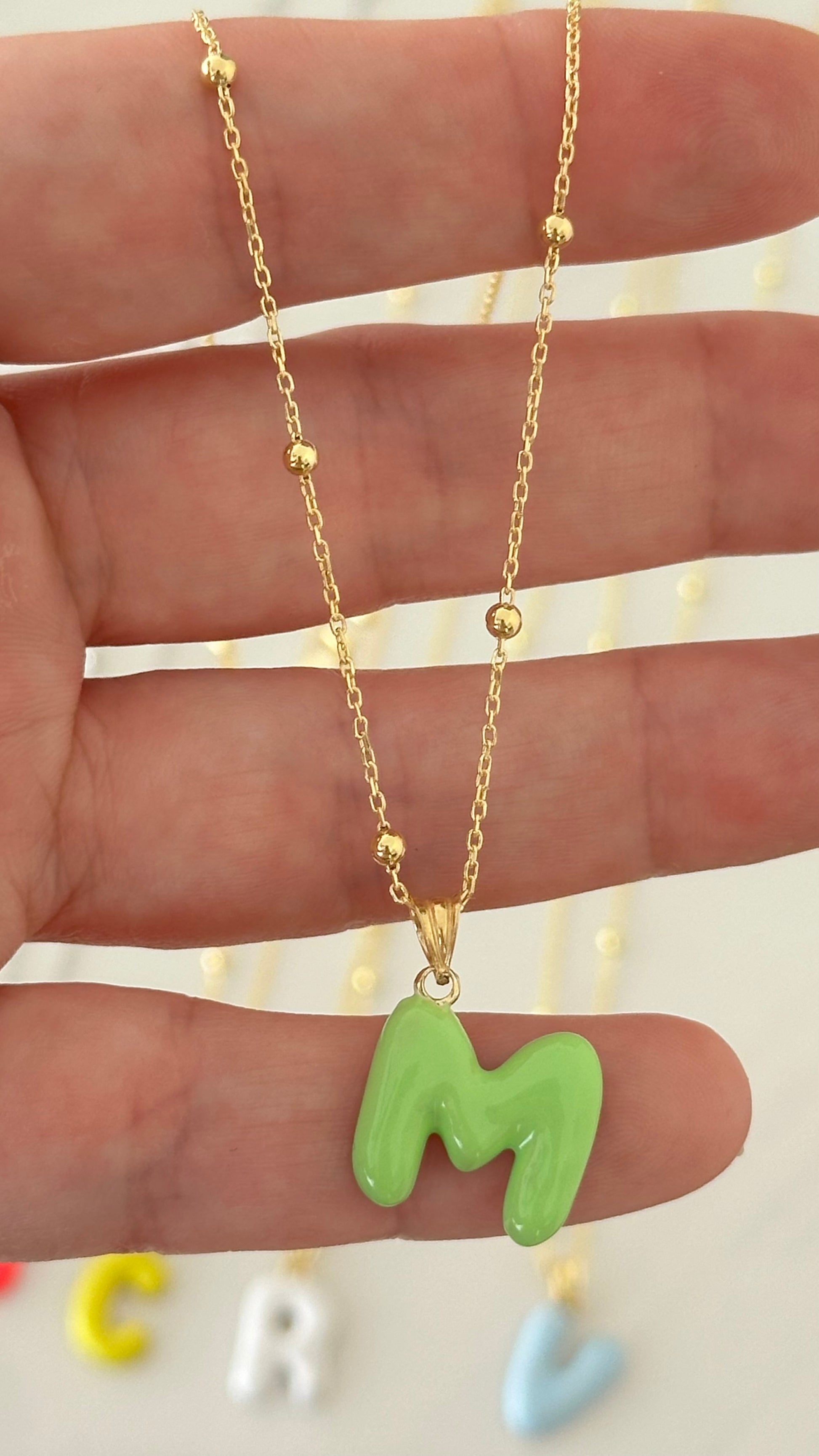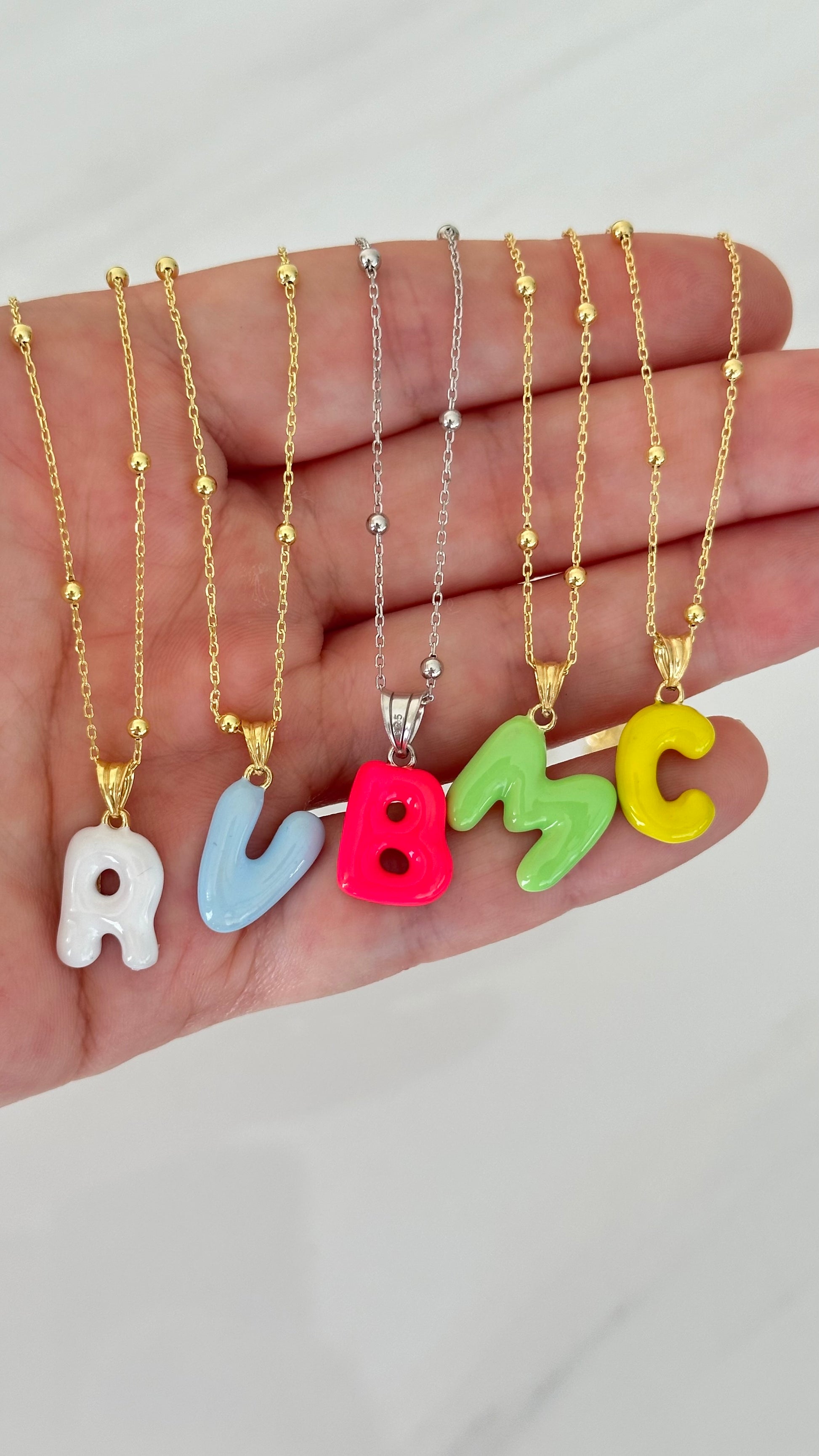 Baloon Letter Necklace, 3D Puff Bubble Initial, Colorful Enamel Initial Necklace, Enamel Pendant, Personalized Gifts, Enamel Jewelry, Gift for her, 925 Sterling Silver