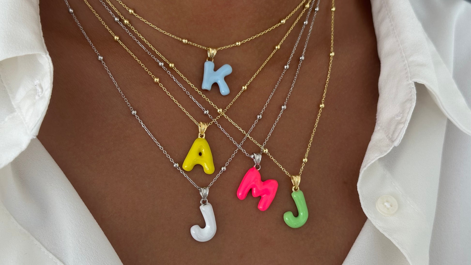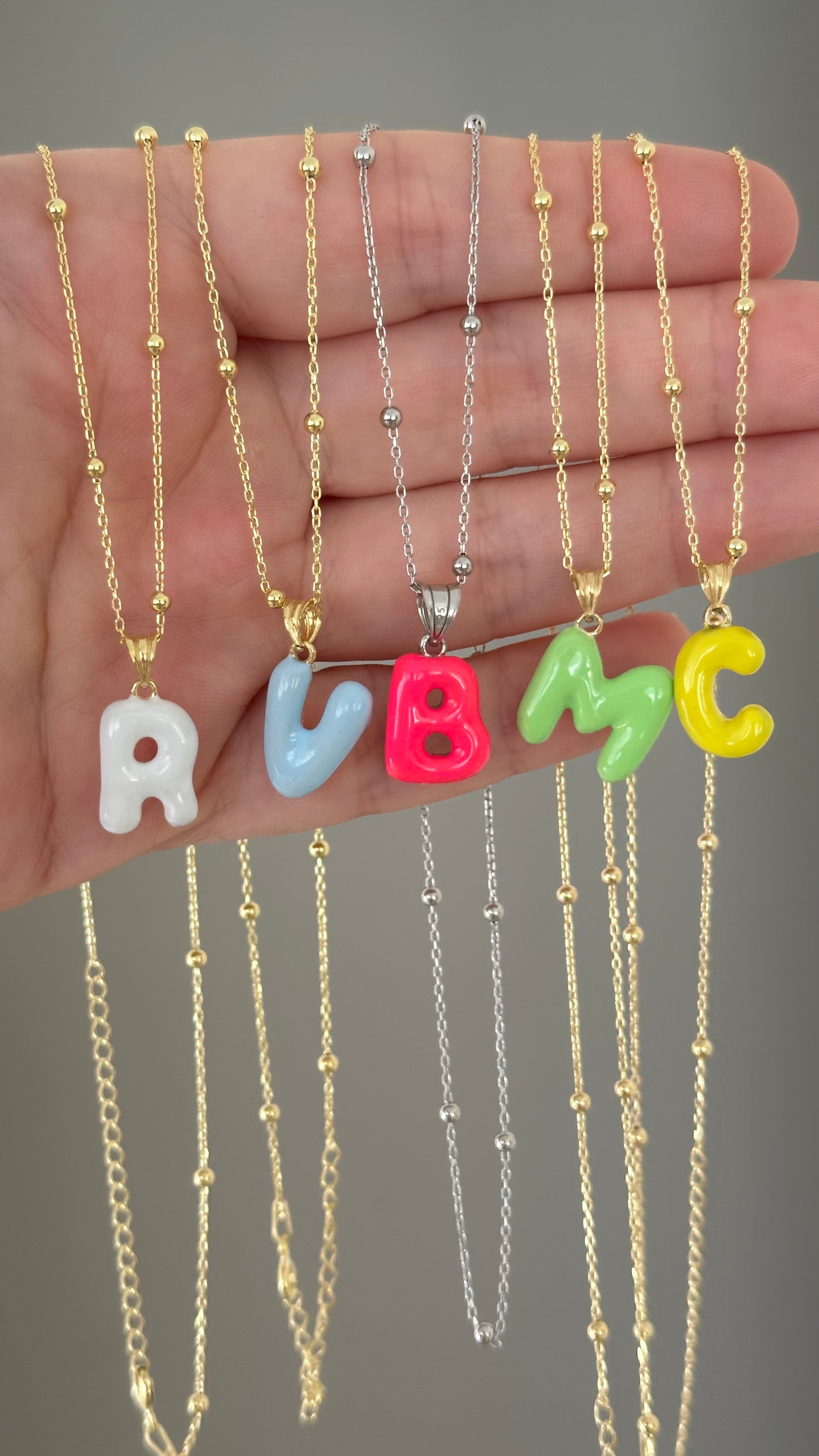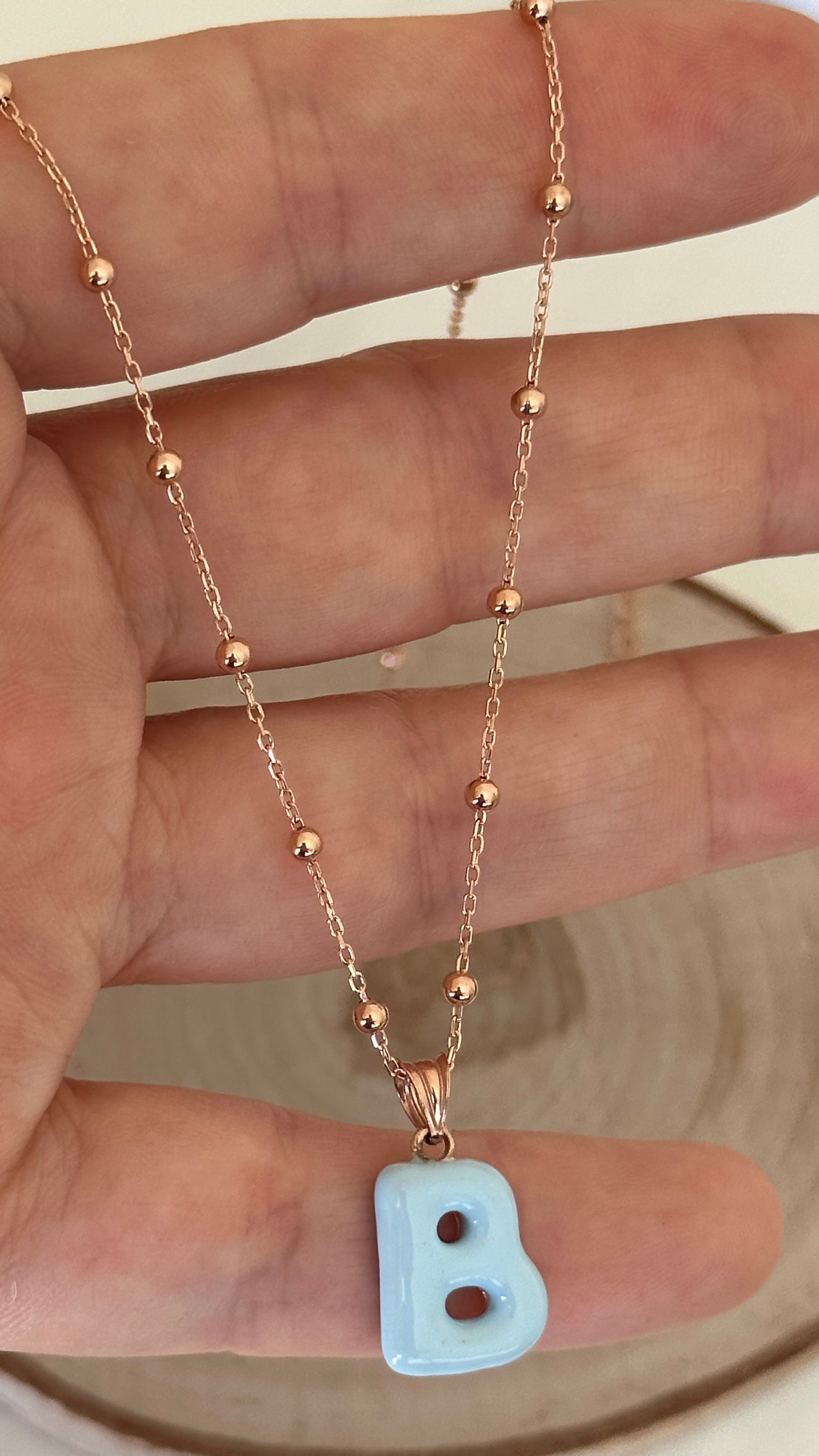 Baloon Letter Necklace, 3D Puff Bubble Initial, Colorful Enamel Initial Necklace, Enamel Pendant, Personalized Gifts, Enamel Jewelry, Gift for her, 925 Sterling Silver
