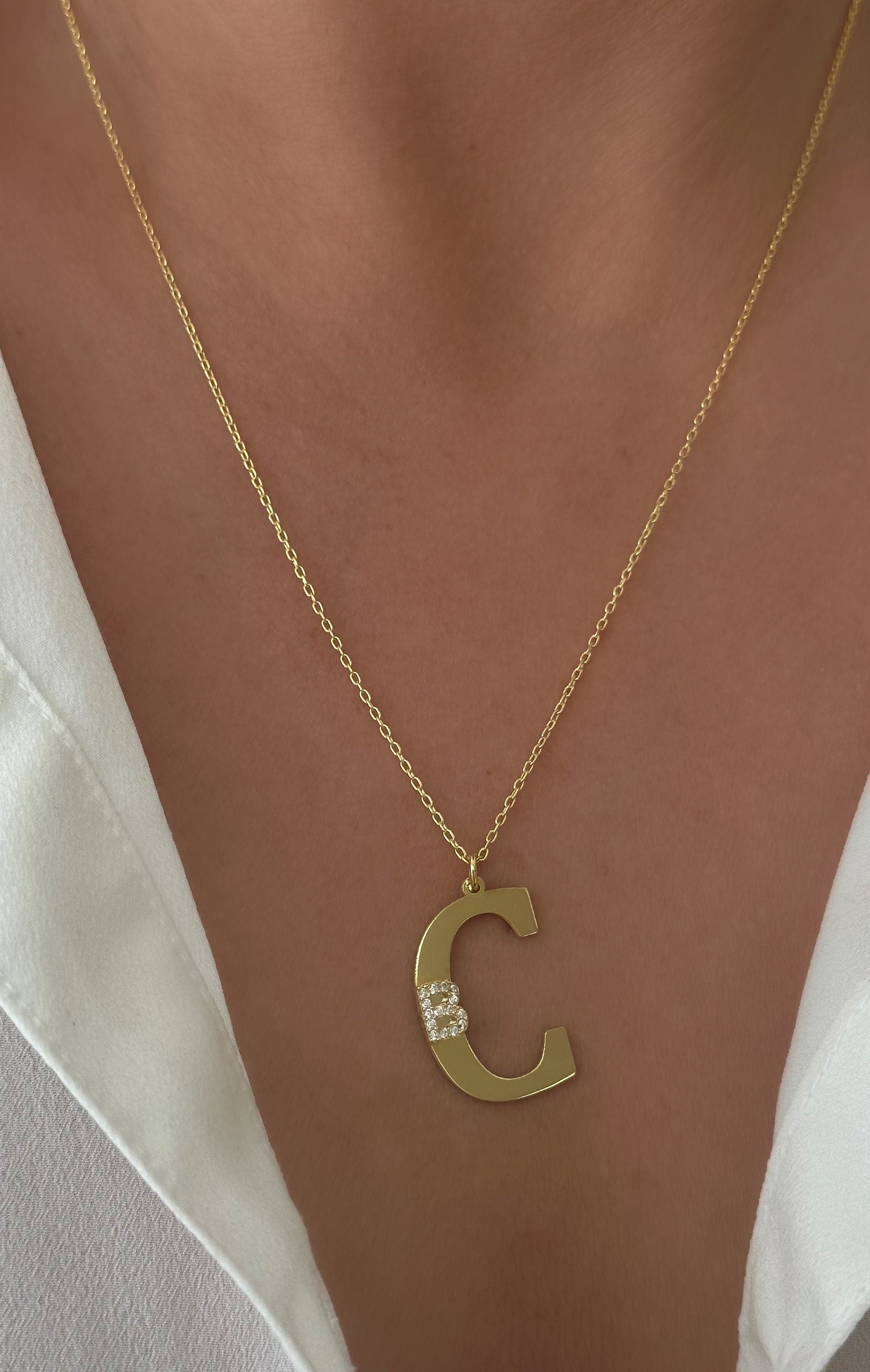 CHARM: Upper-Case Letter Initial pendant is Approximately Hight 25mm Width: 18.3mm - Dimensions depends on the Letter - Small Initial is Clear Cubic Zirconia / CZ Stone