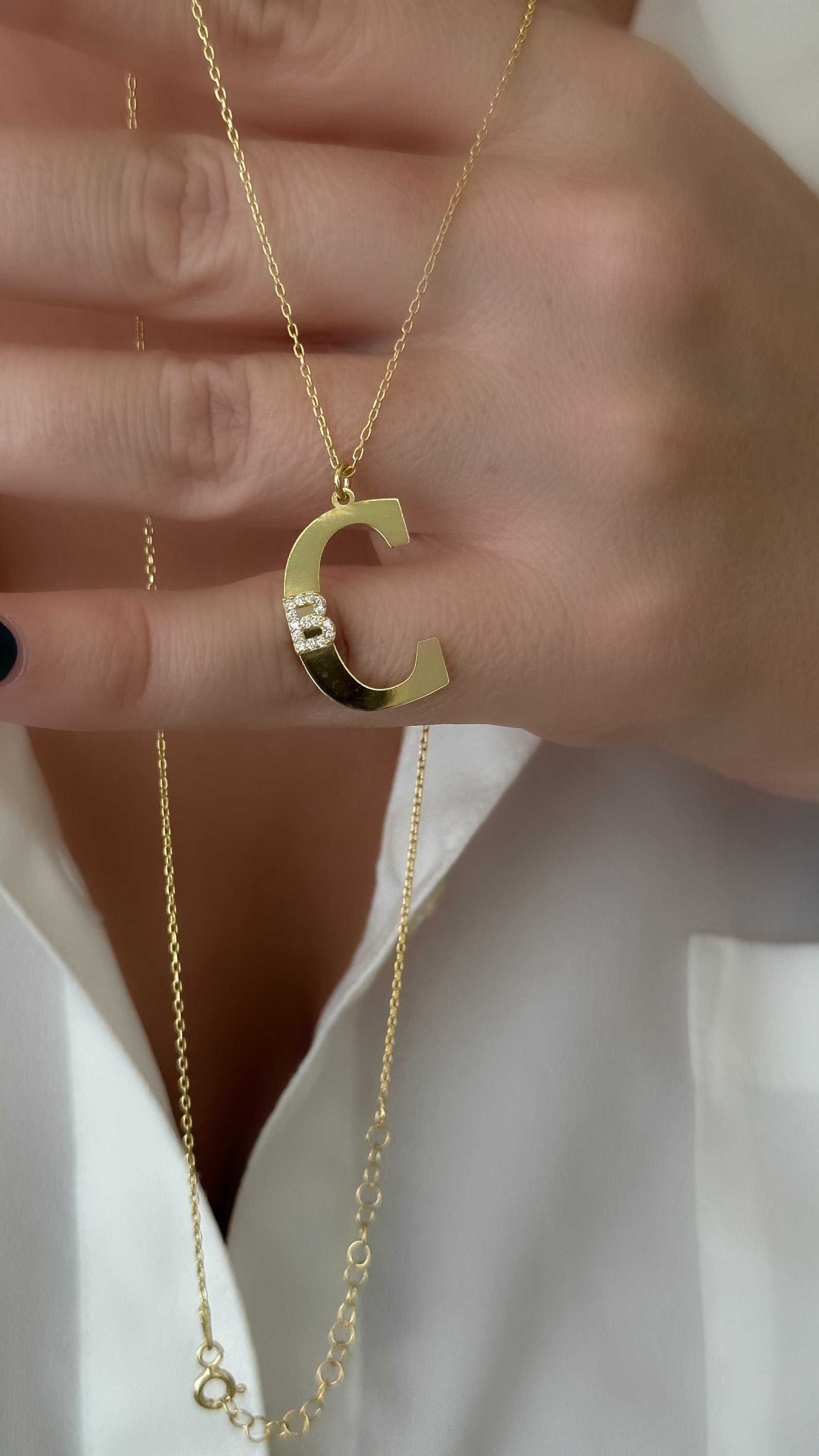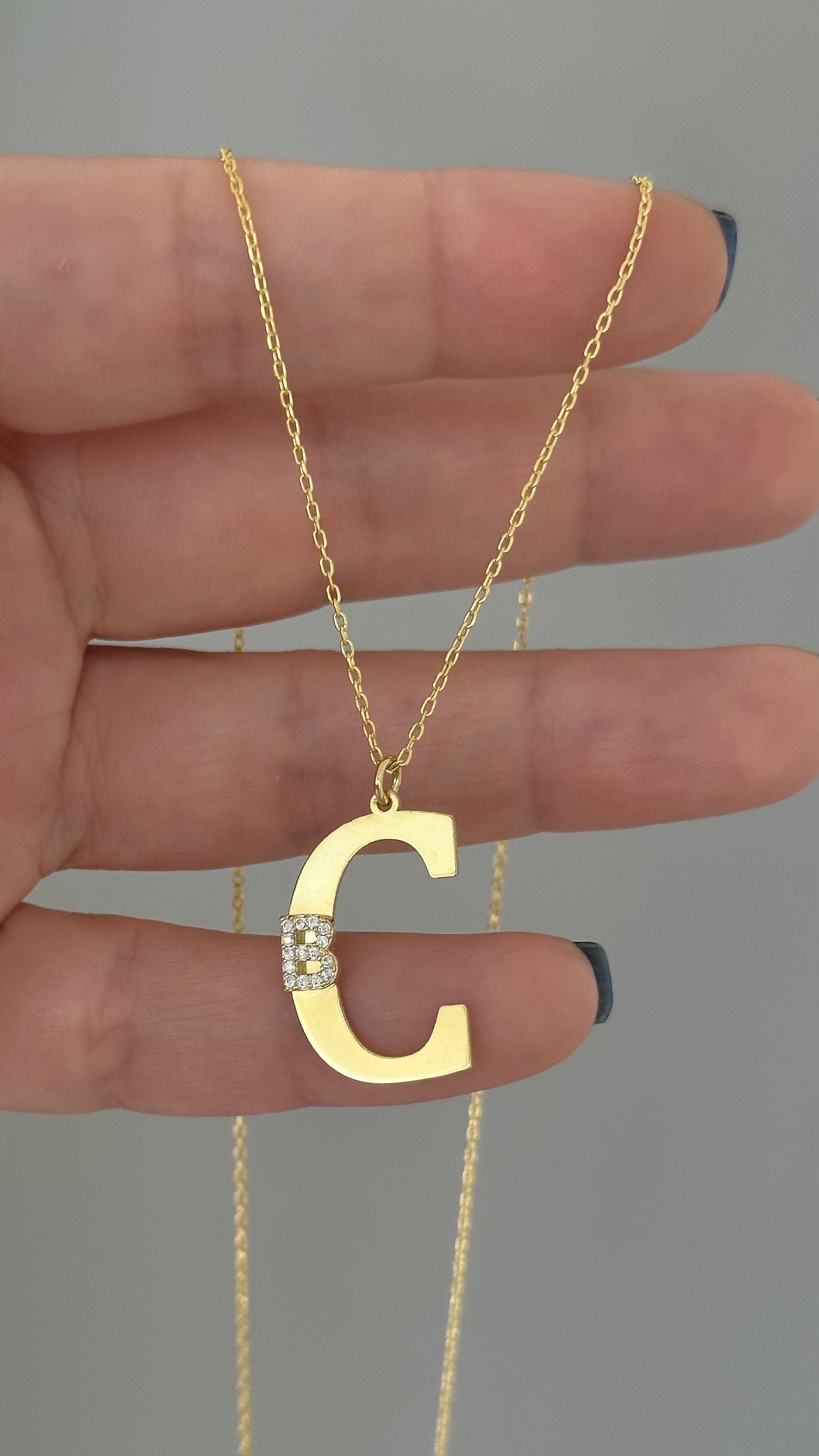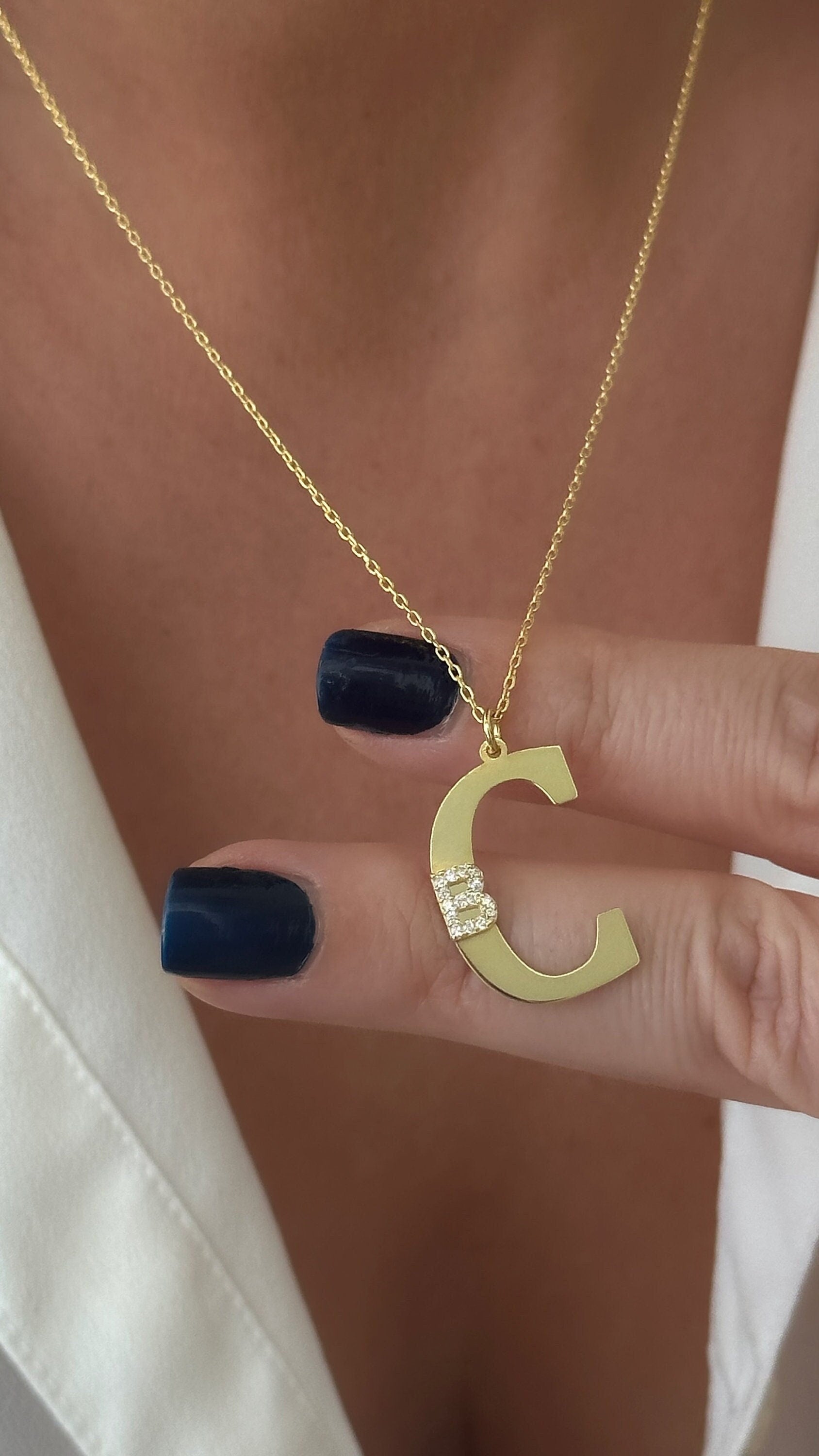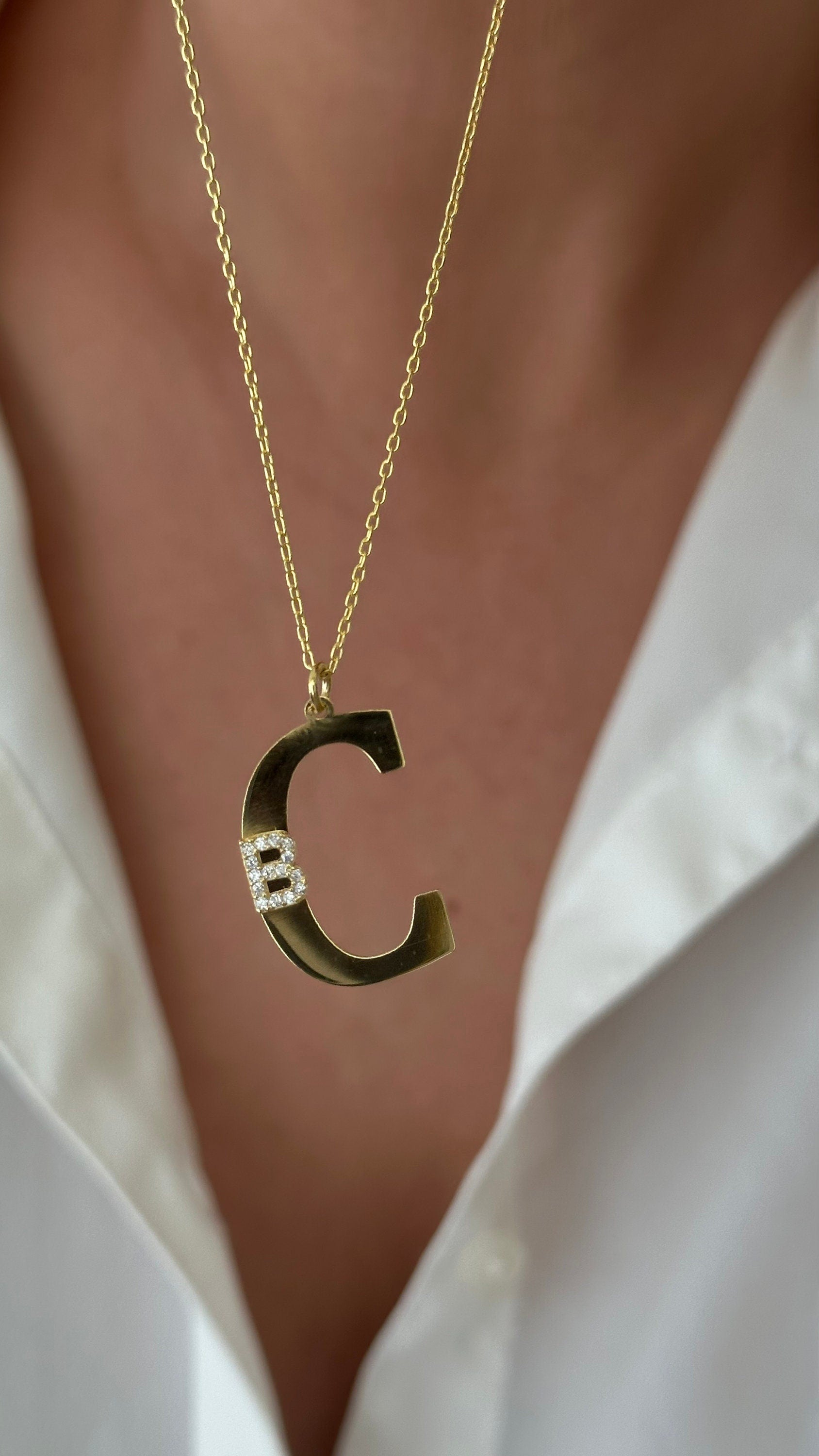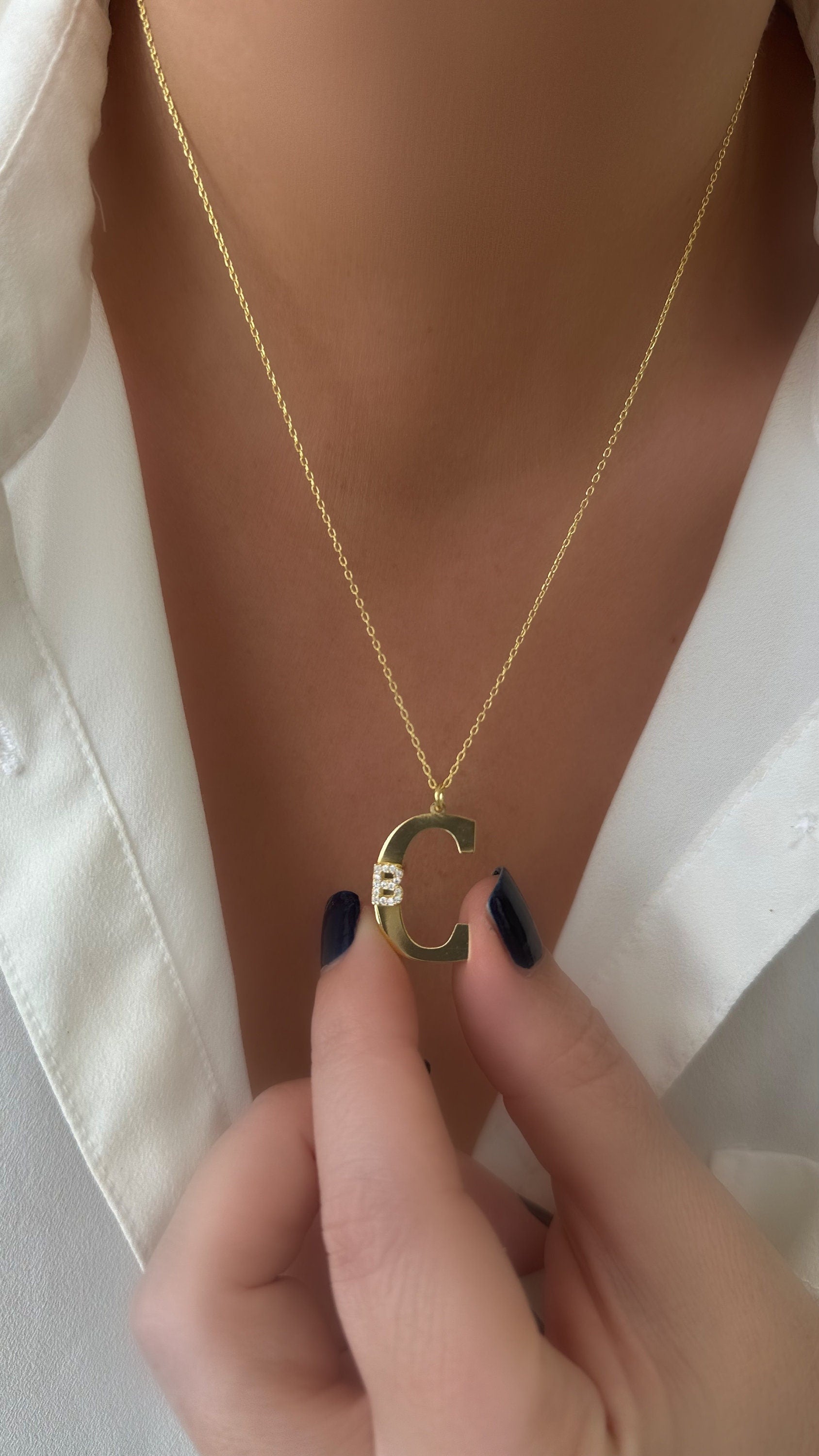 Big Double initial Necklace, Custom Two Letter Pendant, Large CZ Initials Necklace, Personalized gift, Couple necklace, Initial Jewelry, 925