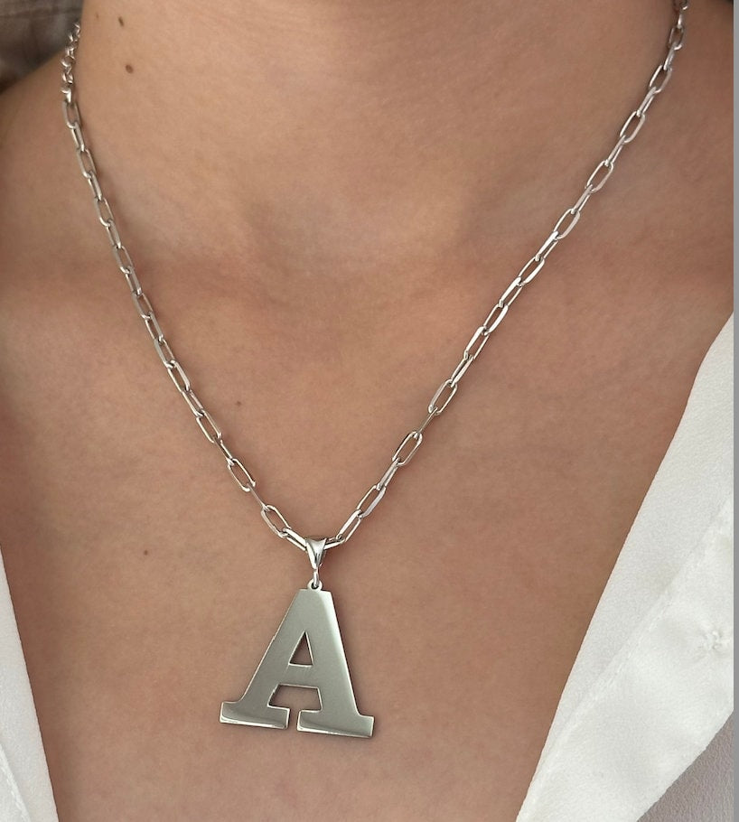 Big Letter Necklace, Large Initial Letter Necklace, Oversized Pendant Personalize Jewelry Gifts Women Men Customized