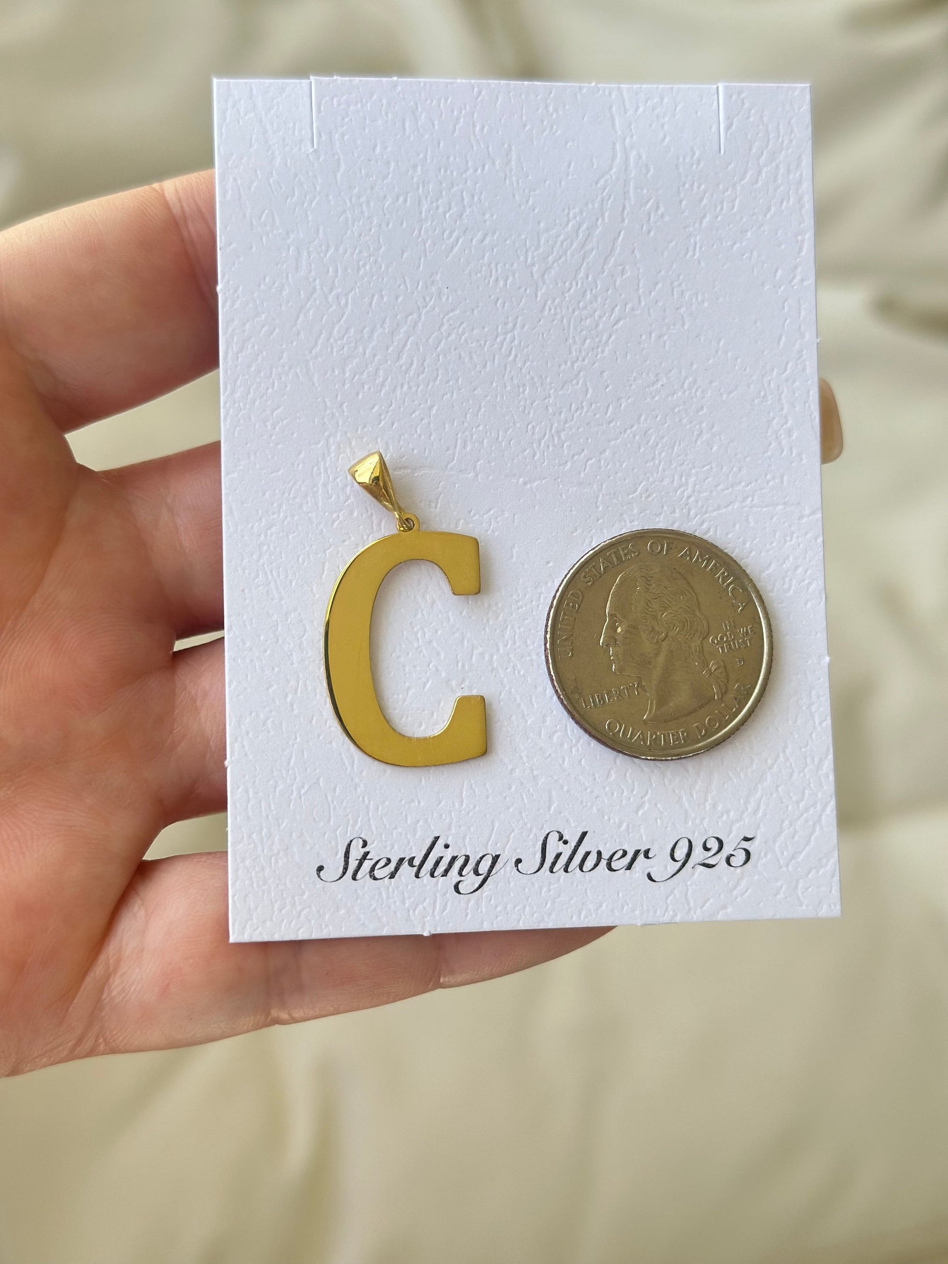 This personalized necklace features a big and oversized initial letter pendant, plated in 14k gold and made with 925 sterling silver paperlink chain. Stand out with this statement piece or give it as a unique and thoughtful gift.