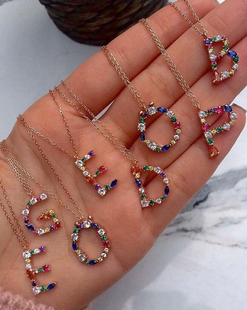 Big Letter Necklace, Large Initial Pendant Necklace, CZ Gemstone, Personalized Gifts, Zirconia Necklace, Layering Necklace, Statement Necklace, Customized Jewelry