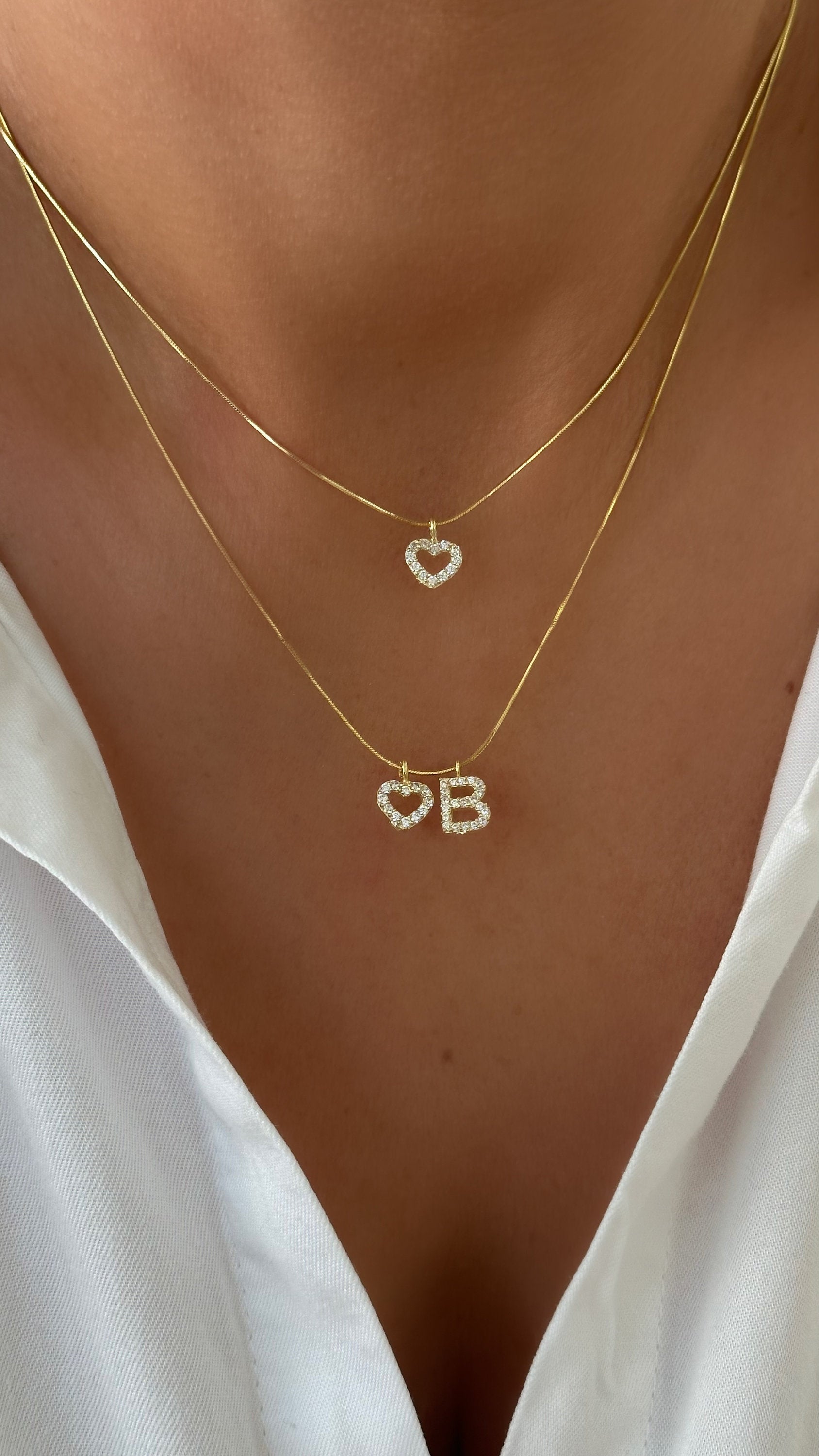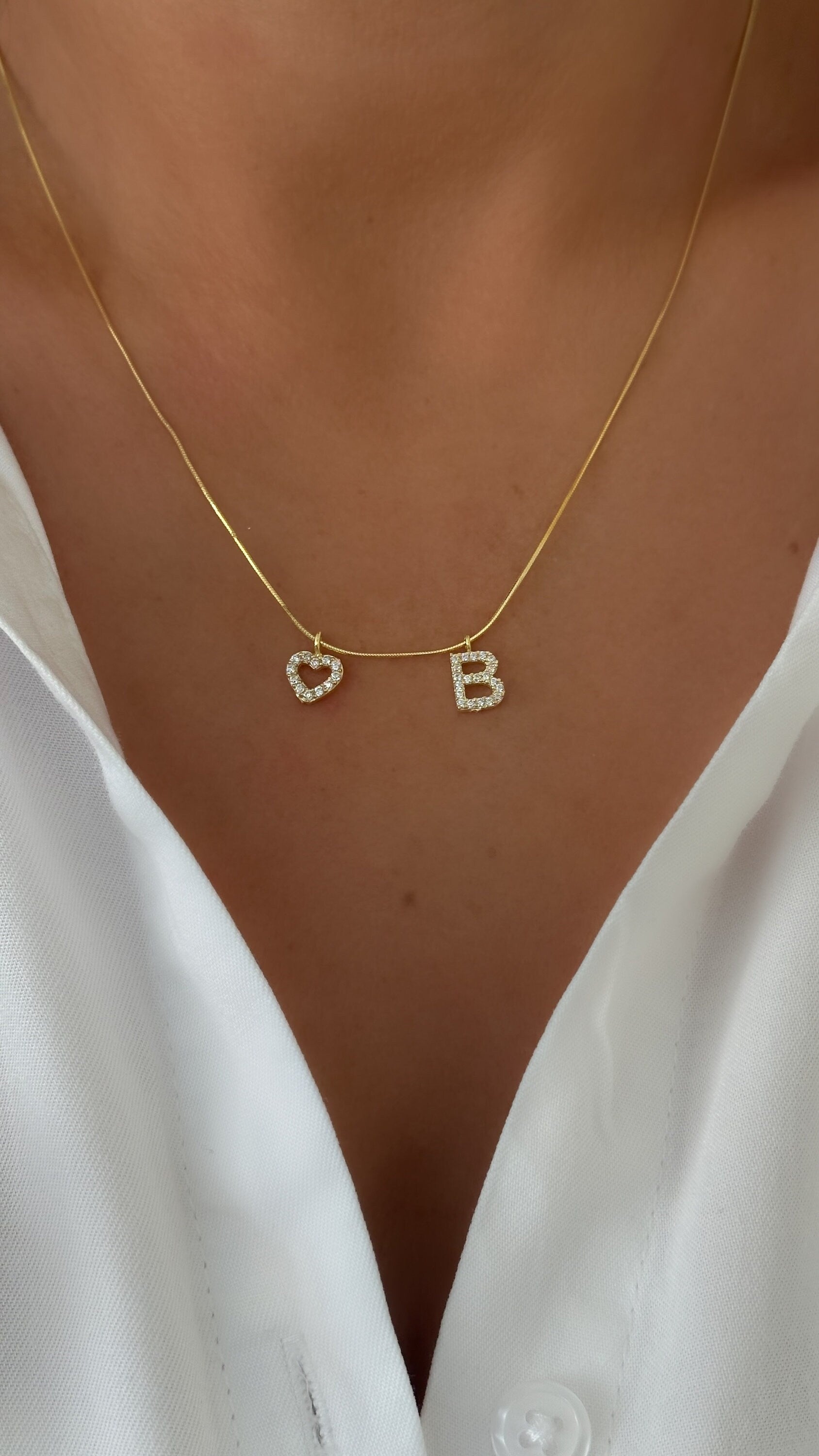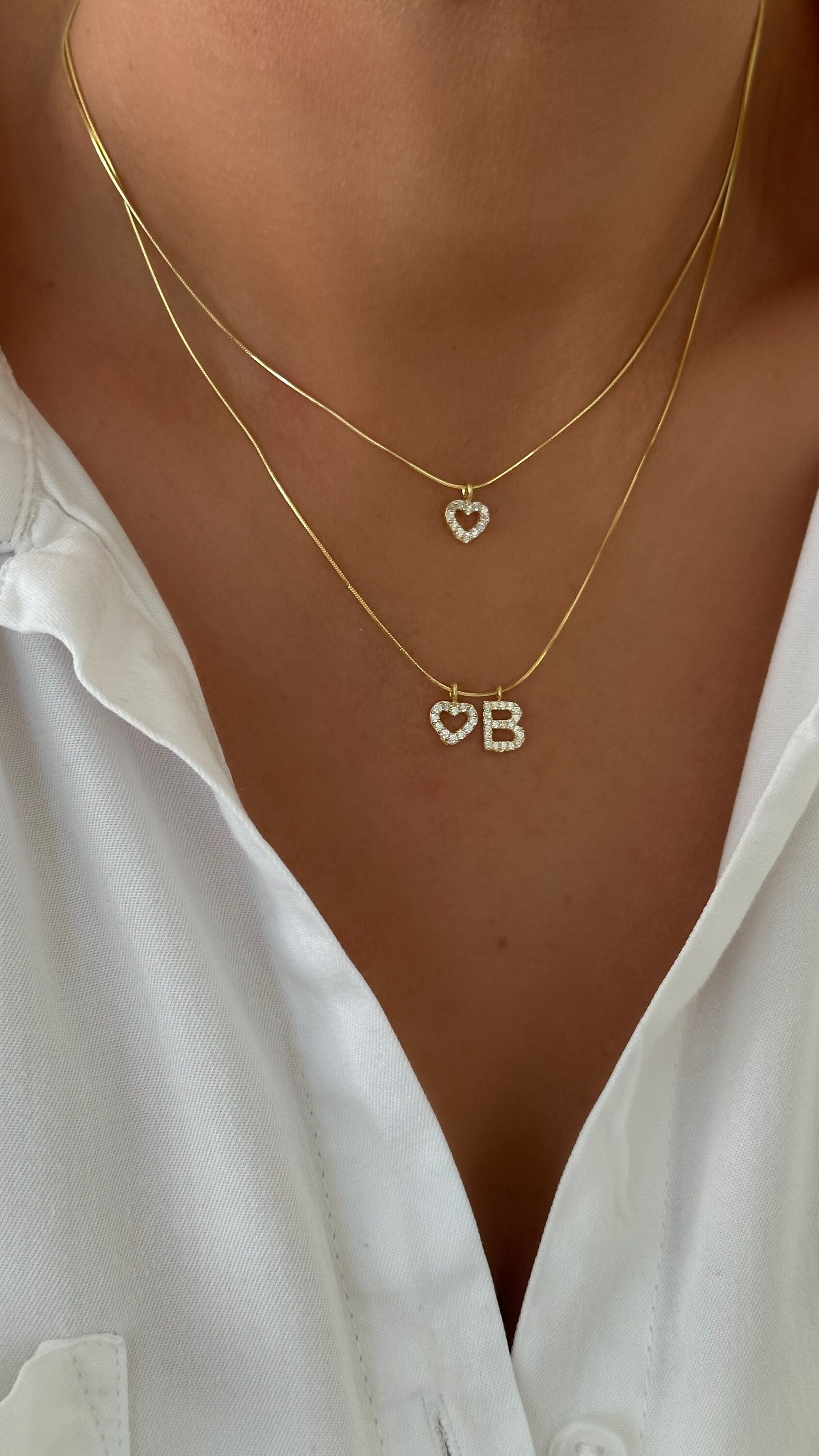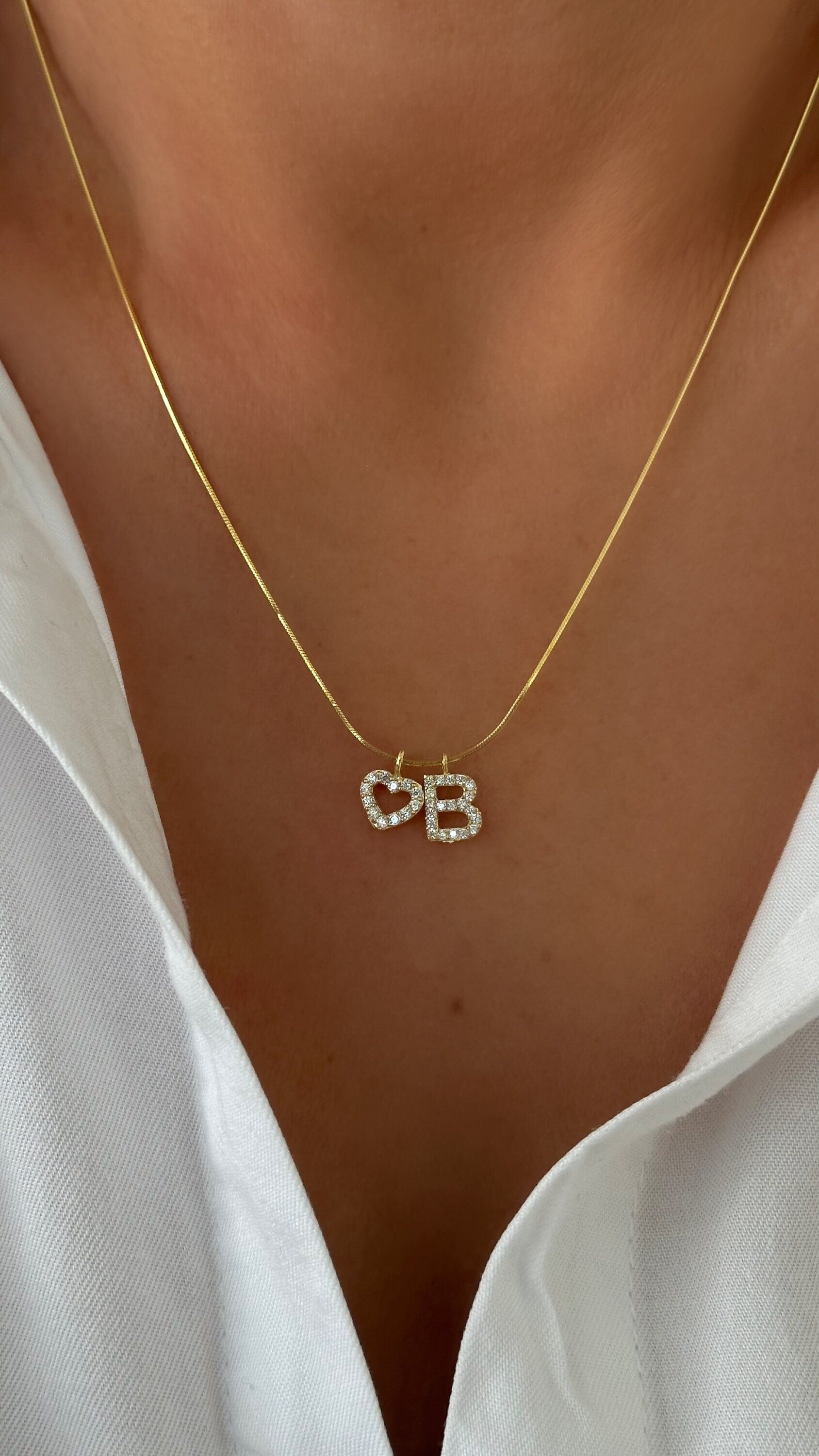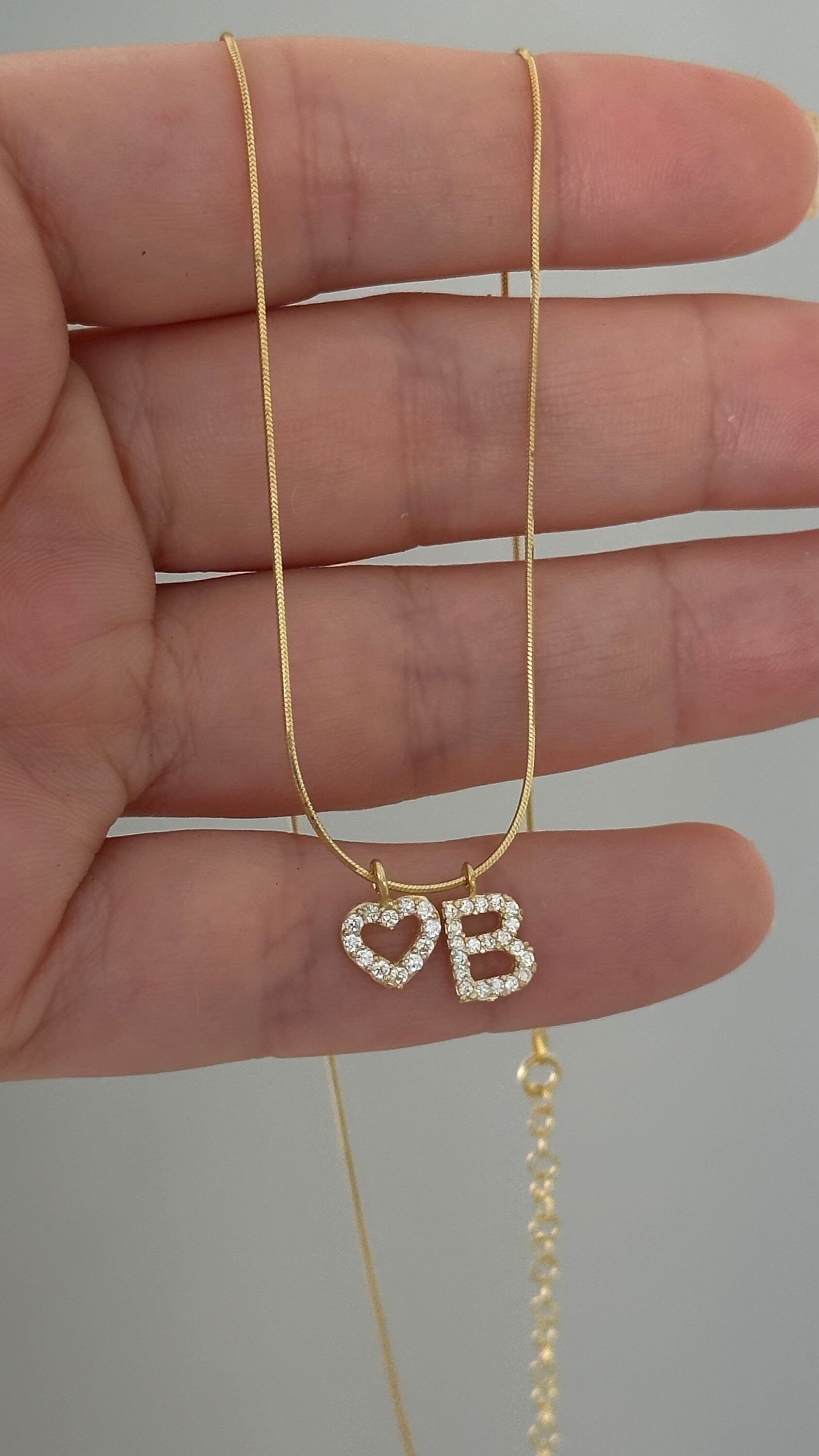 CZ Initial Heart Necklace, Tiny Pave Letter Necklace, Diamond Heart Pendant, Personalized Jewelry, Custom Gift for Her, 925 Sterling Silver Minimal Necklace, Minimalist Jewelry