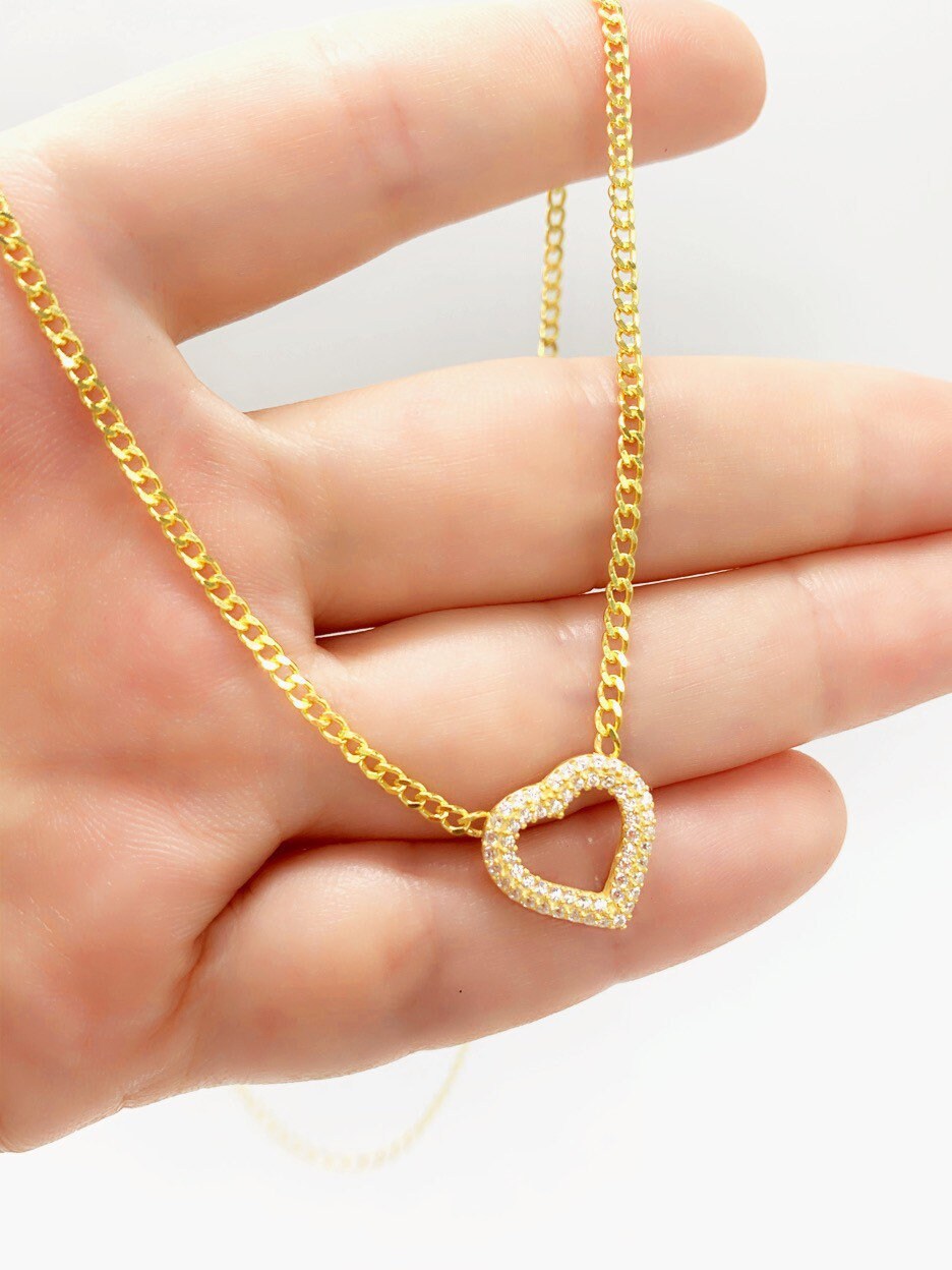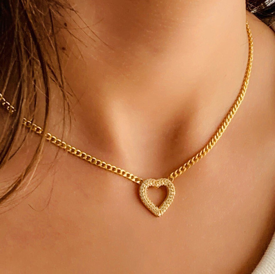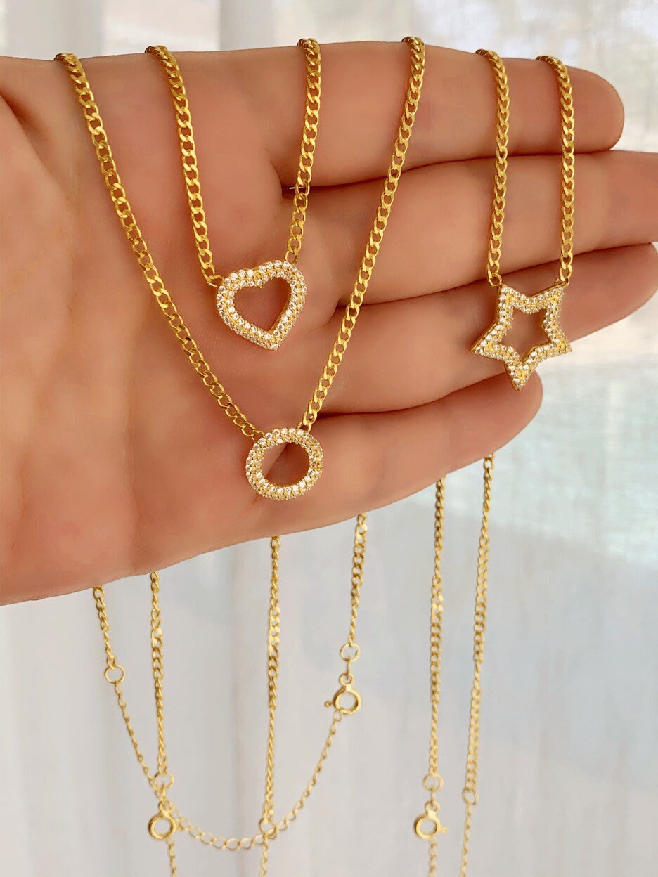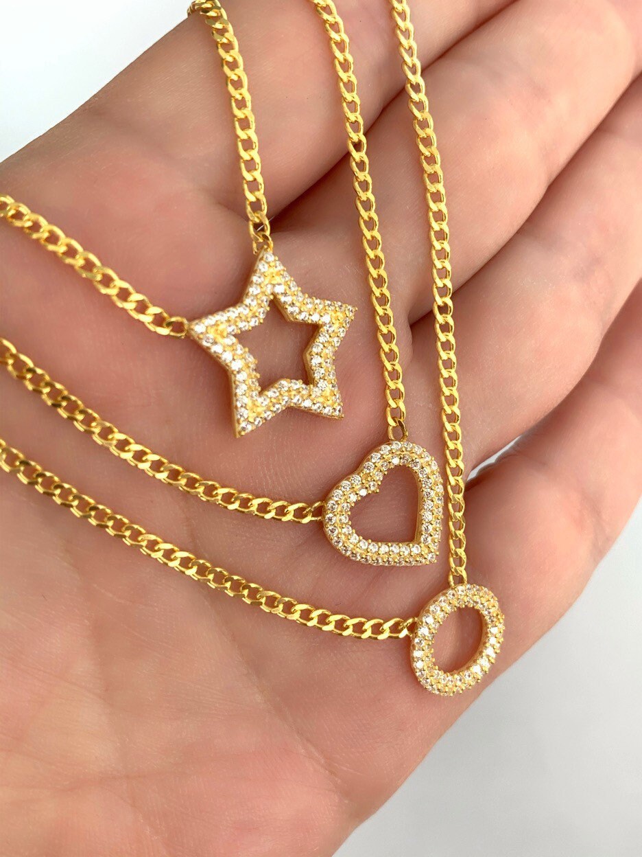 Gold Necklace, CZ Stone Necklace, Gemstone Choker, Pav Heart Charm, Star Pendant, Minimalist Layering Necklace, Birthday Gift for her, 925 Sterling Silver
