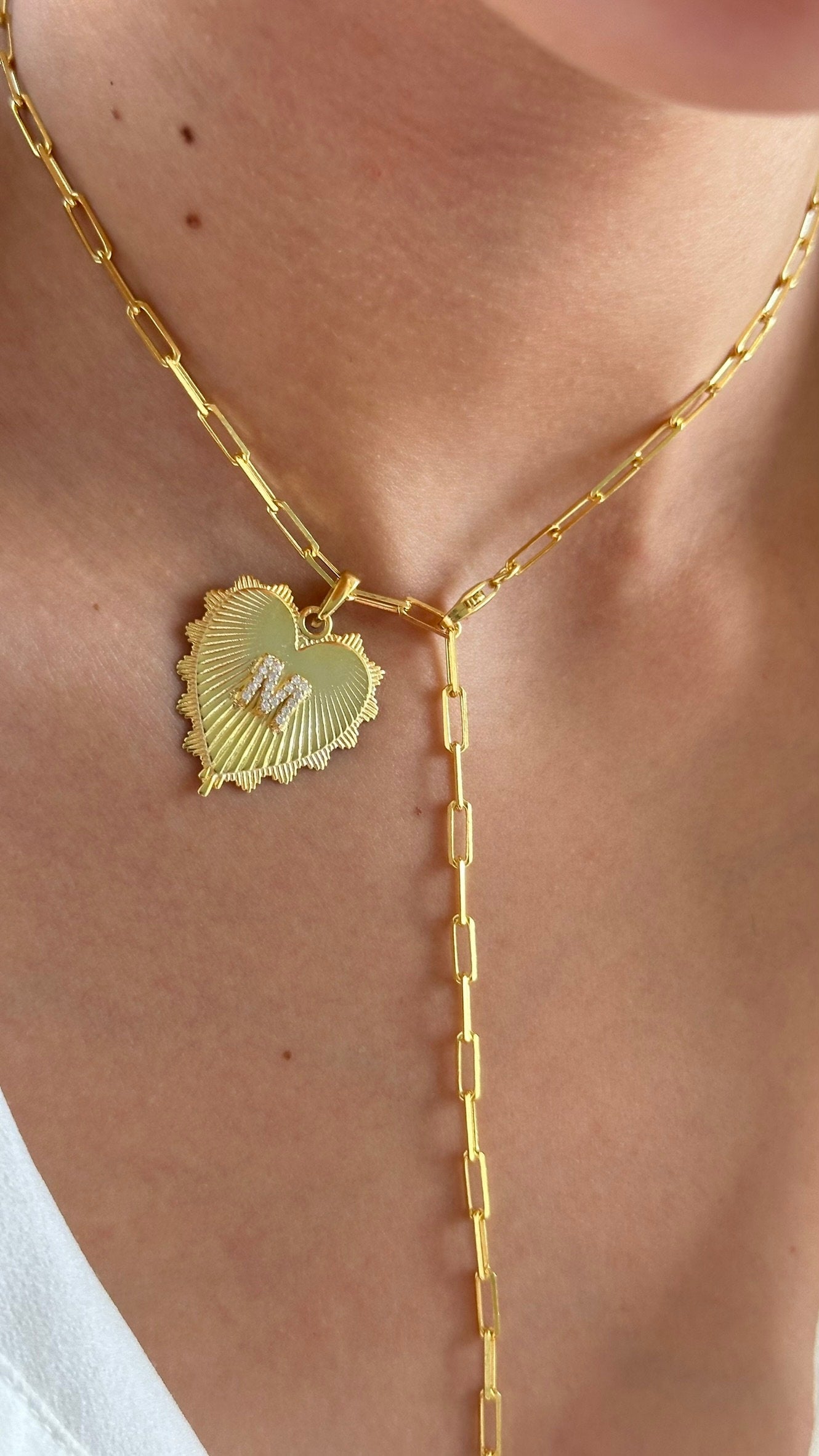 Dainty Name Necklace, Lariat Long Y Shaped Necklace, Drop Initial Gold Heart Pendant, Custom Letter Necklace, Personalize Jewelry Gift