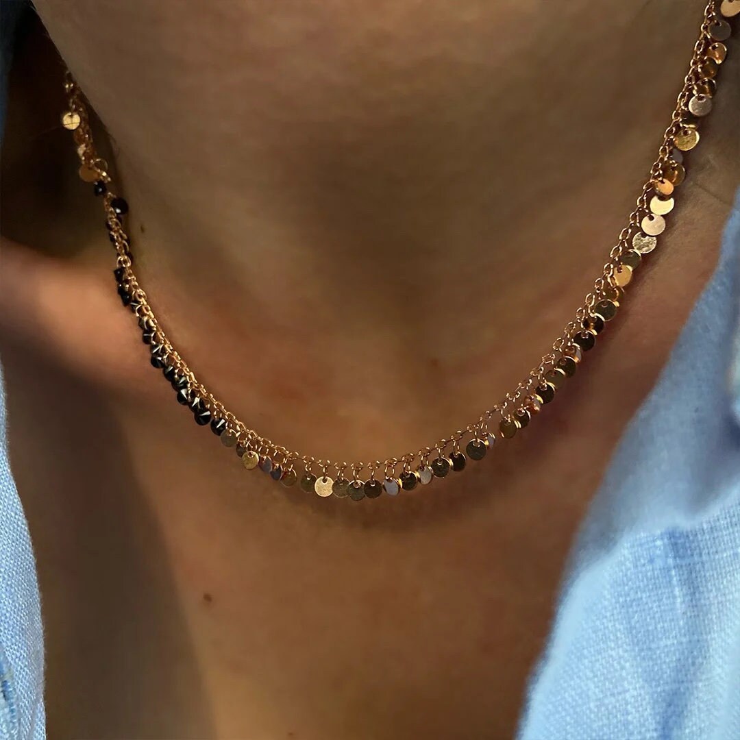 Dangle Disc Necklace, Tiny Discs Chain Necklace, Layering Chain Necklace, Dainty Gold Necklace, Circle Necklace, Gift for Her , 925 Silver