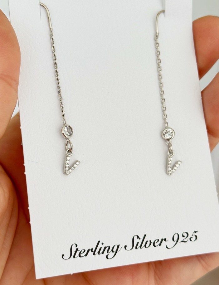 Letter Earring, Initial Earring, Long Chain Earring, Dainty Letter Minimalist Earrings, Trendy Earring, Zirconia Earrings, Gift for Girlfriend, Birthday Gift, Trendy 925 Sterling Silver Jewelry, Personalized Jewelry, Enamel Jewelry, Zirconia Gemstone Jewelry, Gold Plated Jewelry, Elizz Jewels