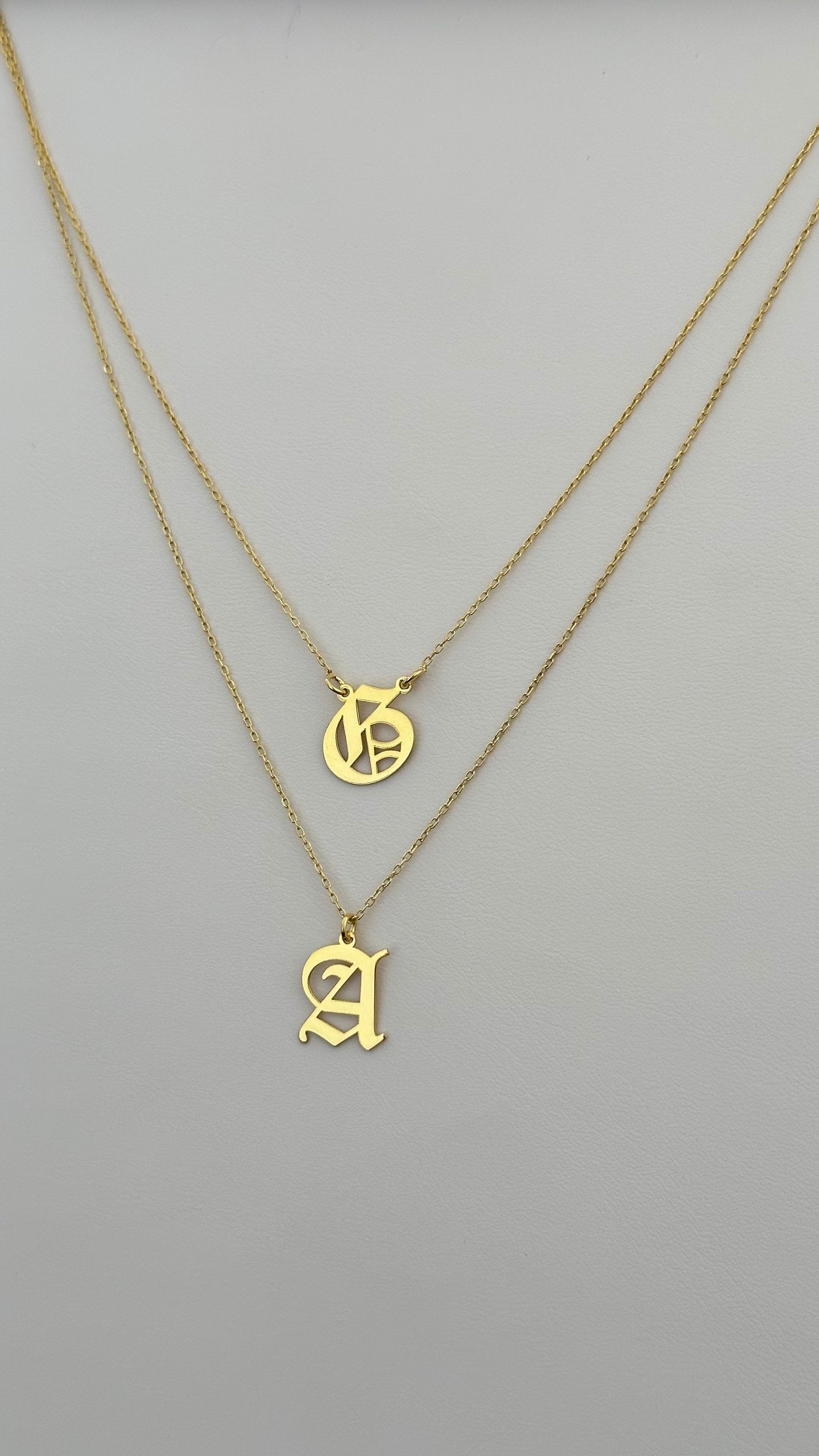 Double Layer Initial Necklace, Personalized Layered Necklace, Two initial necklace, Two strands necklace, Personalized Gift, Double Chain
