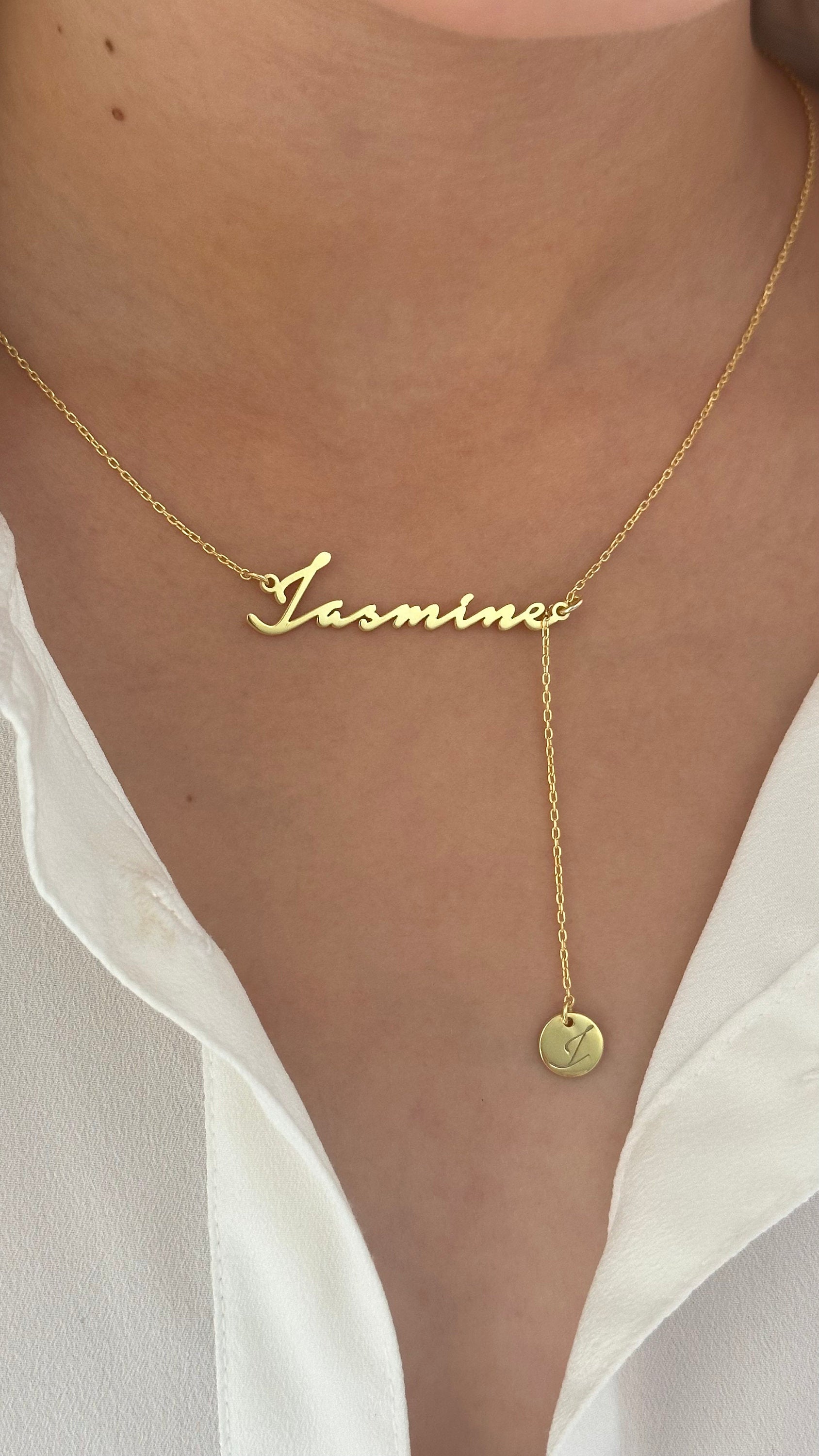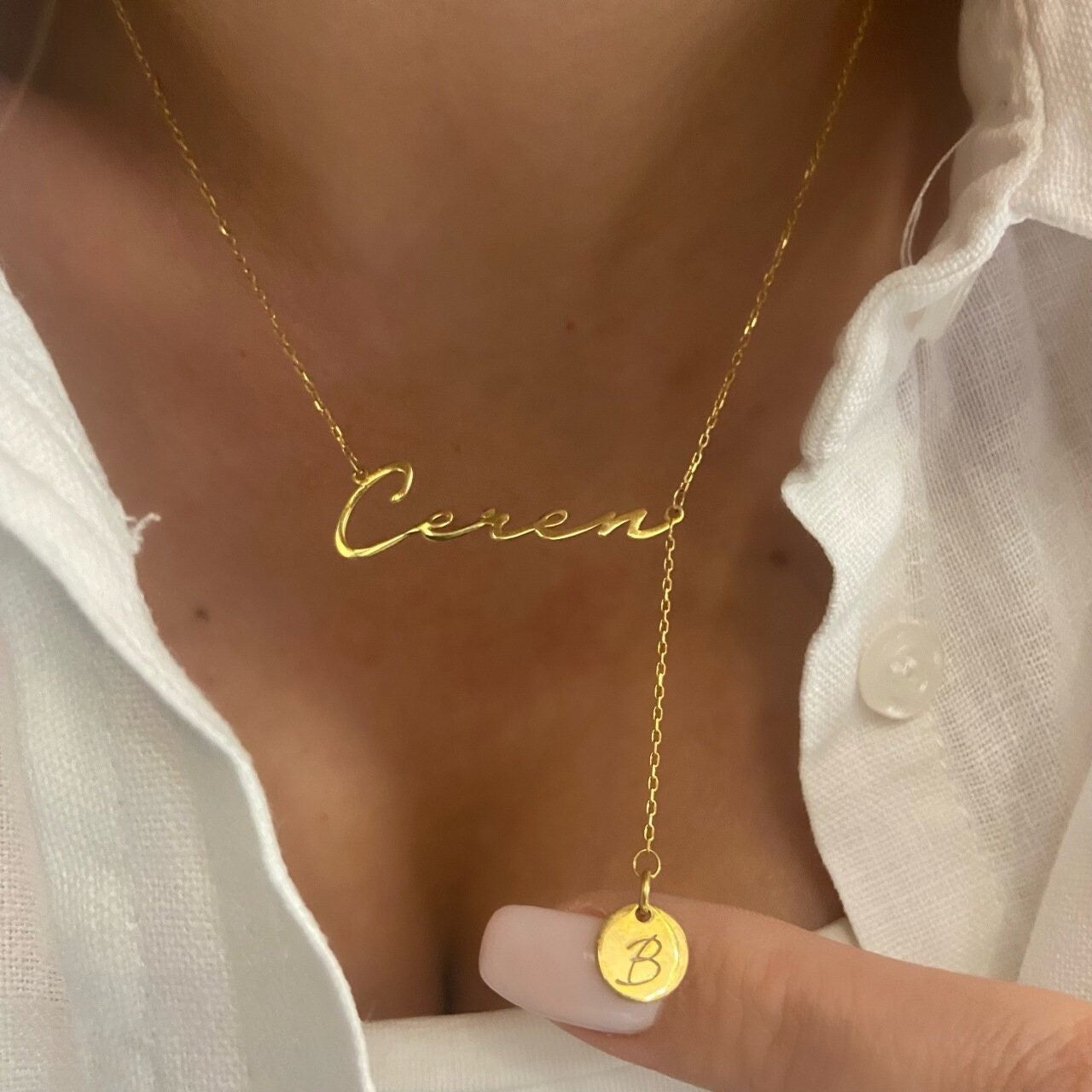 Double Name Necklace, Drop Initial Necklace, Two Name Necklace, Custom Mother's Day gift, Personalized Necklace, Personalized Gifts for Mom