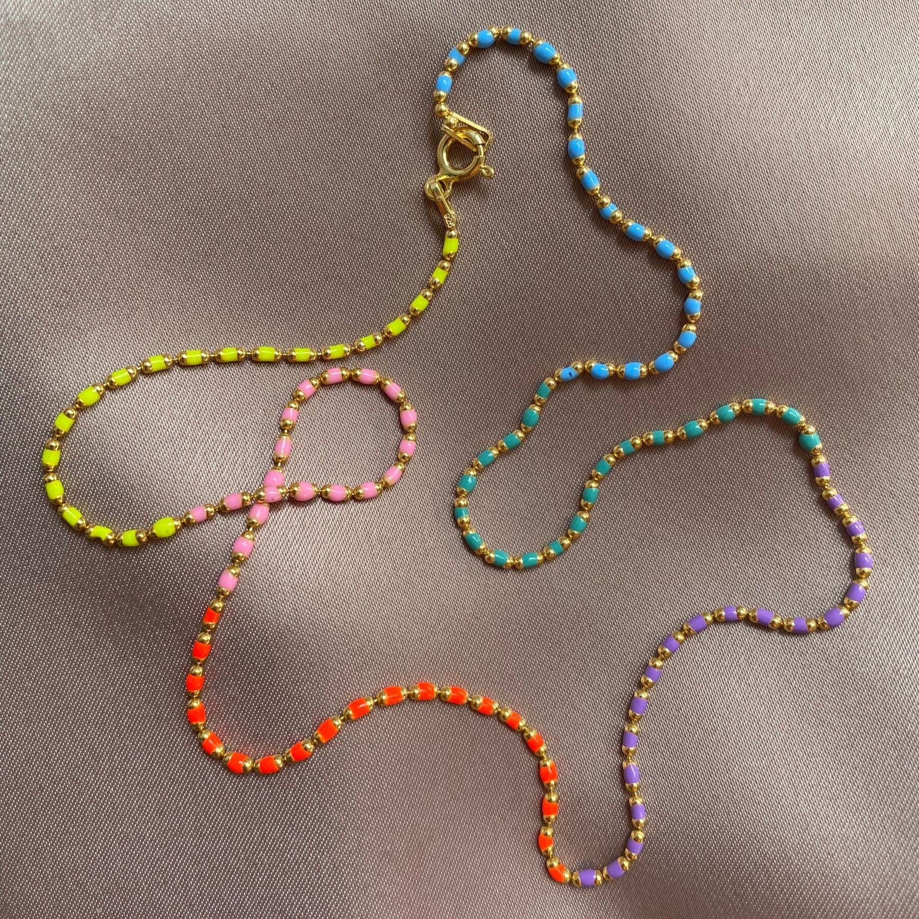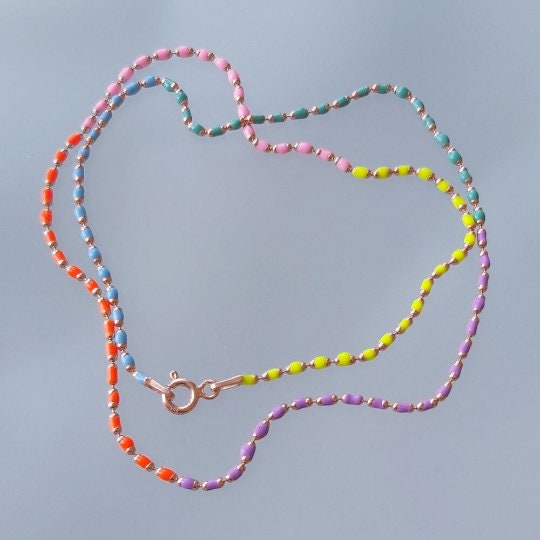 Enamel Necklace, Enamel Chain, Rainbow Necklace, Neon Chain Necklace, Colorful Necklace, Layering Chain, Gift for her, Enamel Jewelry, Minimalist Jewelry, MultiColor Chain Necklace, Minimal Layering Necklace, Chain Necklace, Enamel Jewelry