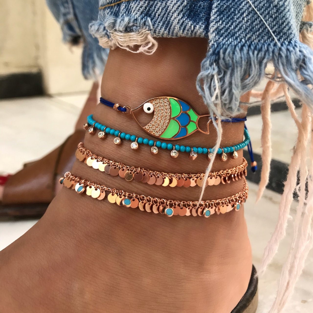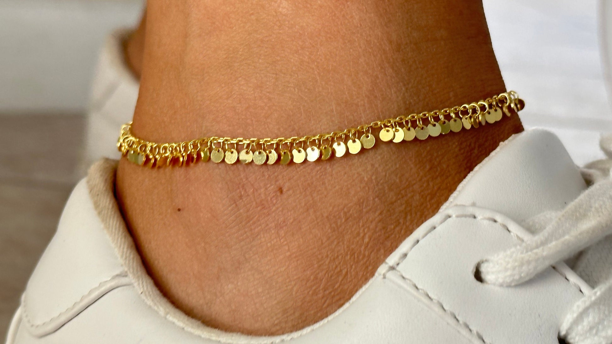 Gold Ankle Bracelet, Trendy Dangle Anklet, Mother's Day Gift, Girlfriend Gift, Summer Anklet, Beach Jewelry, Sterling Silver Chain anklet