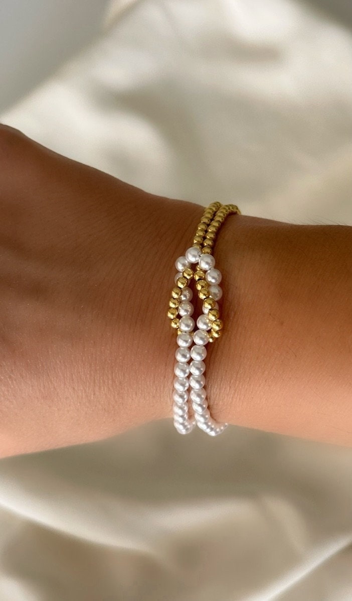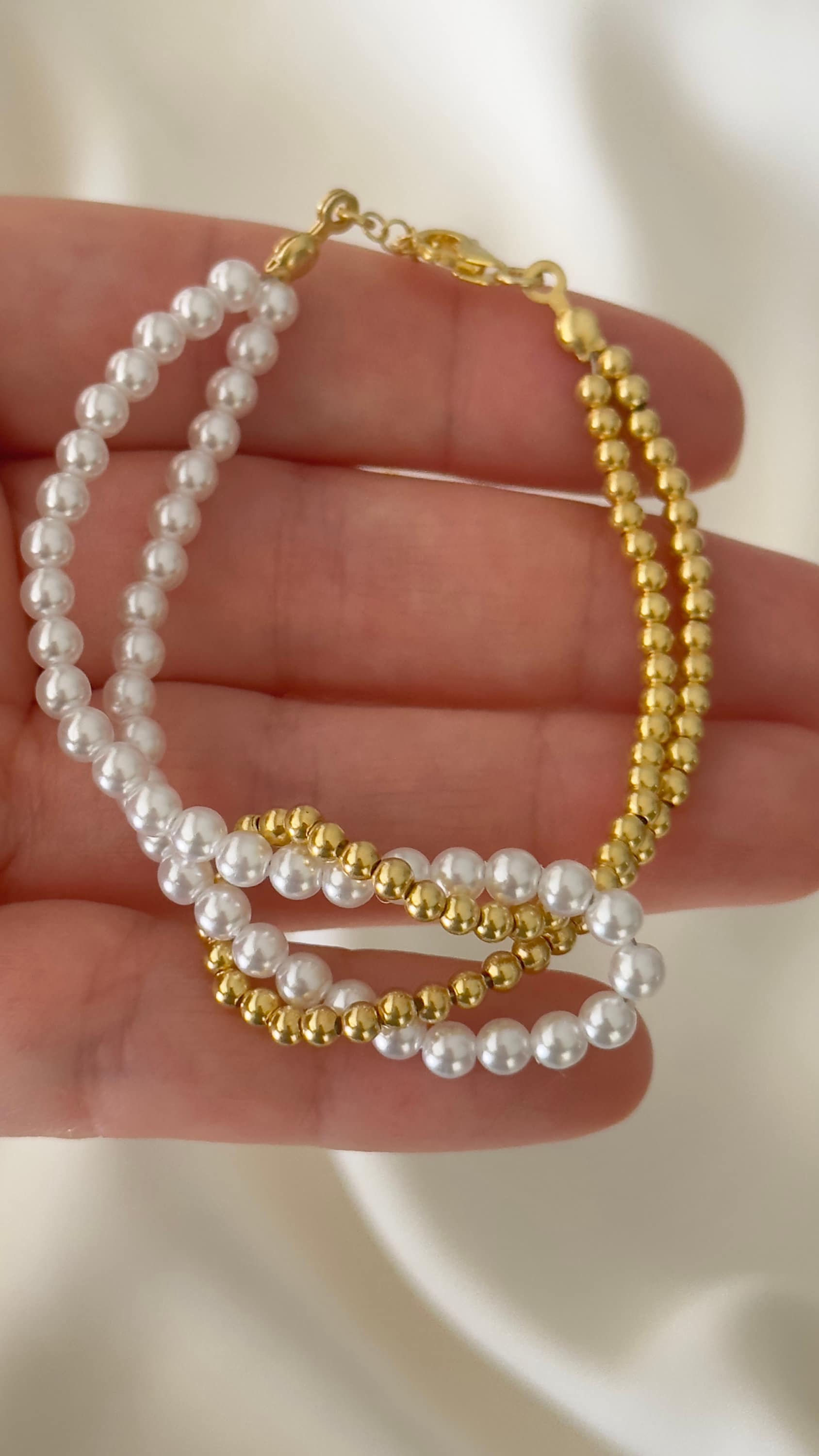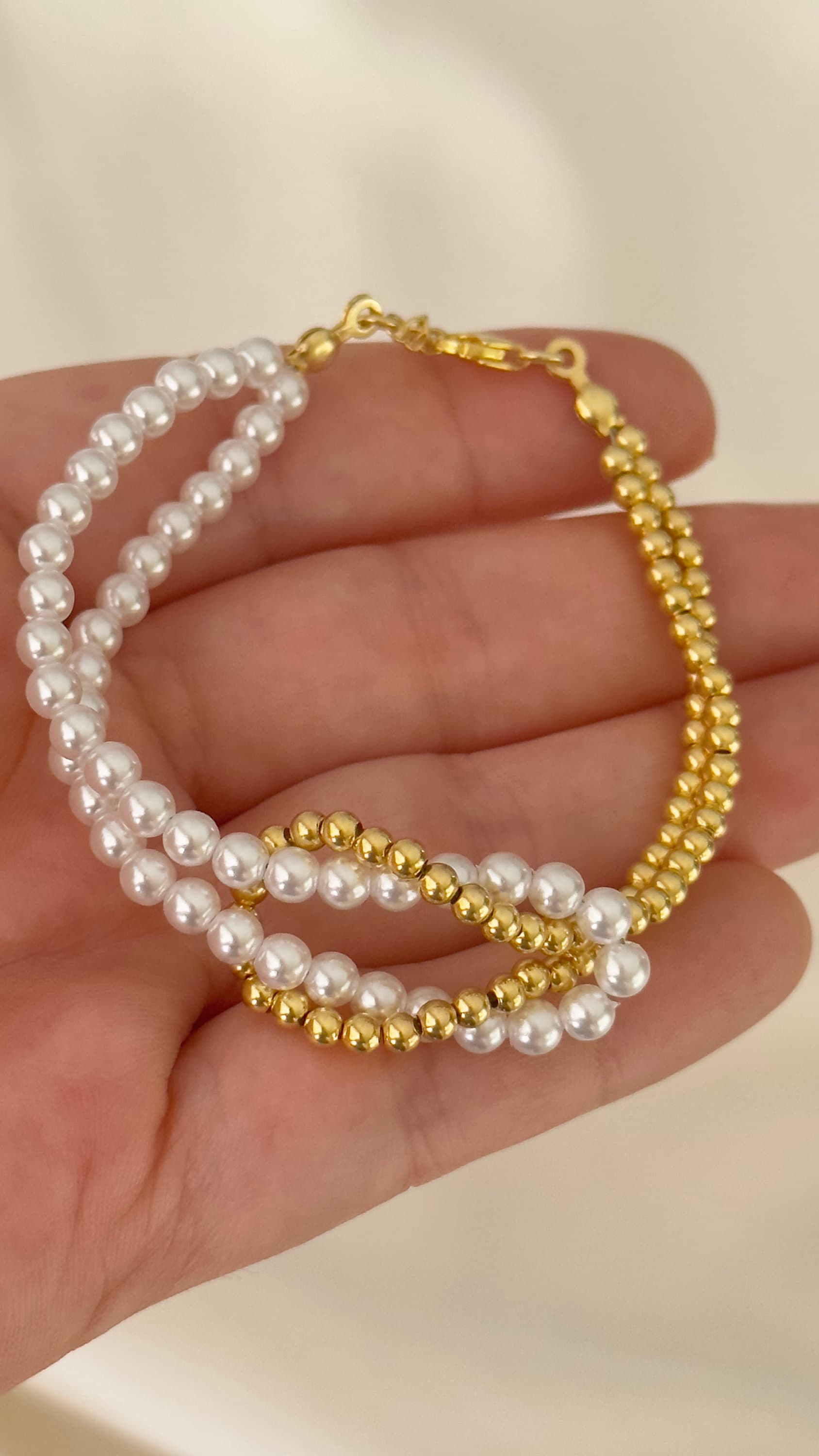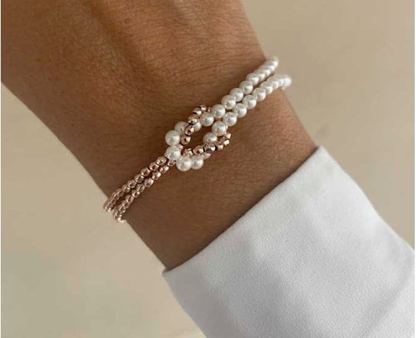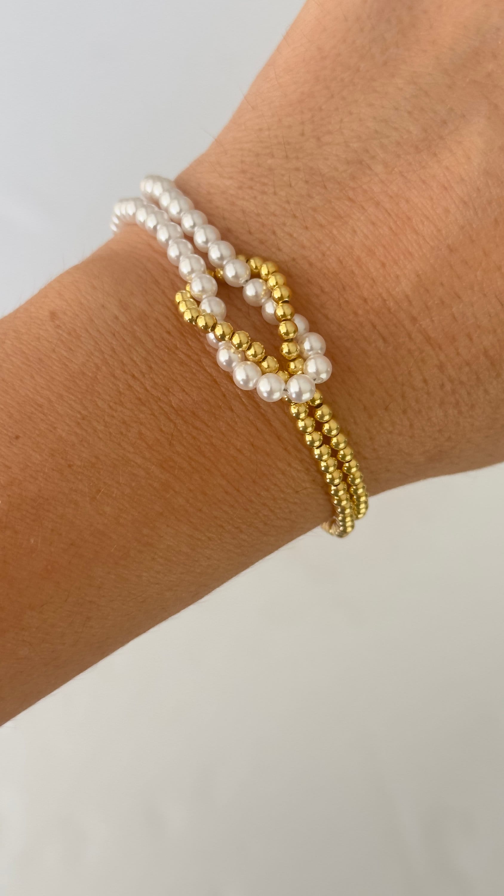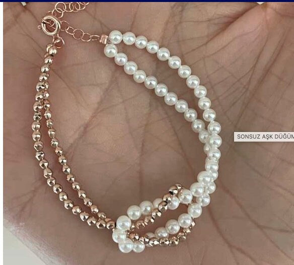Half Pearl Half Chain Bracelet, Pearl Knot Bracelet, Ball Chain Bracelet, Gift for her, Woman Half and Half Bracelet, Pearl Jewelry