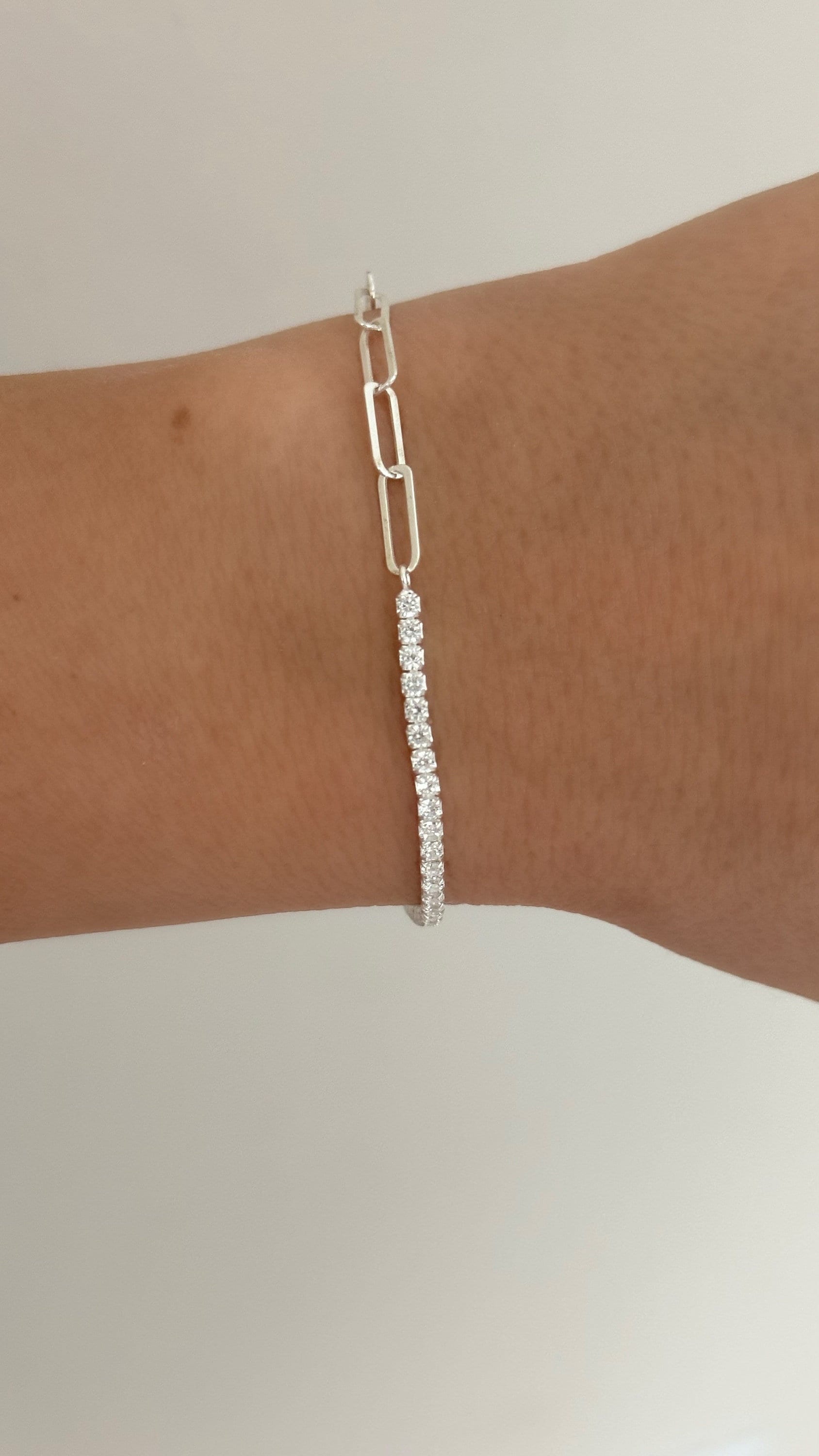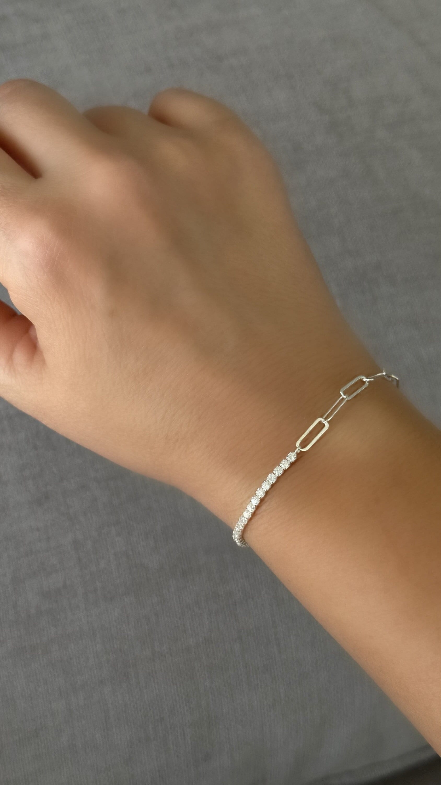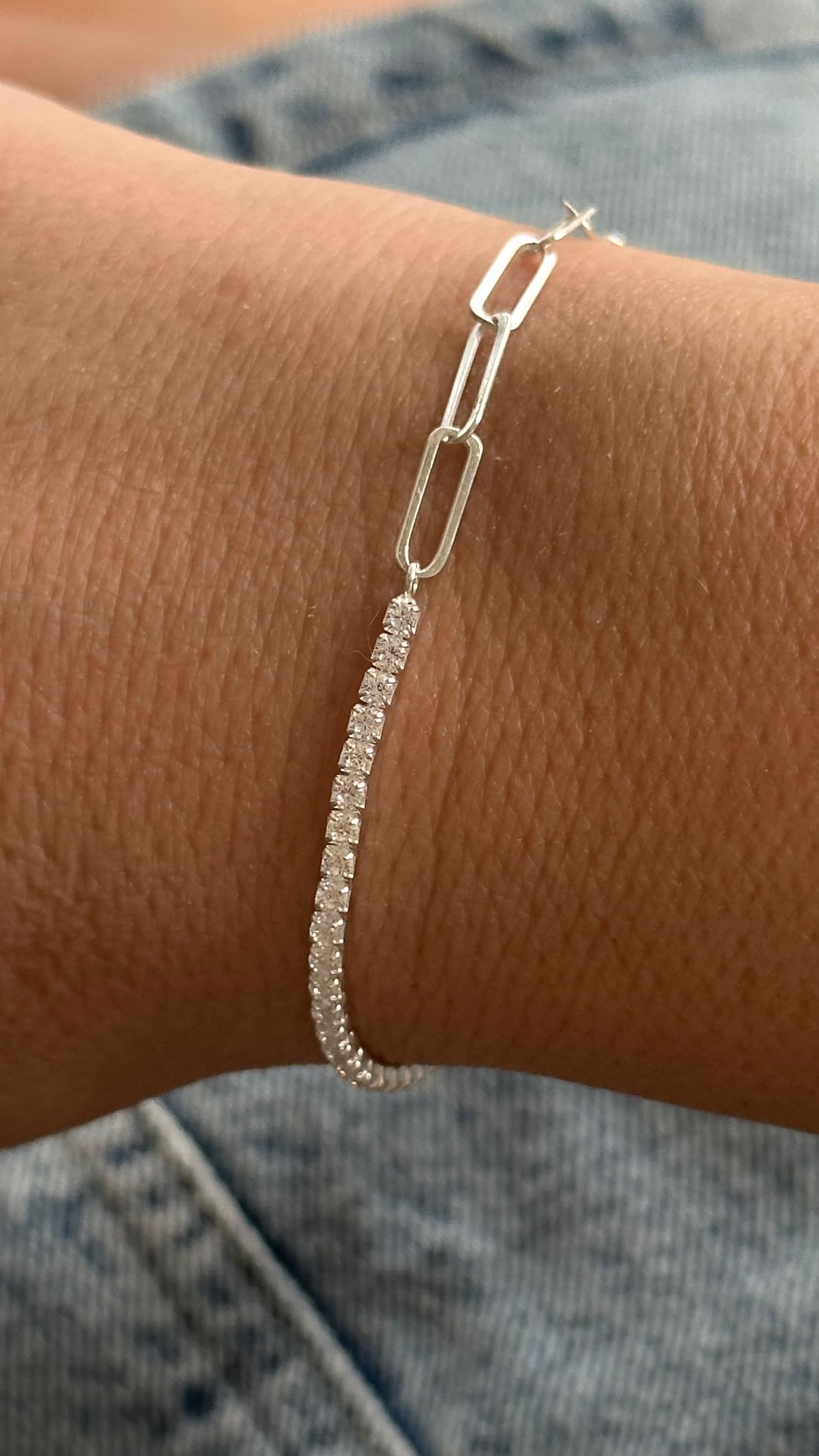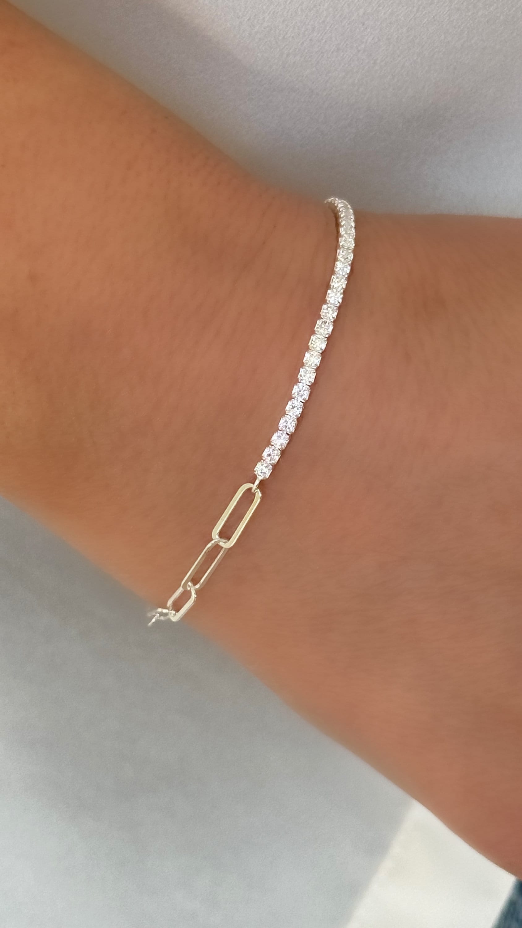 Half tennis half paperclip bracelet, CZ Tennis Bracelet, Diamond Bracelet, Link Chain Bracelet, Tennis Jewelry, 925 Silver, Gift for her