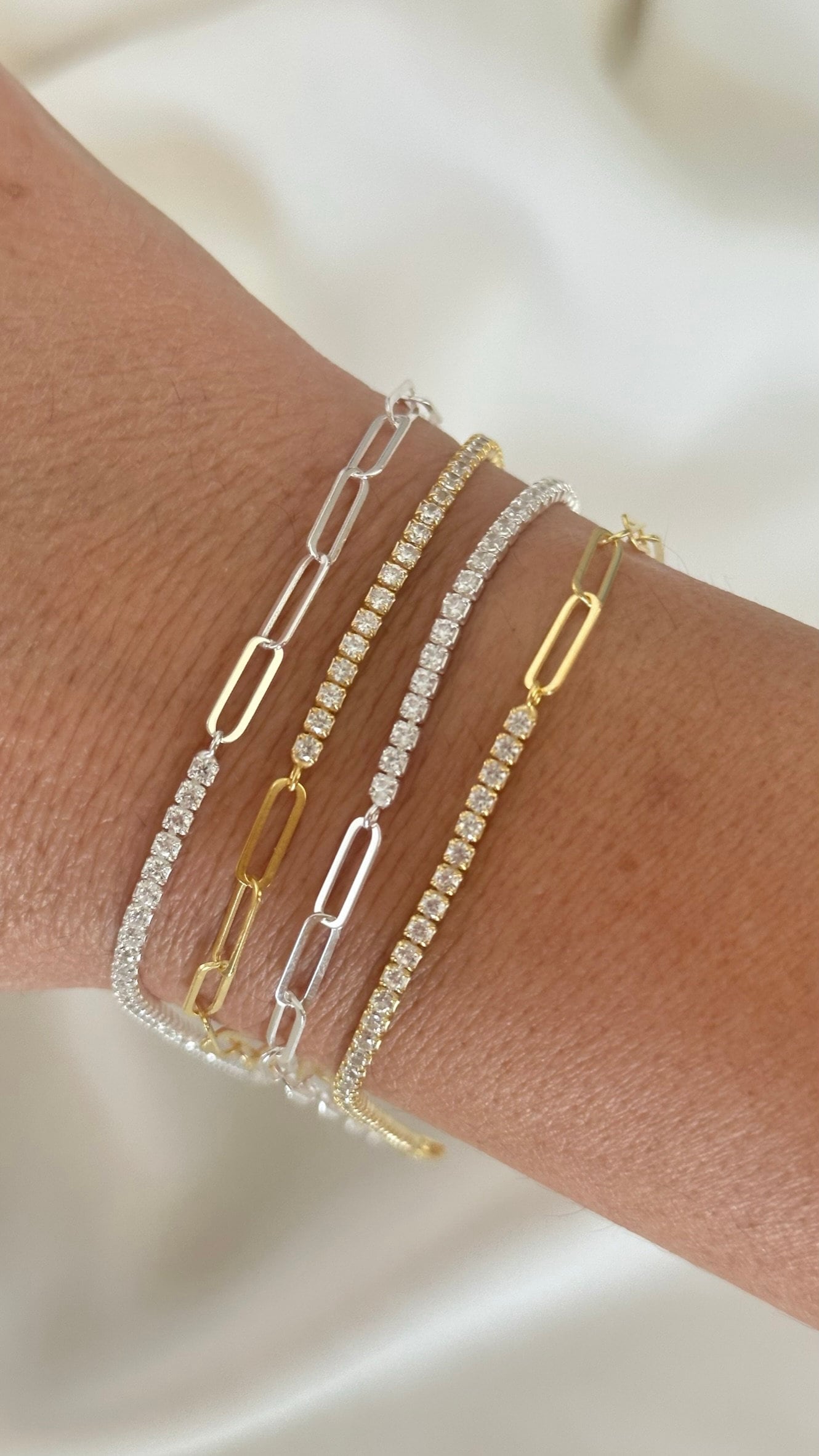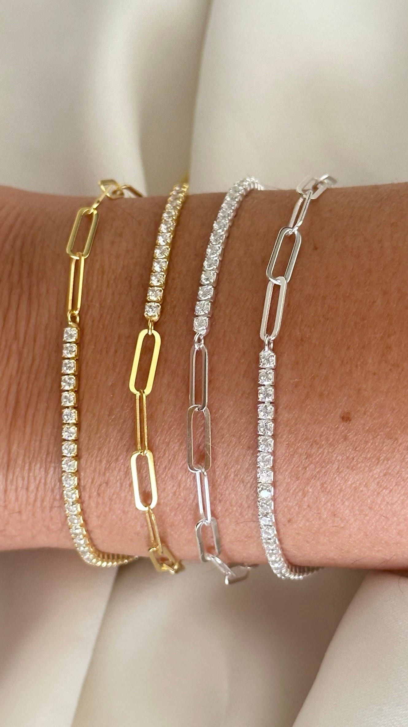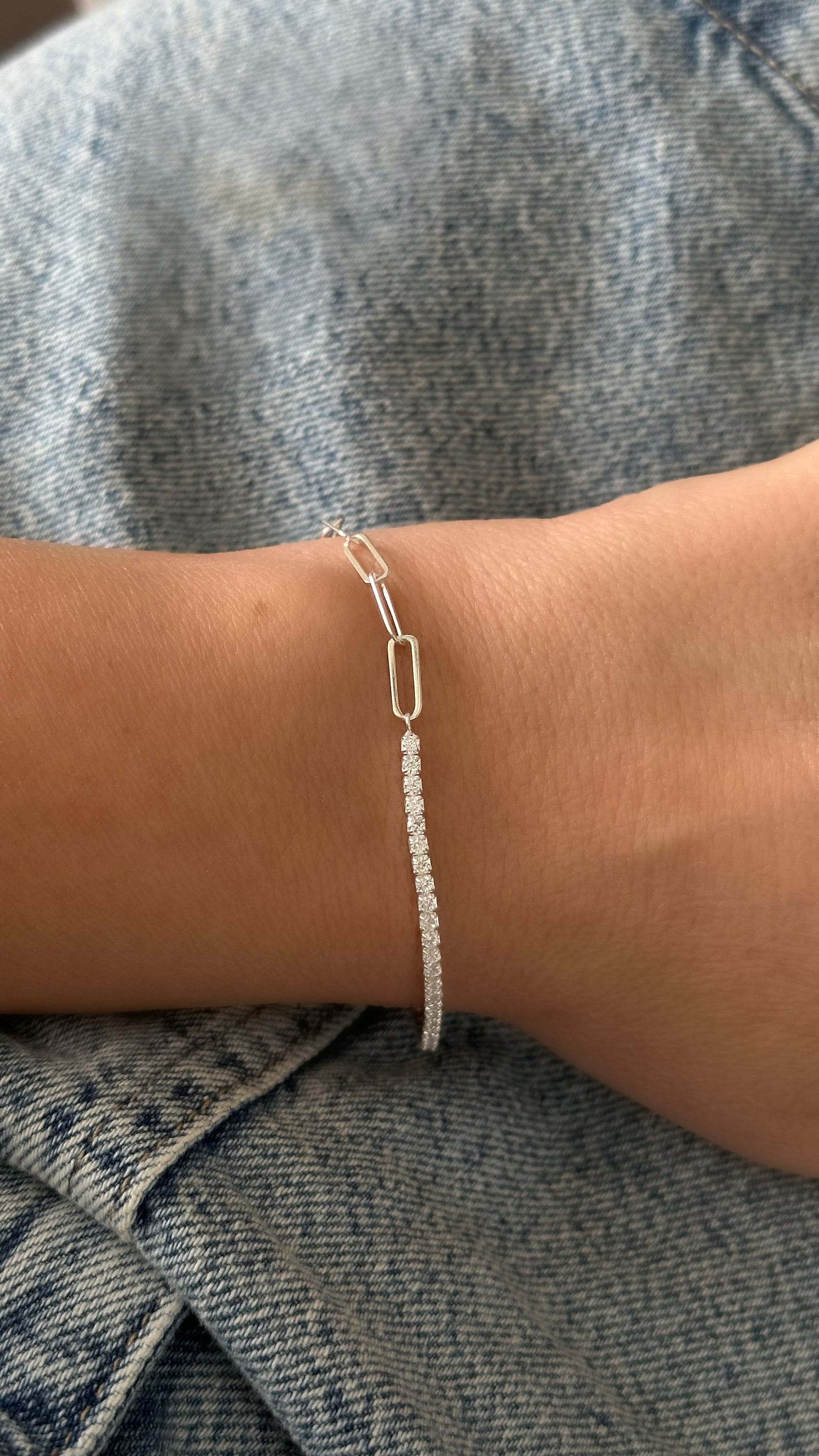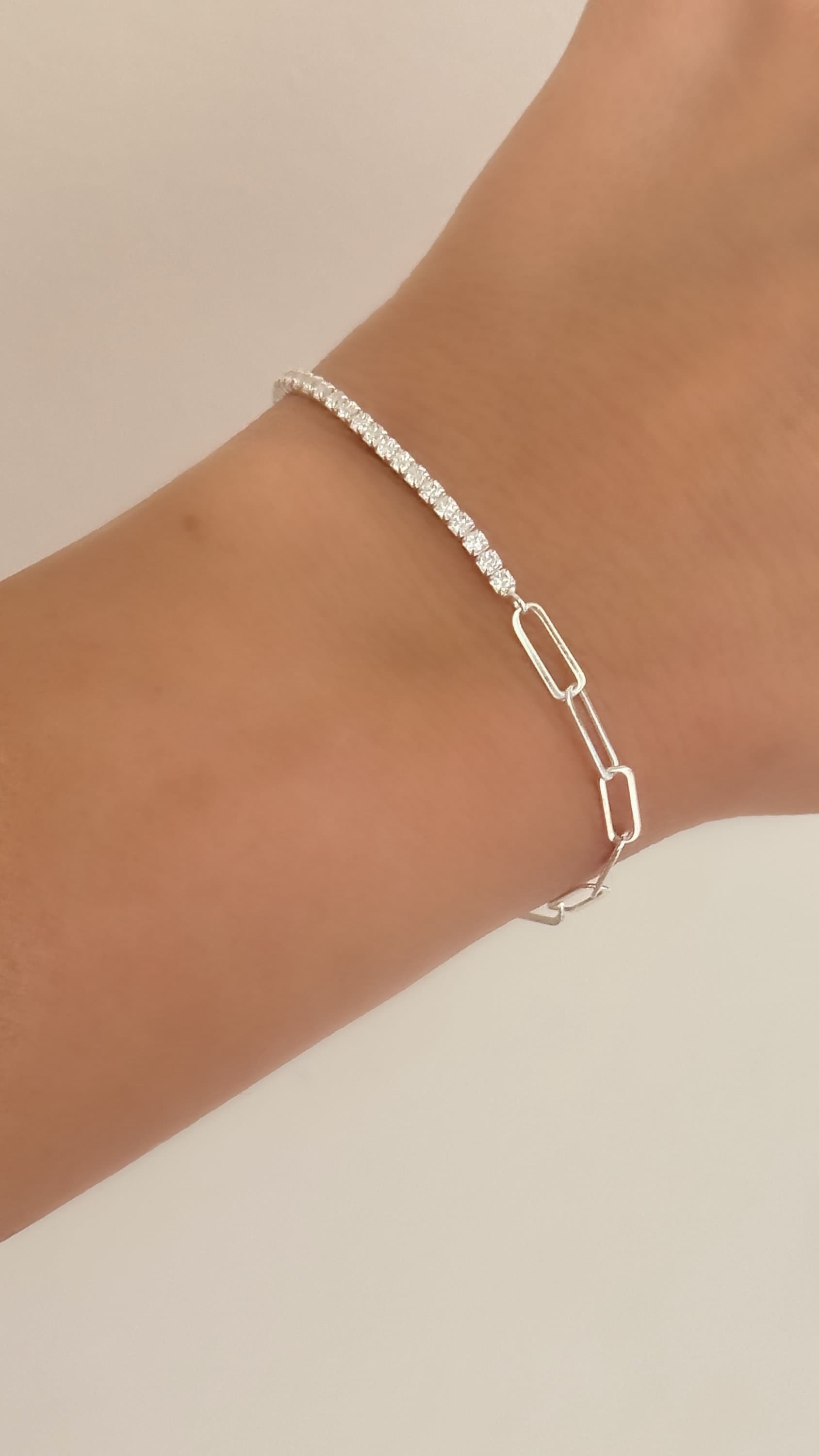 Half tennis half paperclip bracelet, CZ Tennis Bracelet, Diamond Bracelet, Link Chain Bracelet, Tennis Jewelry, 925 Silver, Gift for her