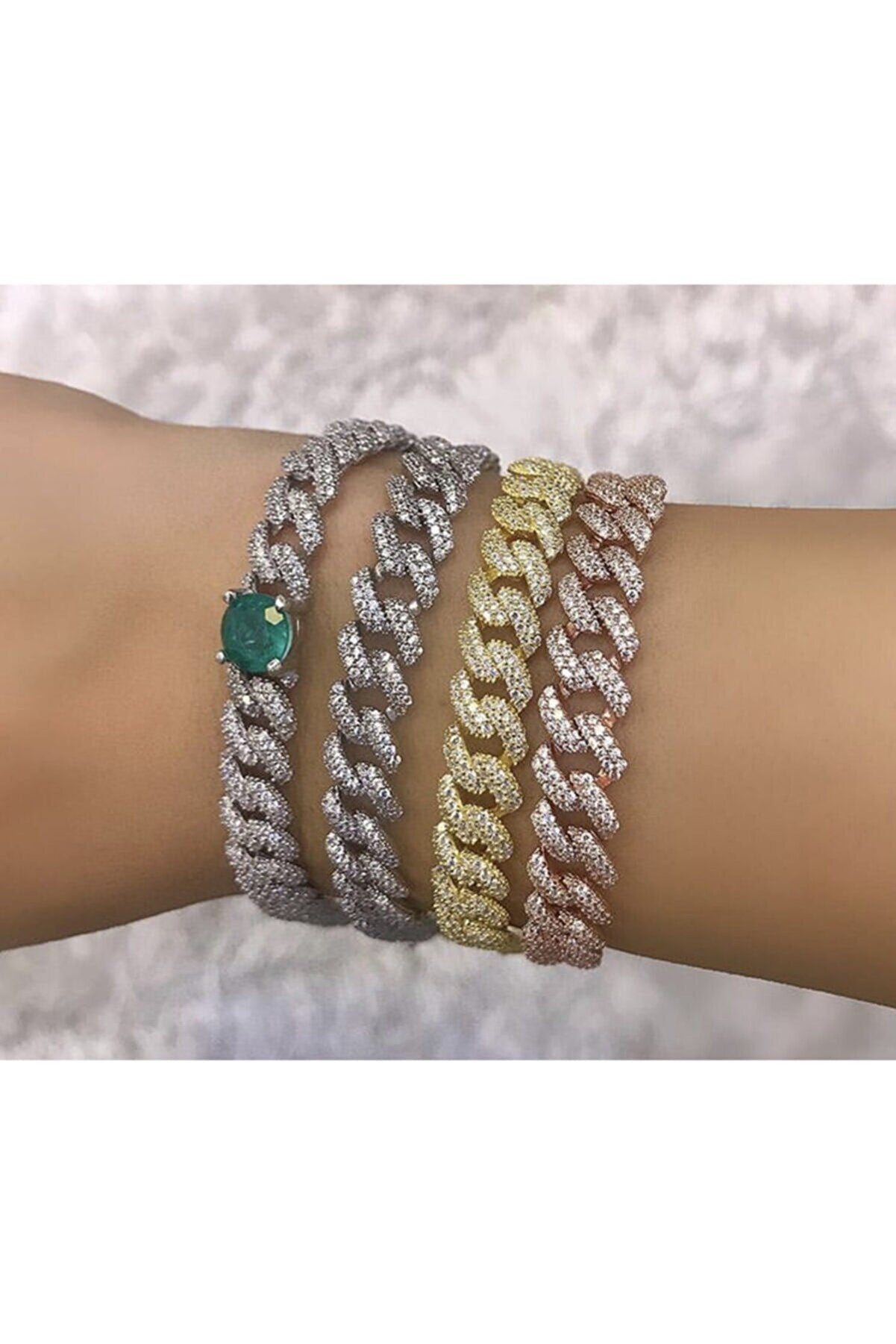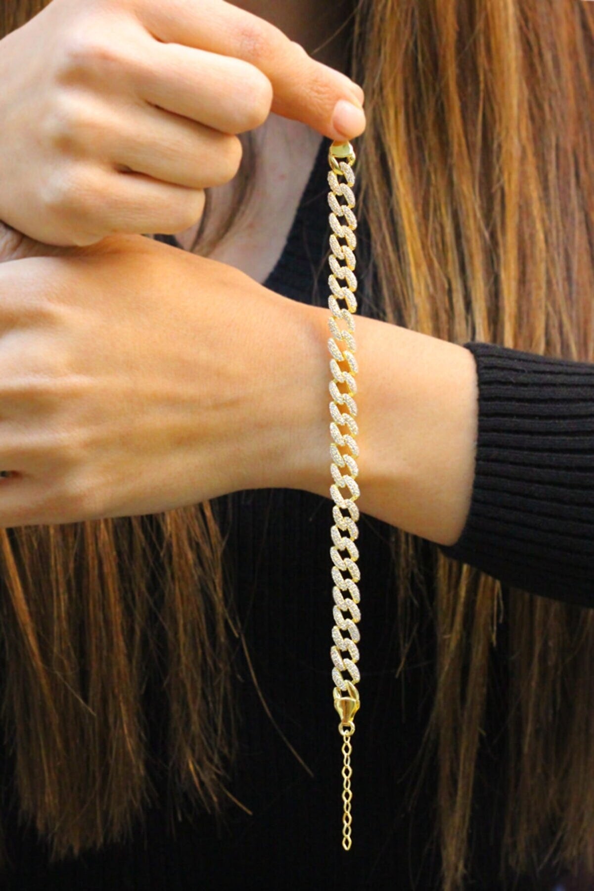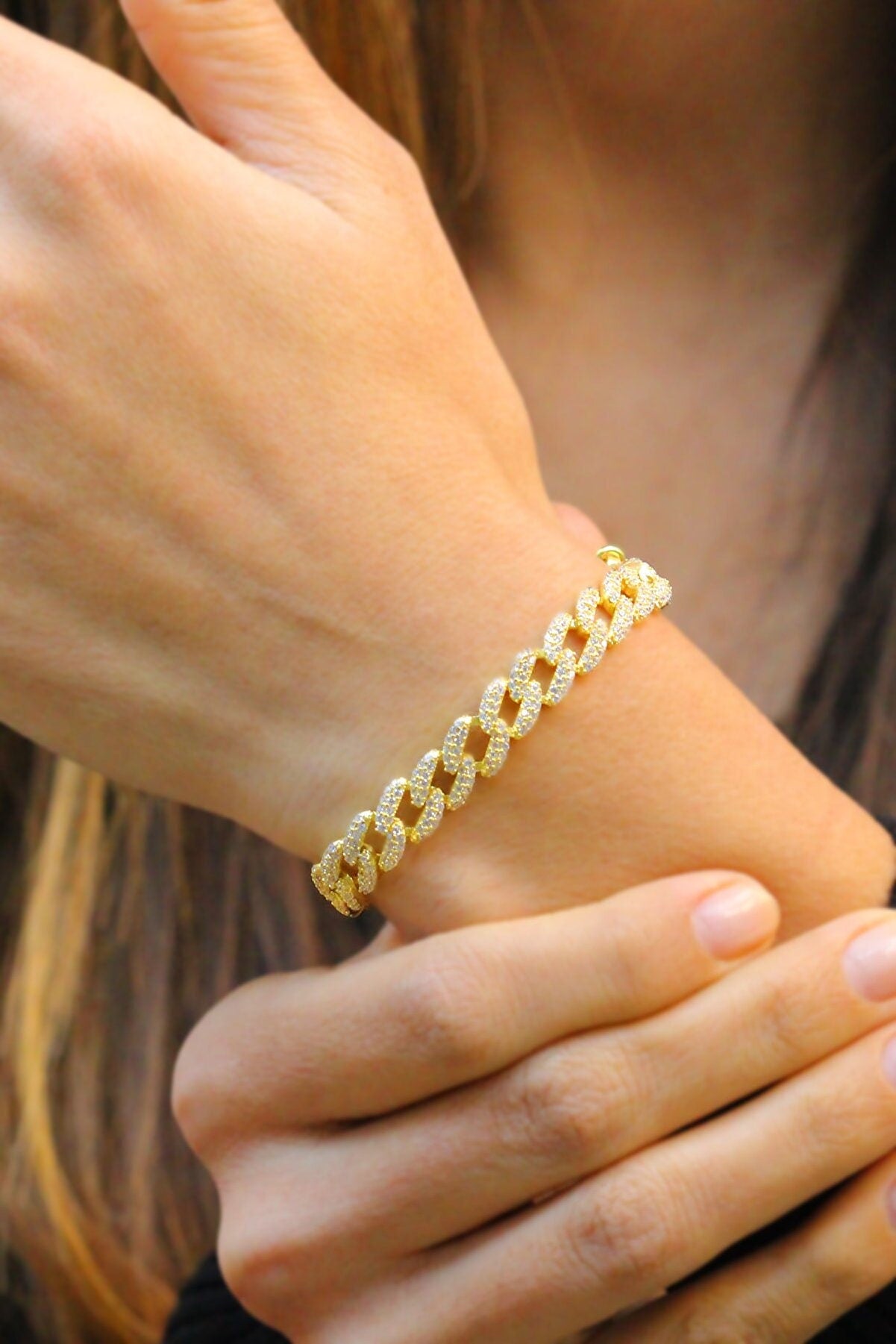 Iced Cuban Link Bracelet, Diamond Bracelet, Crystal Bracelet, Cubic Zirconia Bracelet, CZ Bracelet, Gold Curb Chain Bracelet, Thich Bracelet, Girlfriend Birthday Gift, Trendy Woman Bracelet, 925 Sterling Silver bracelet, birthday gift fo her