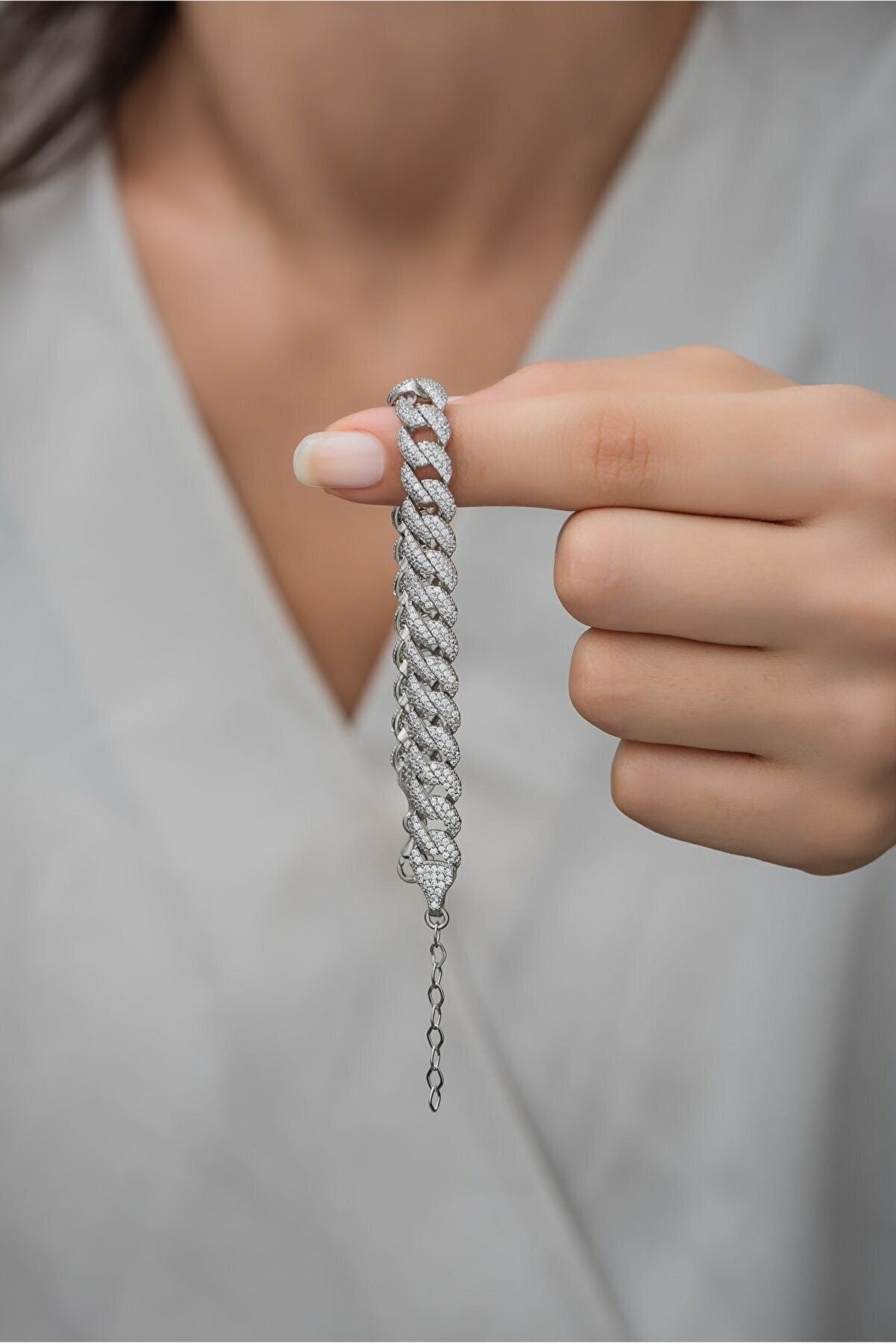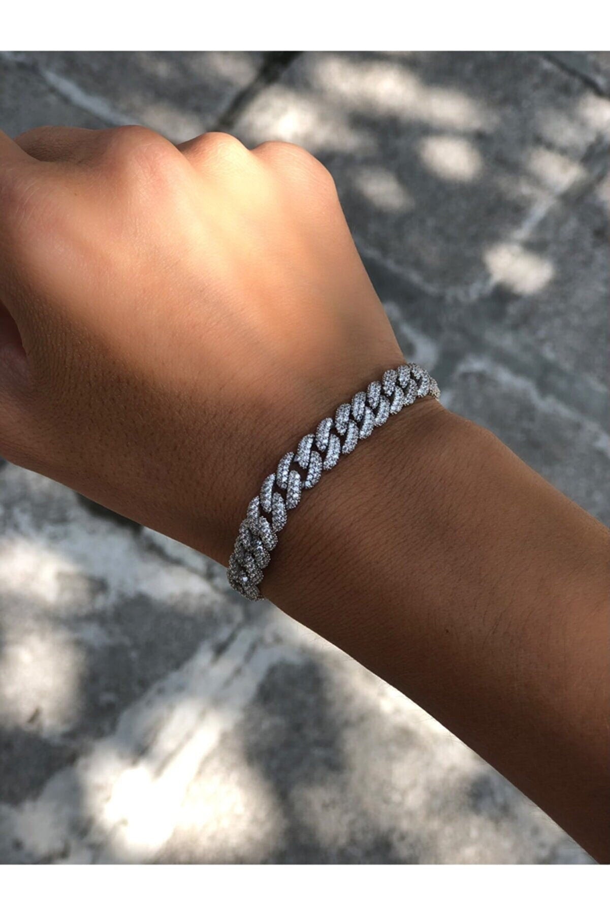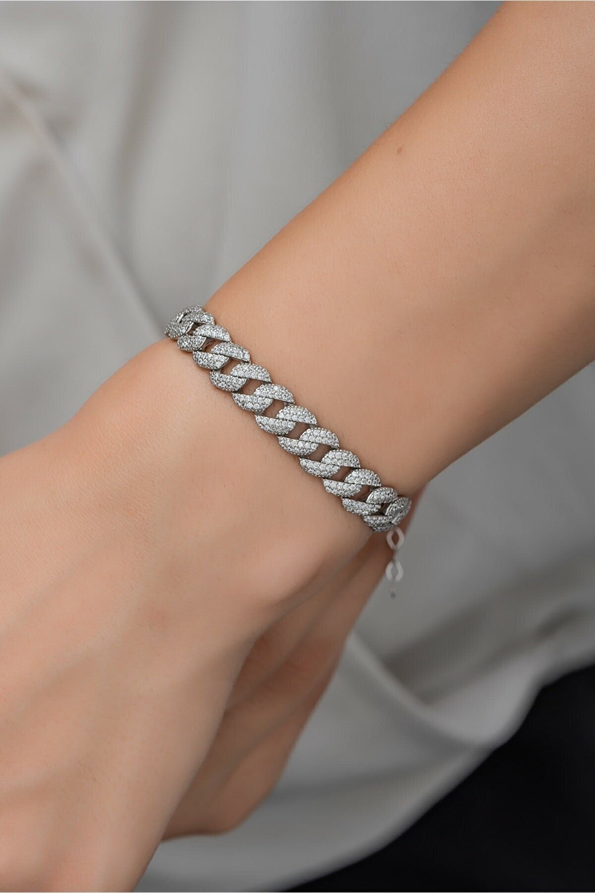 Iced Out Bracelet, Thick Cuban Link Chain Bracelet, Diamond Bracelet ,CZ Bracelet, Cubic Zirconia Bracelet, Stacking Bracelets, 925 Silver