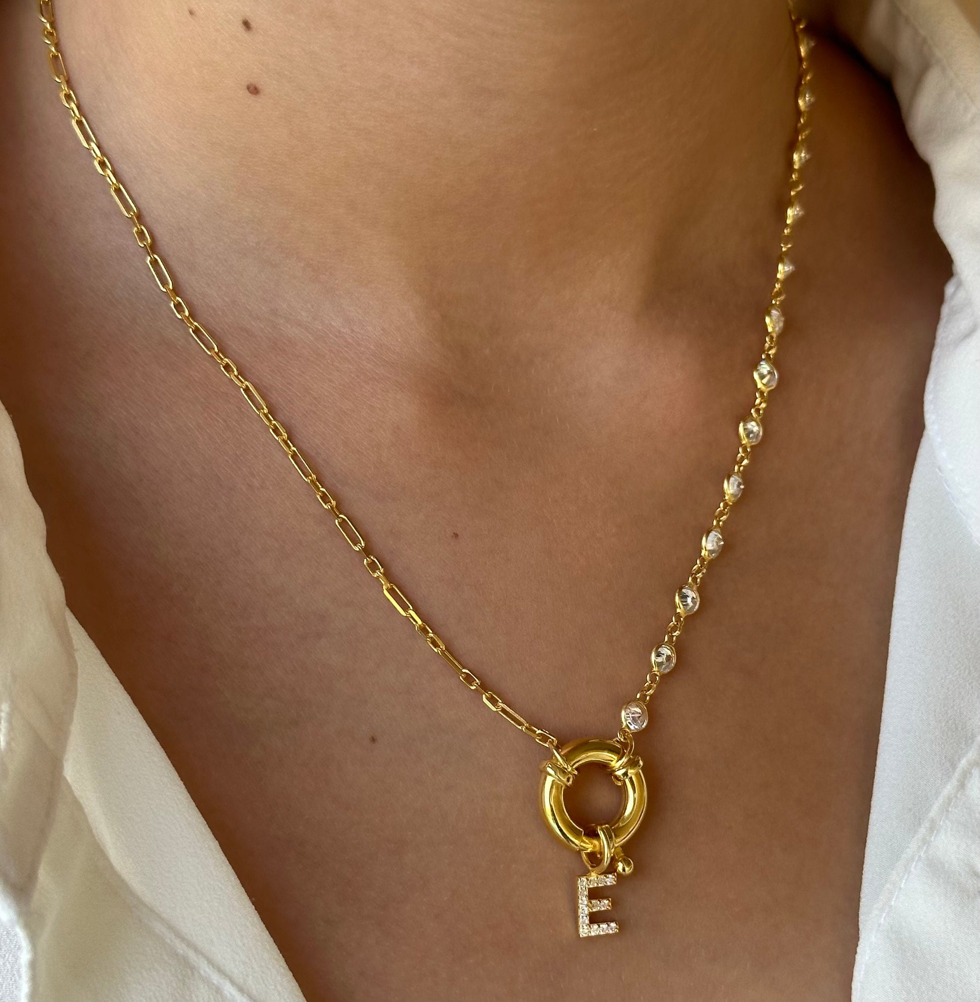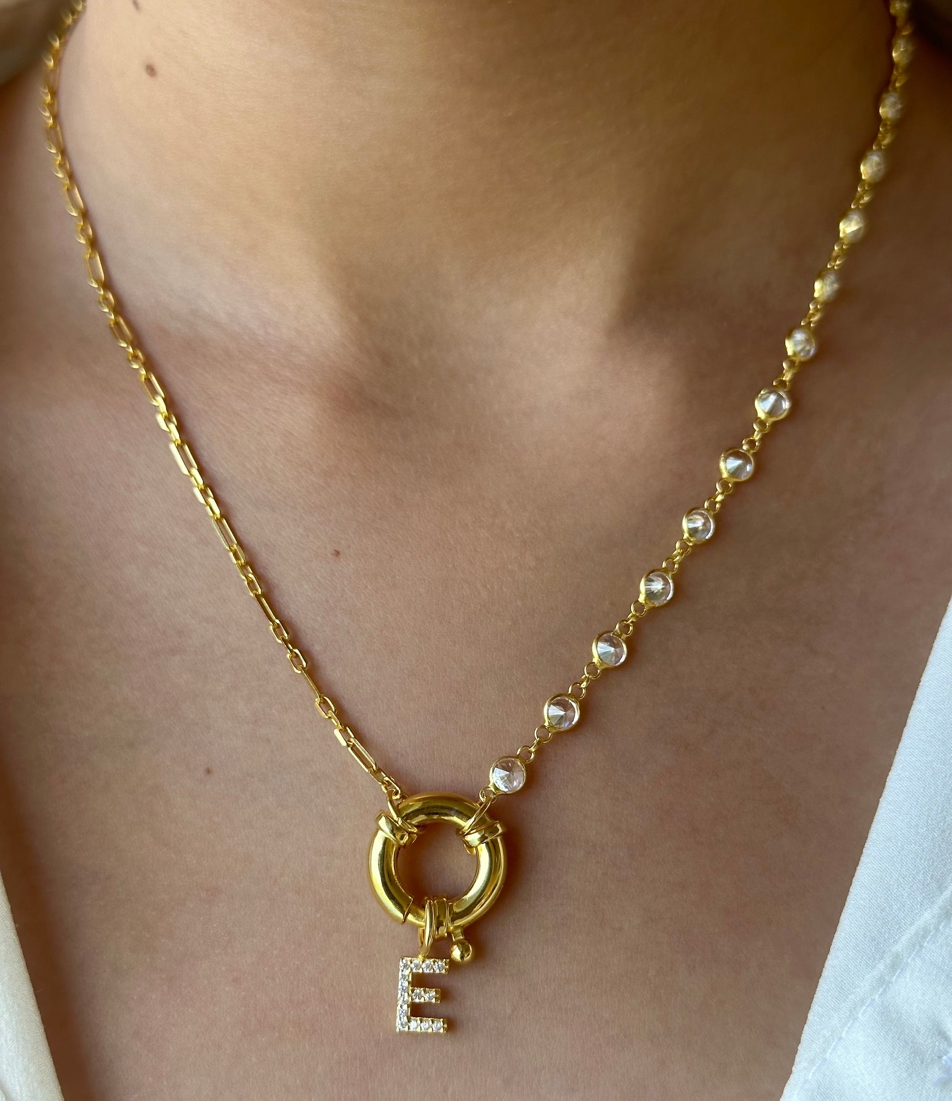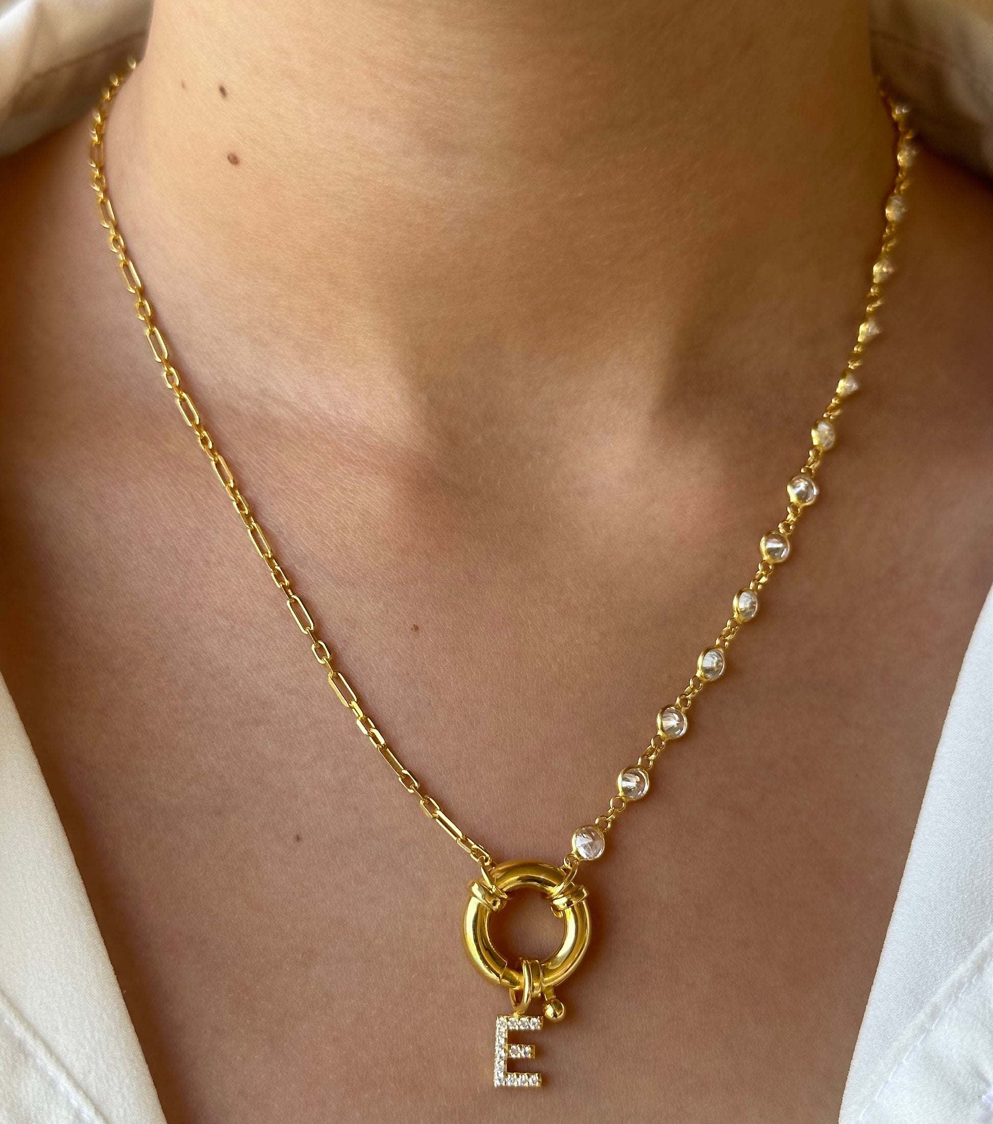 Initial Necklace Toggle Clasp, Personalized Pave letter Necklace, Half Link Chain Necklace, Personalized Gift, Initial Jewelry, Mother's Day