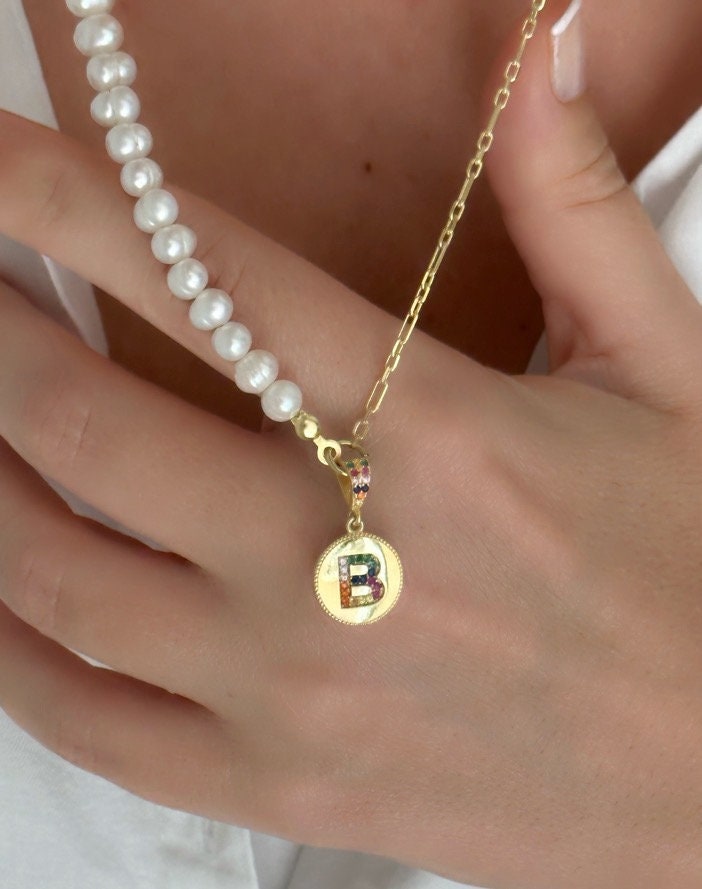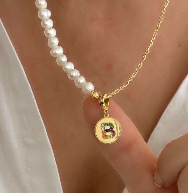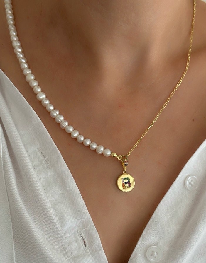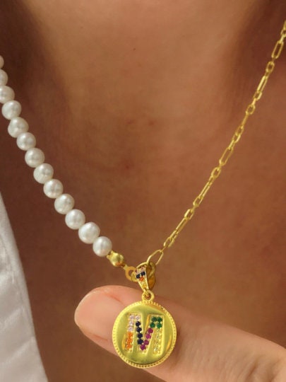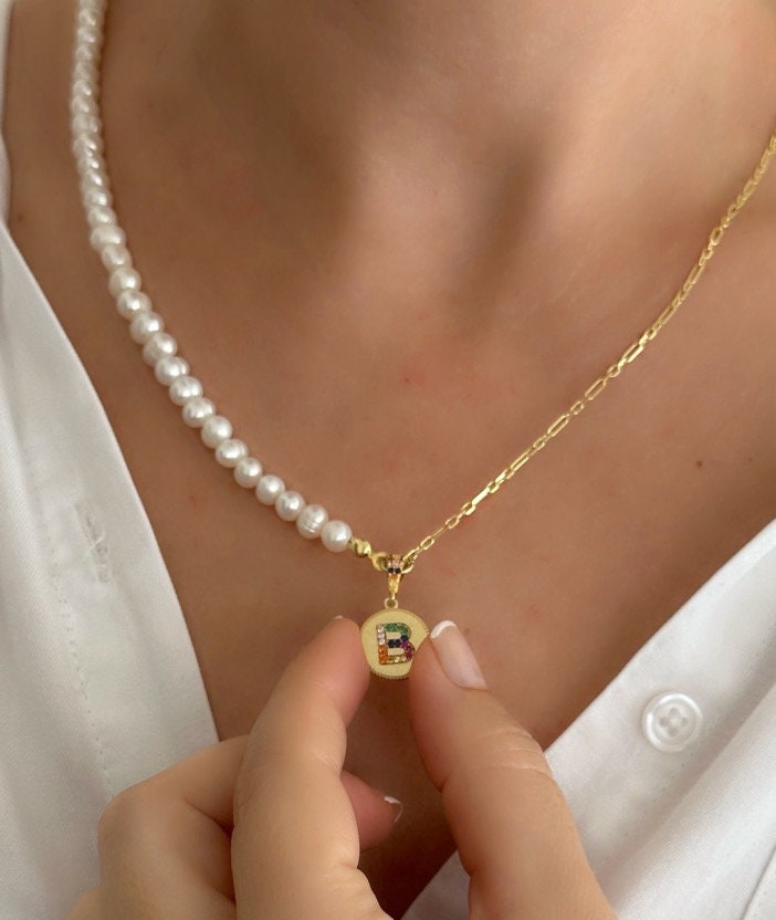Half Pearl Half Chain Necklace, Initial Pearl necklace, Pearl Name Necklace, Pearl Choker, Letter Pearl Necklace, Personalized Pearl Necklace, Custom Necklace, Freshwater Pearls, T Paperclip chain necklace, Real pearl necklace, Gift for Girlfriend, Trendy Necklace