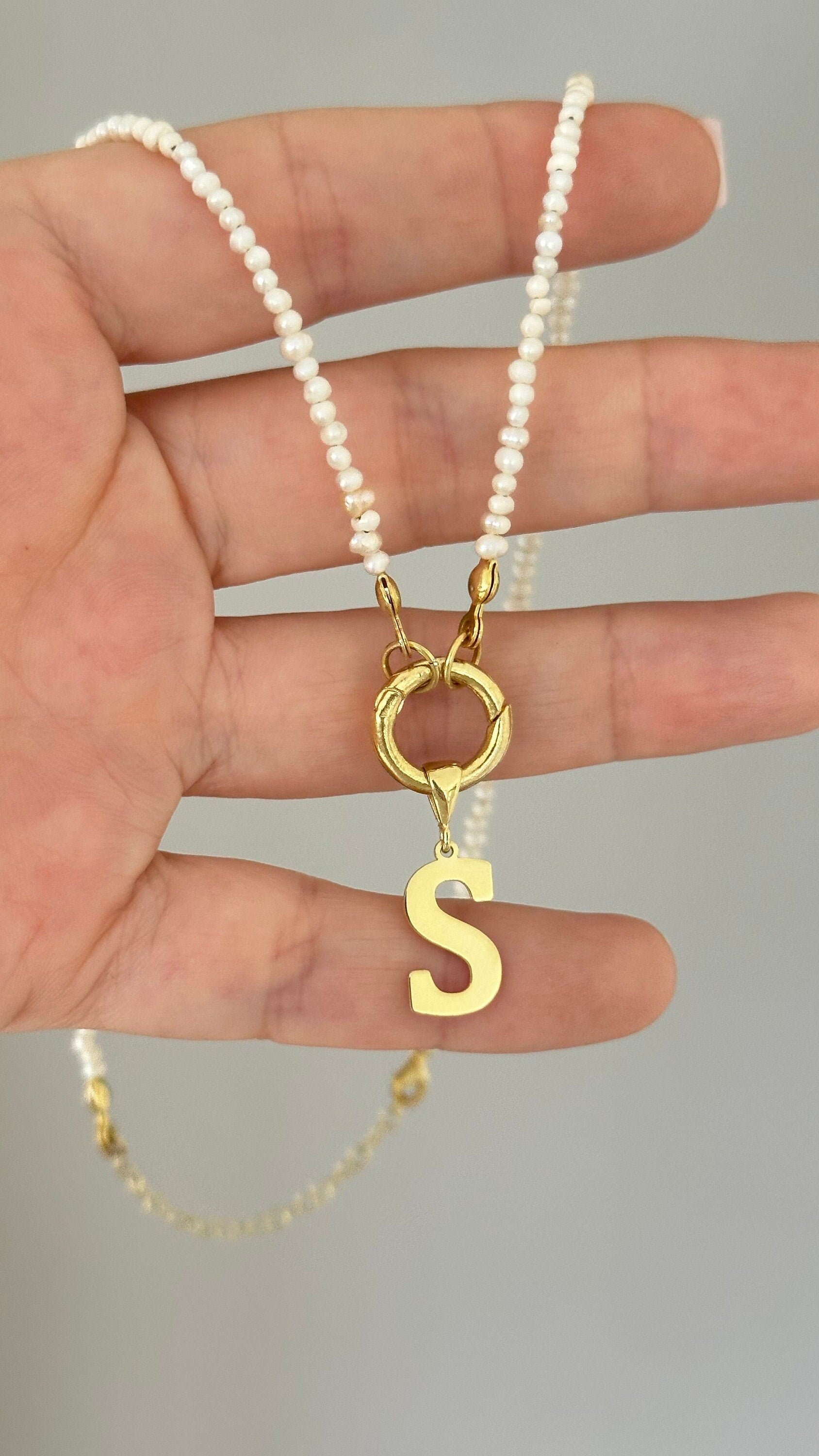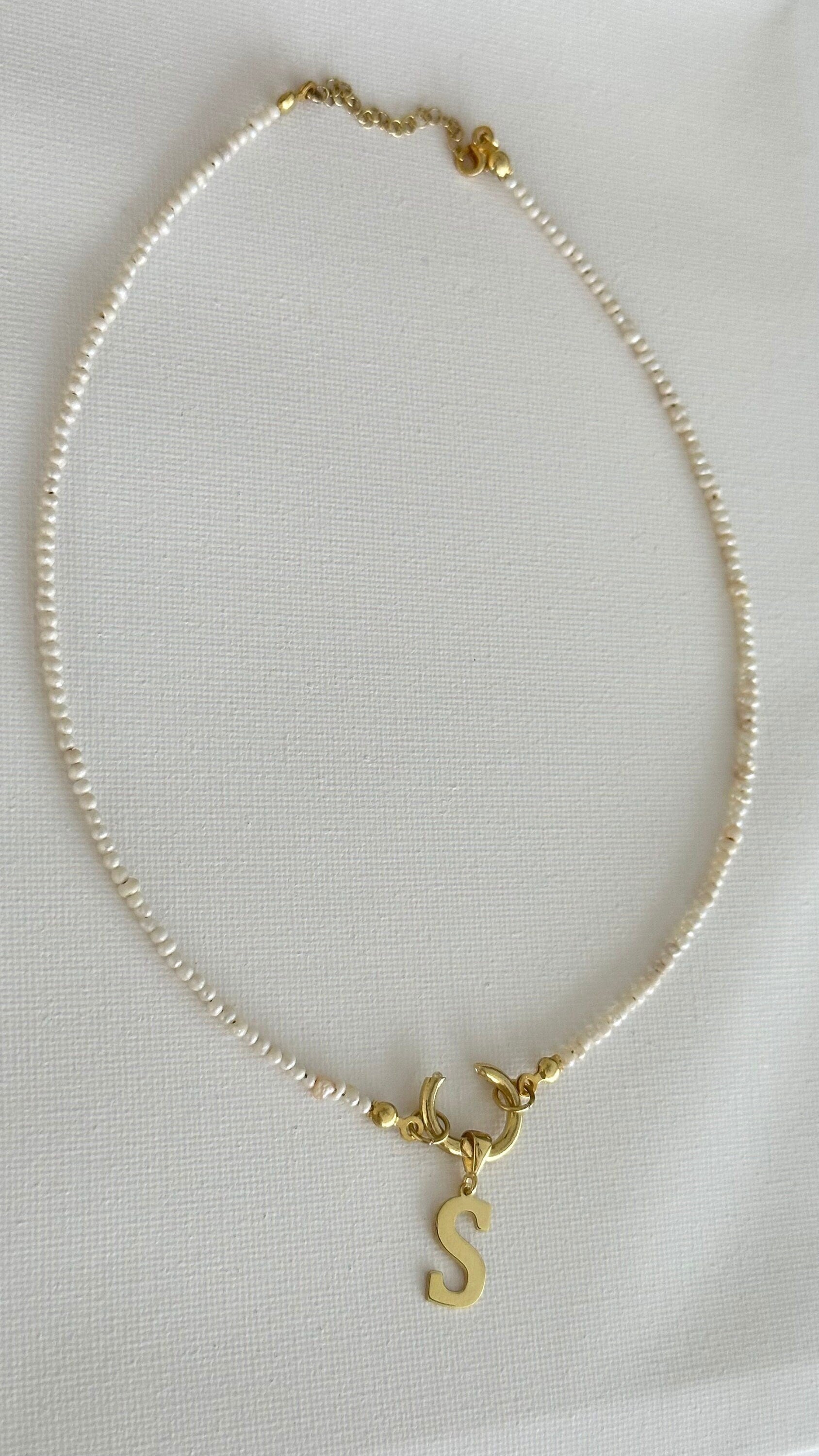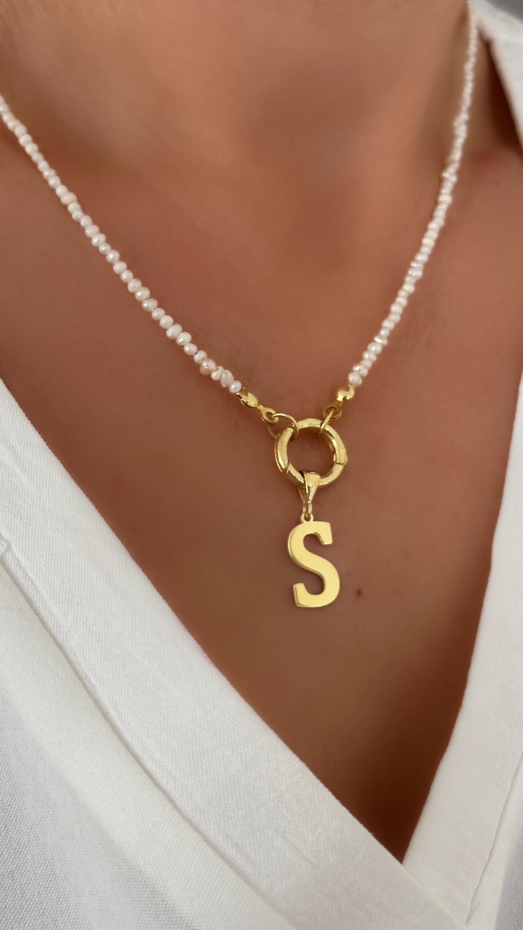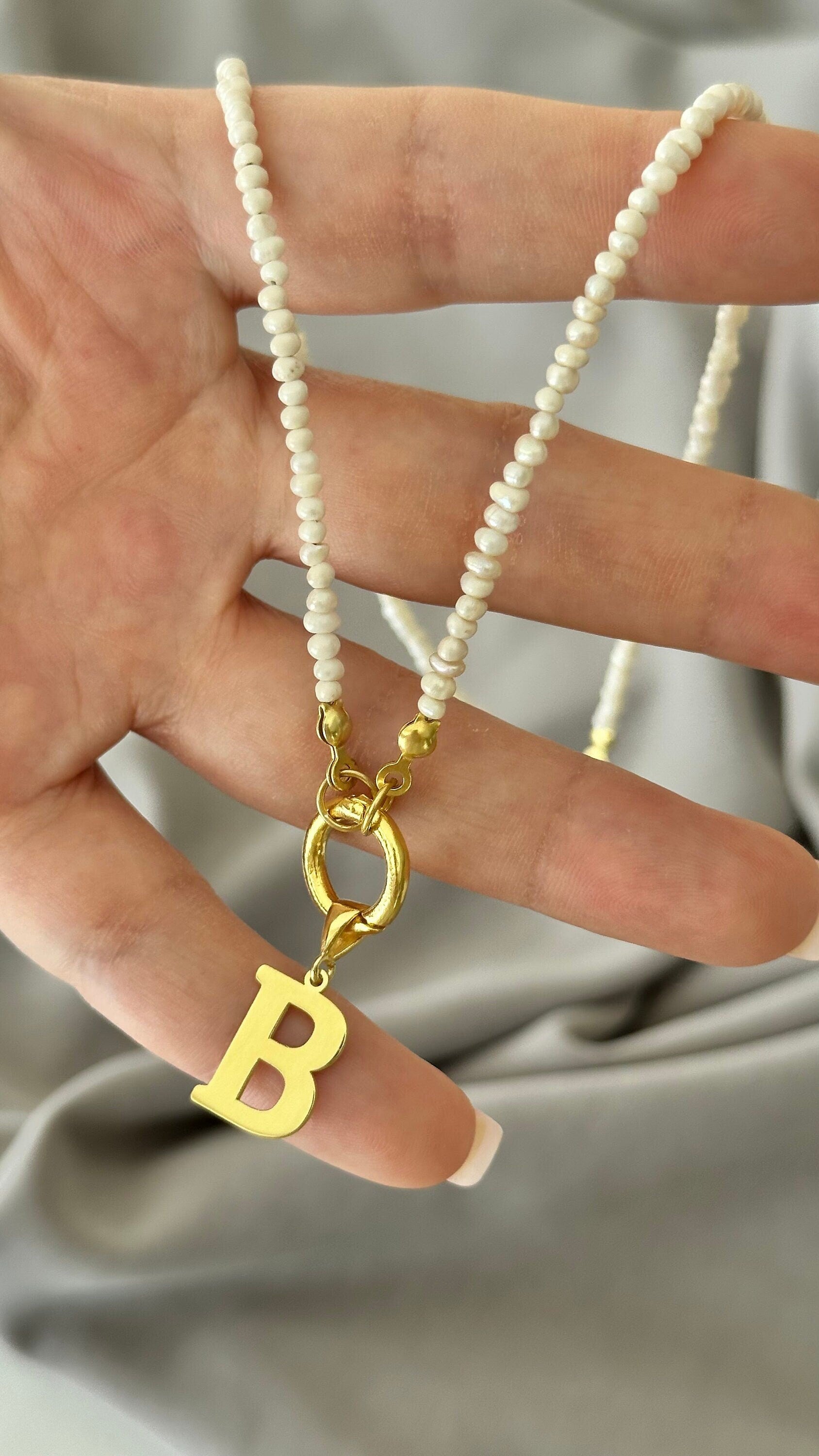 Initial Pearl Necklace, Natural Tiny Pearl Necklace, Personalized Letter Pearl Necklace, Custom Name Necklace, Jewelry Gift Woman Girls