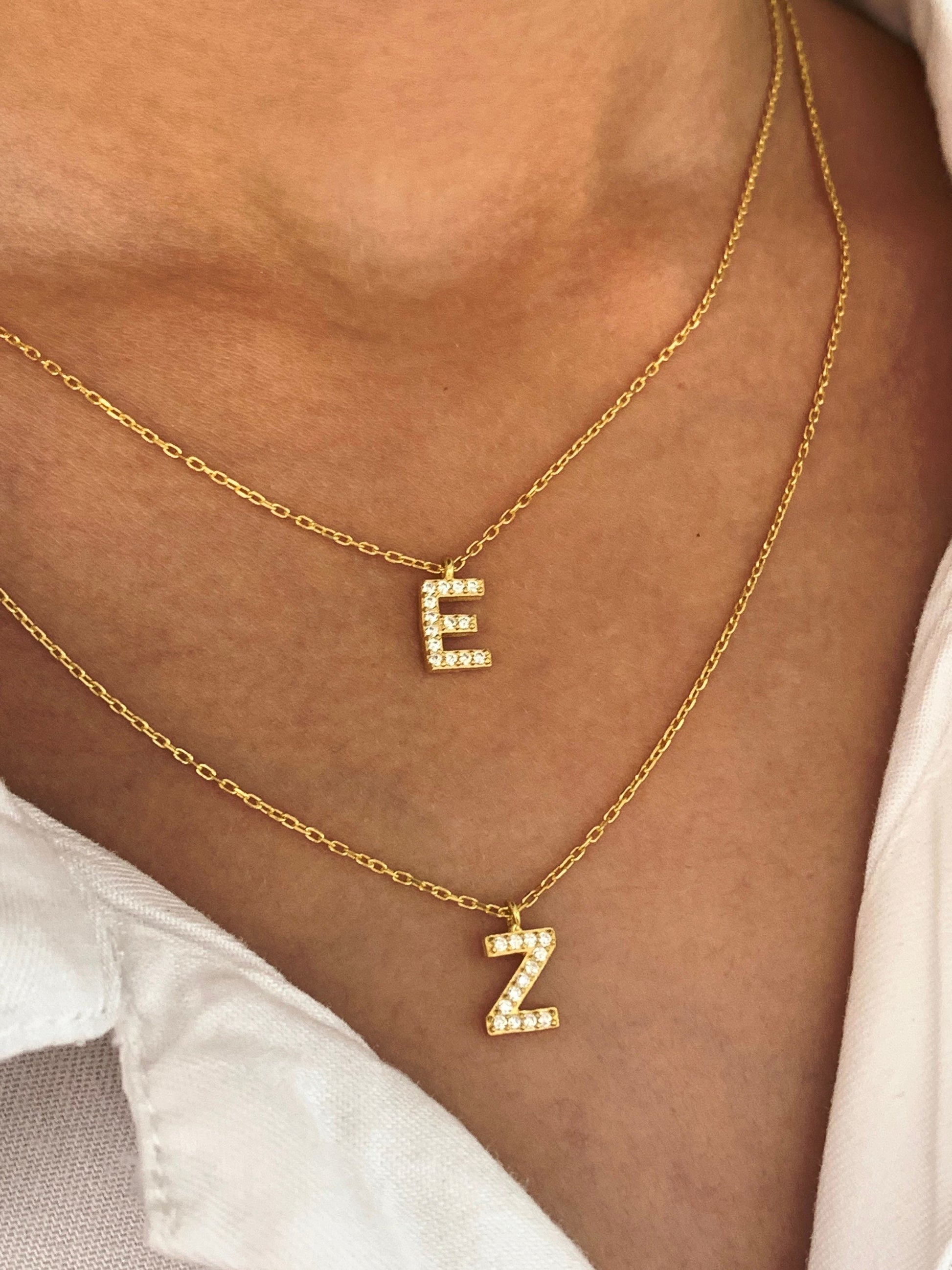 Double Initial Necklace Set, Two Letters Necklace, Layering Necklace Set, Personalized gifts, CZ Diamonds, Personalized Minimalist Jewelry, Layered and Long, Necklace Set of 2, Pave Initial necklace, 925 Sterling Silver