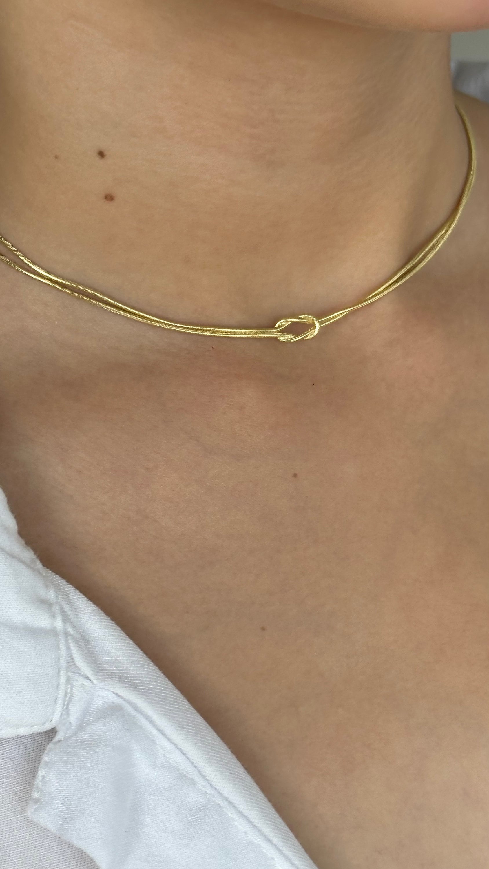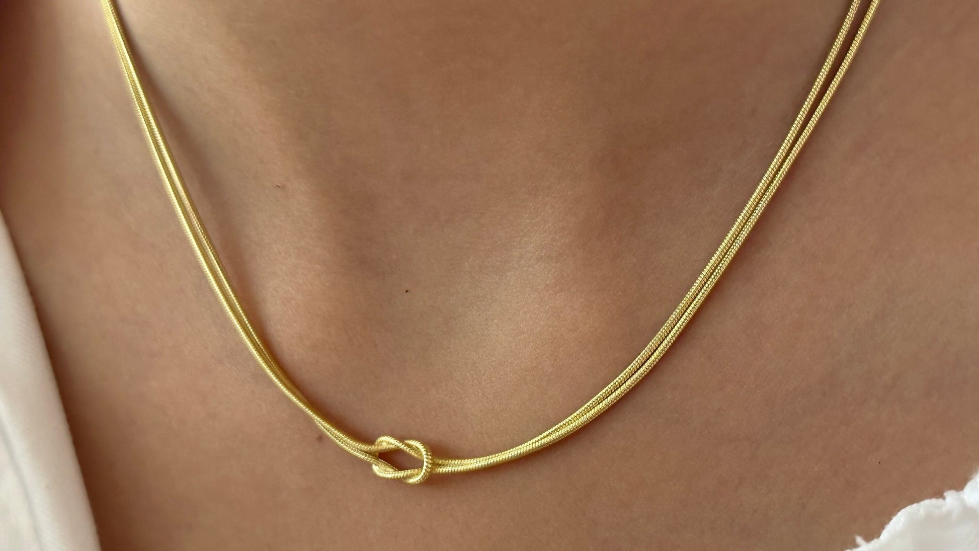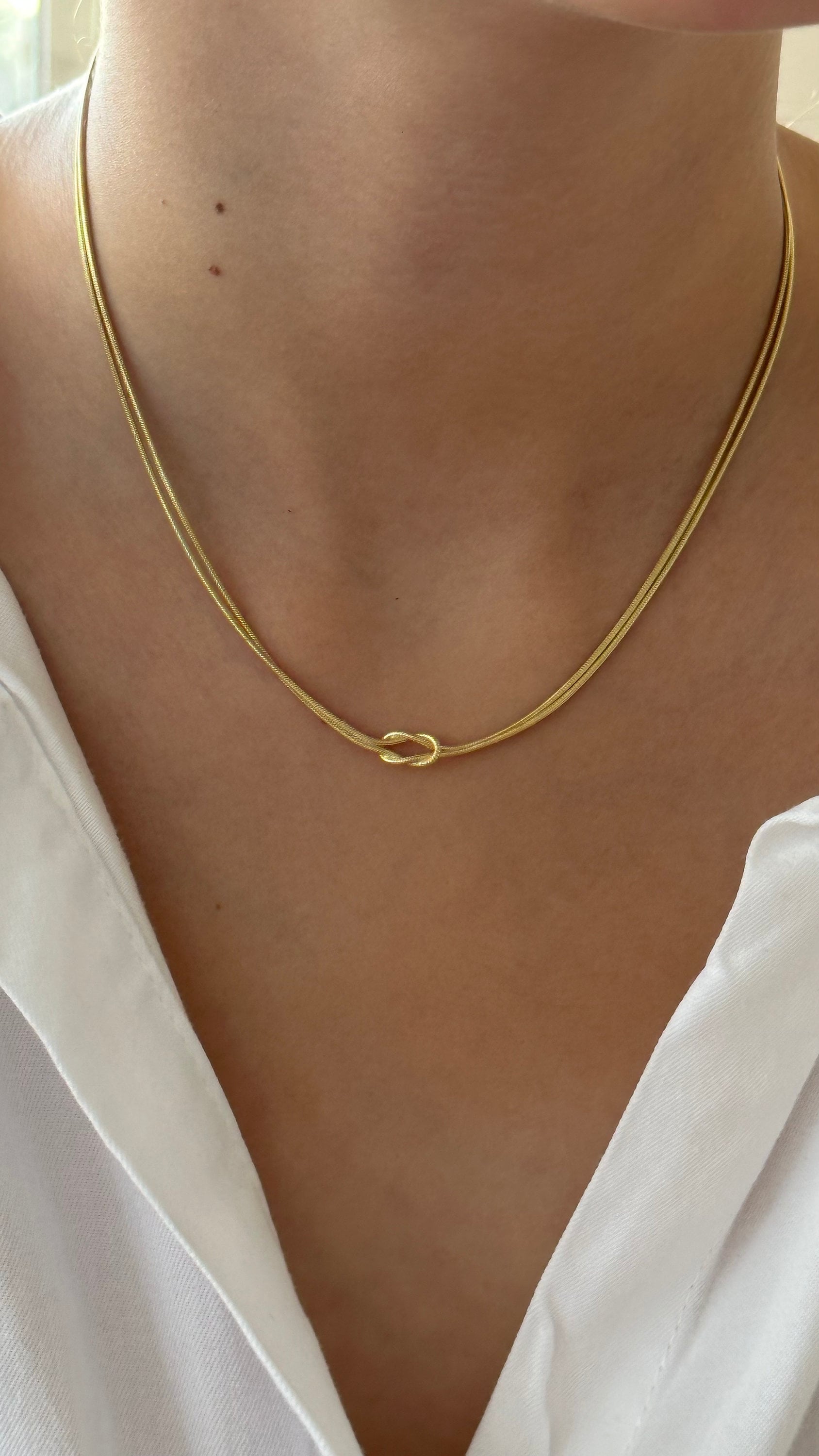 Love Knot Necklace, Double Chain Knot Necklace, Knot Choker, Everyday Minimalist Necklace, Endless Knot, Christmas Gift for her, Bridal Gift