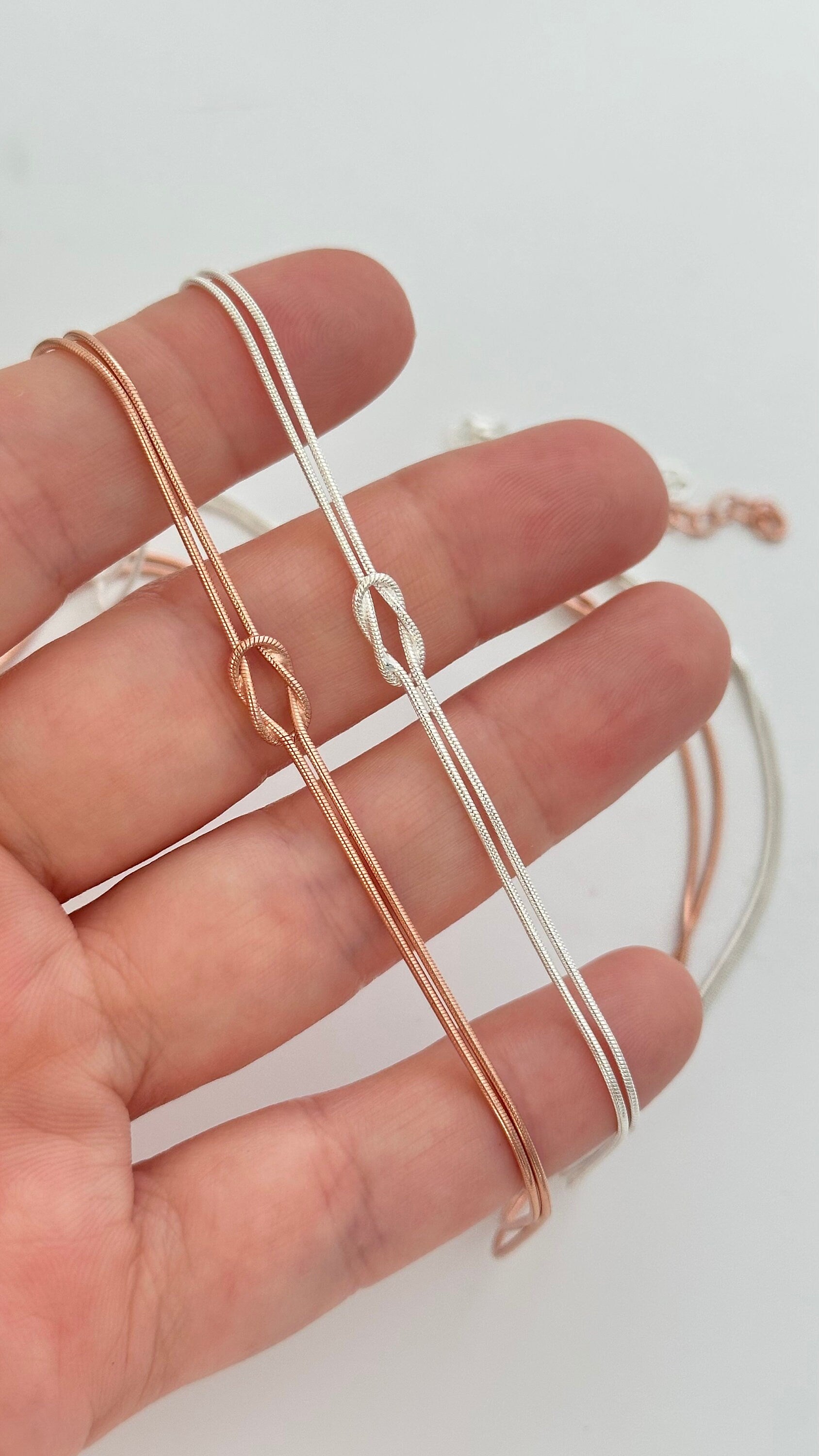 Sterling Silver Love Knot, Dainty Silver Knot necklace, Double Chain Knot , Minimalist everyday necklace, Endless Knot Christmas Gift for her, Bridal Gift