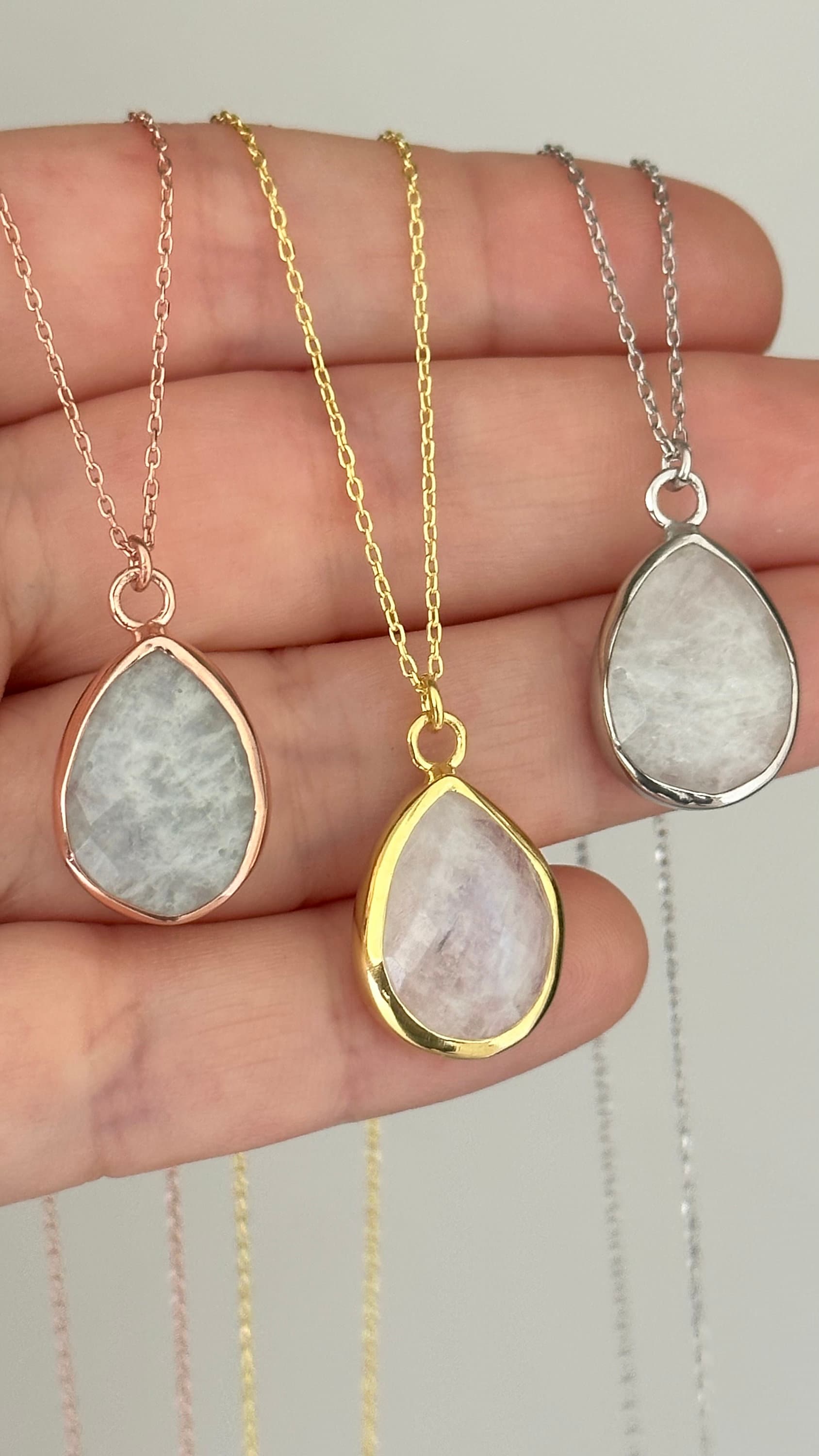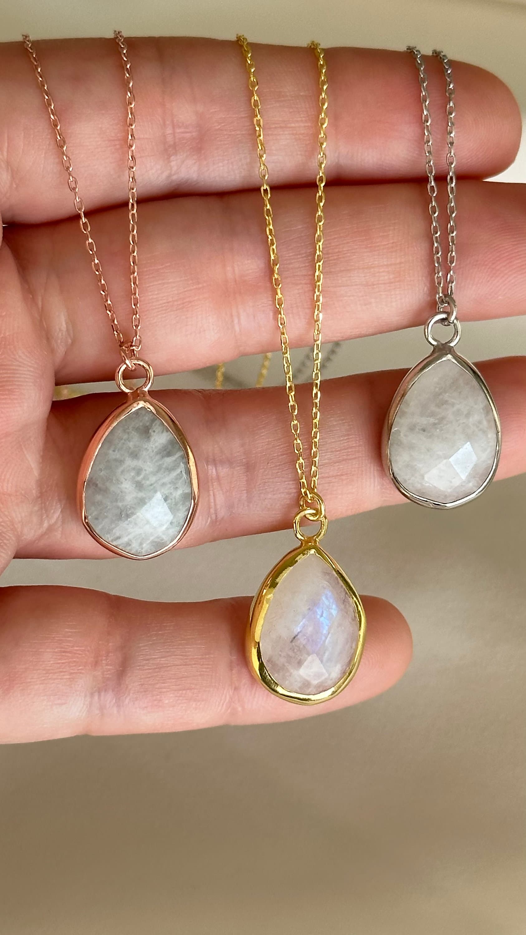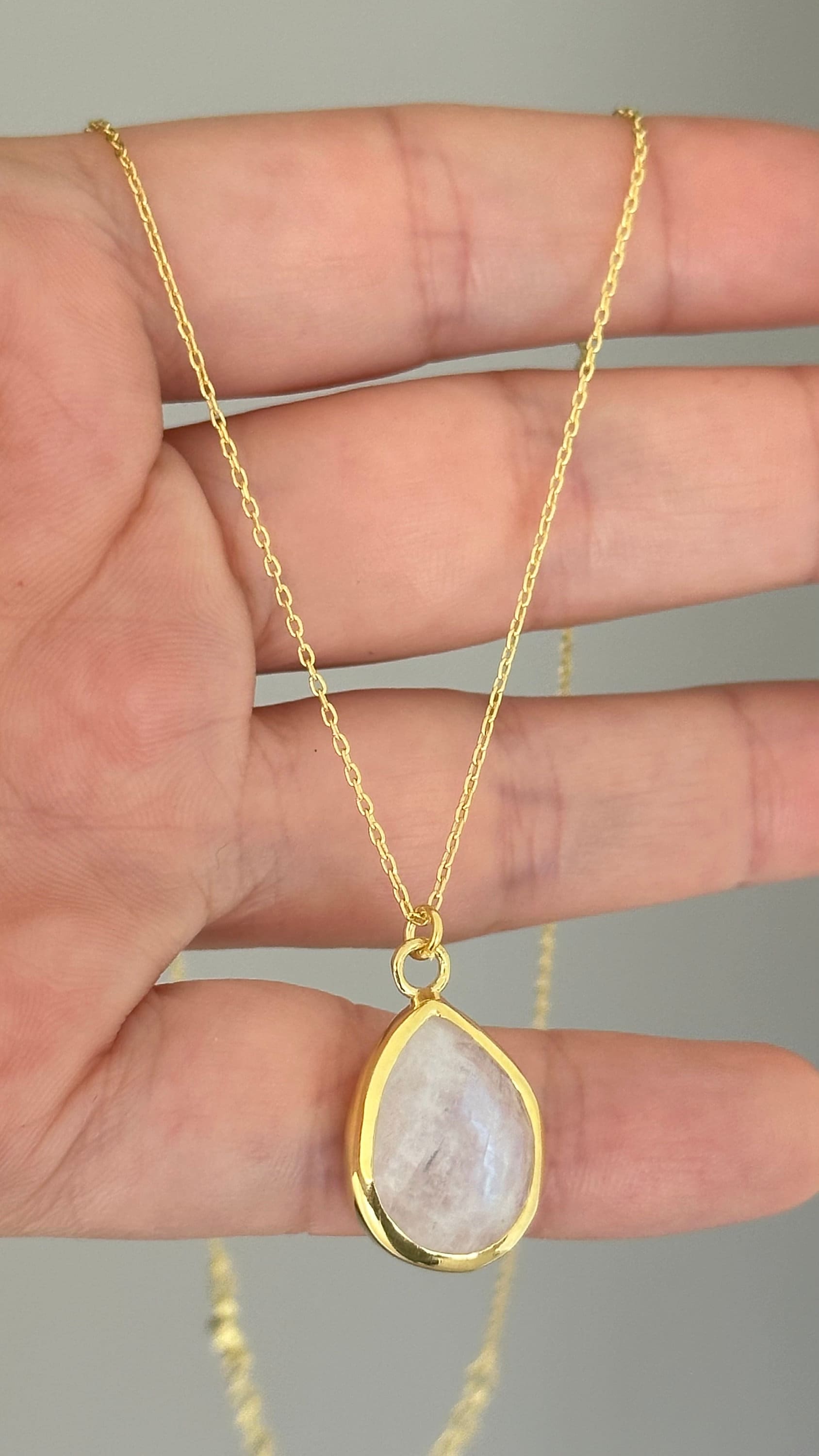 Moon Stone Pendant Necklace, Crystal Healing Necklace, Opalite Moonstone, Yoga Gifts, Healing Jewelry, Rose Gold Necklace, 925 Silver