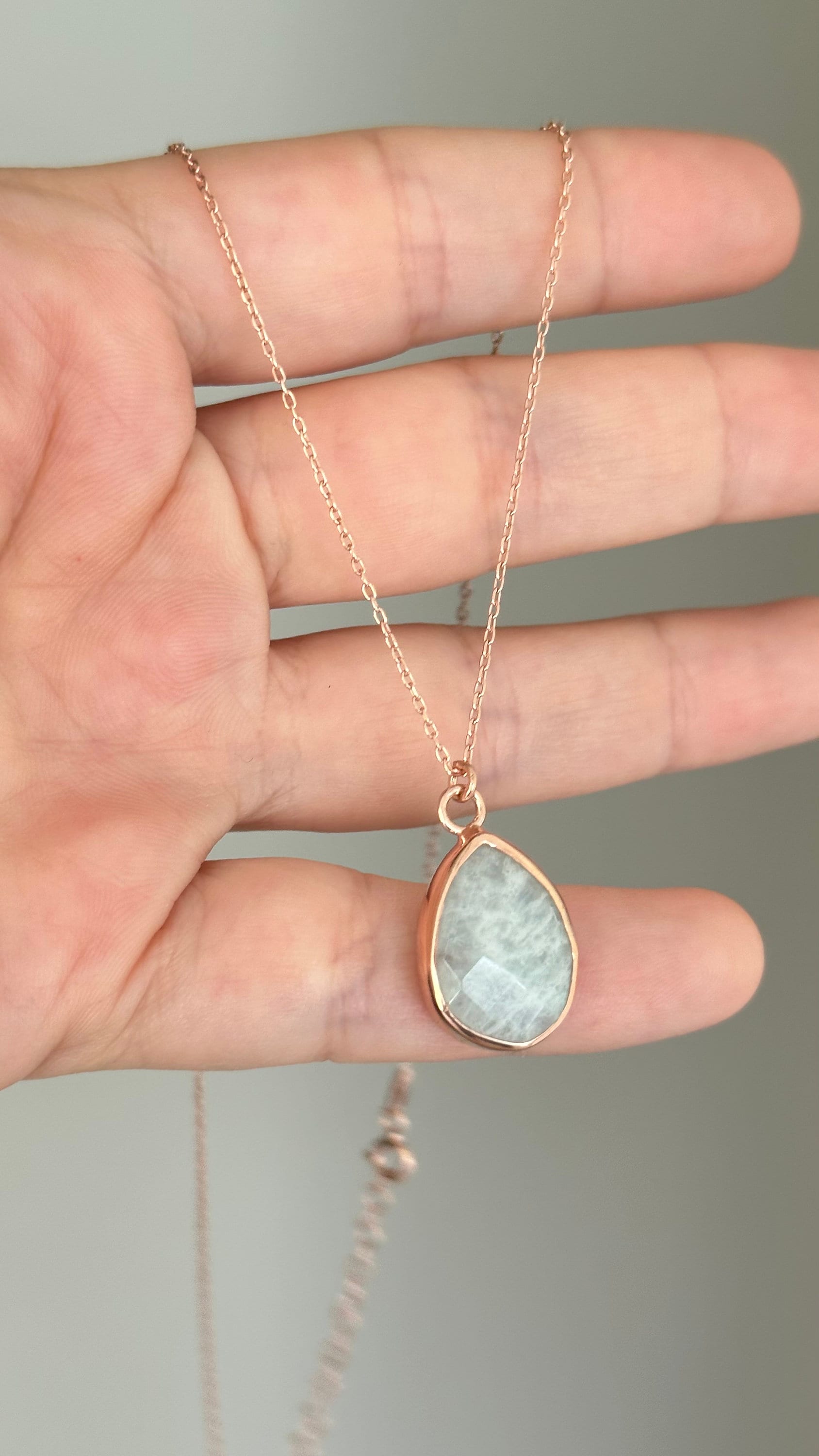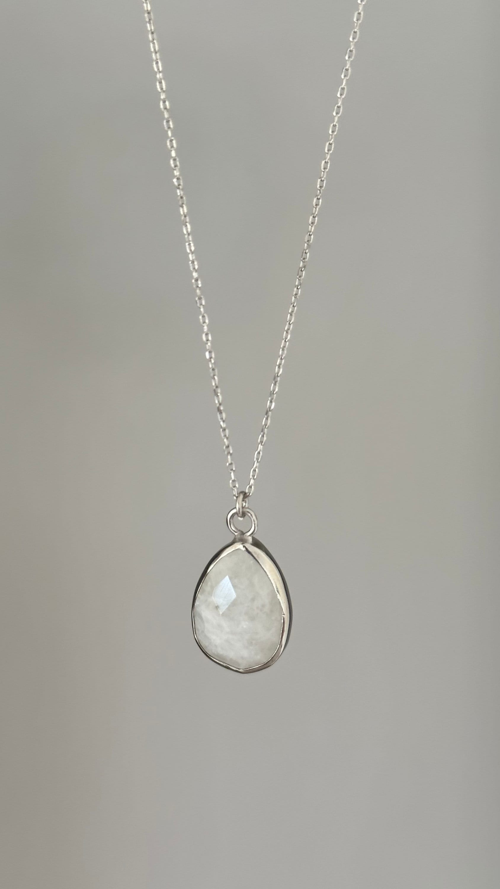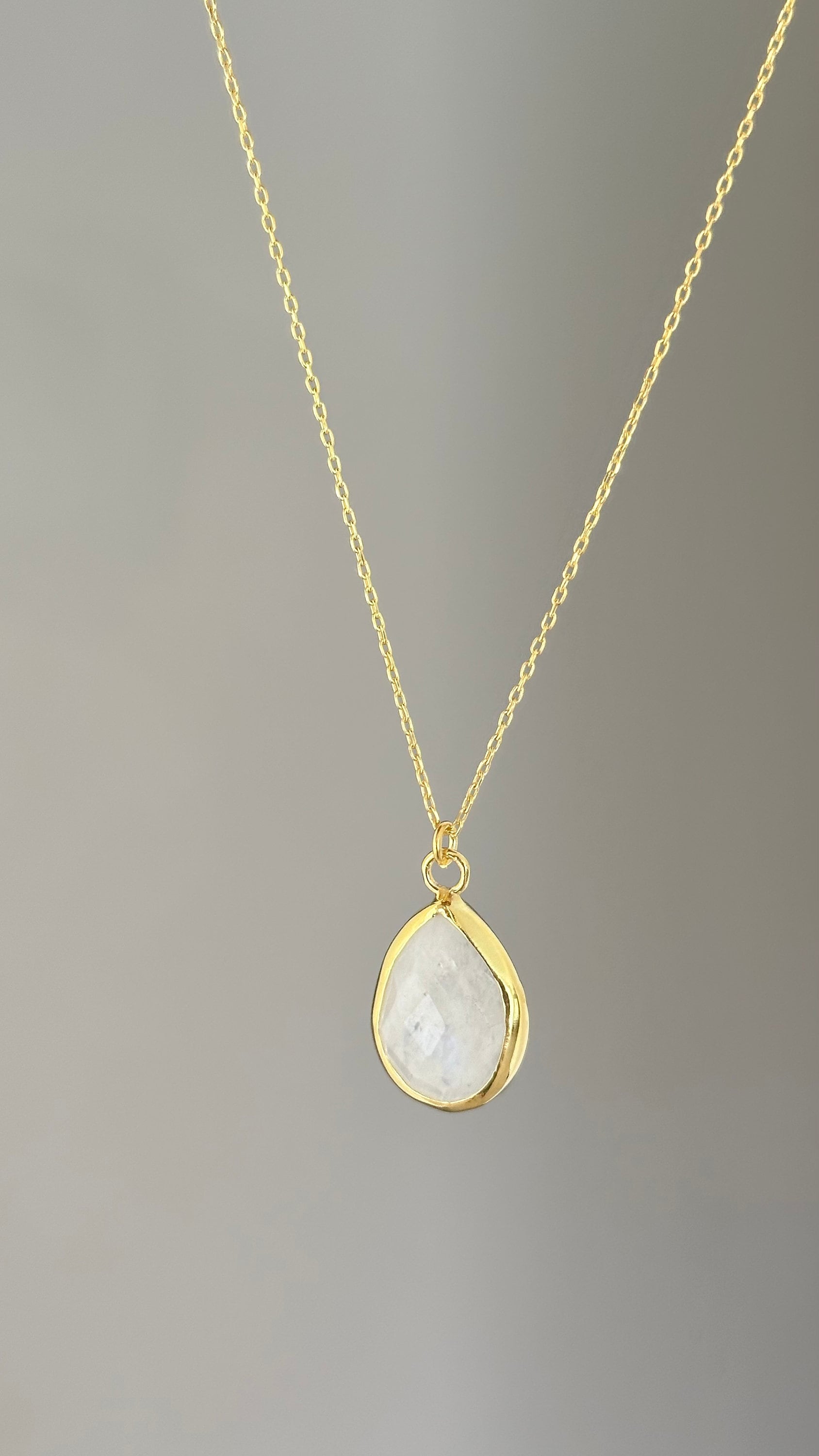 Moon Stone Pendant Necklace, Crystal Healing Necklace, Opalite Moonstone, Yoga Gifts, Healing Jewelry, Rose Gold Necklace, 925 Silver
