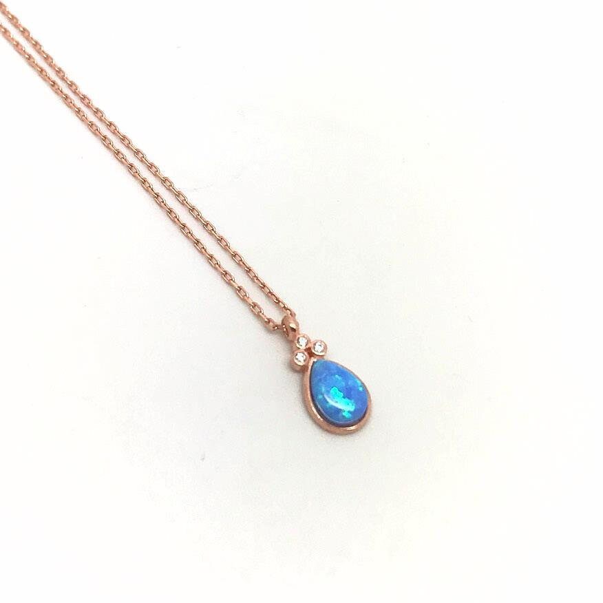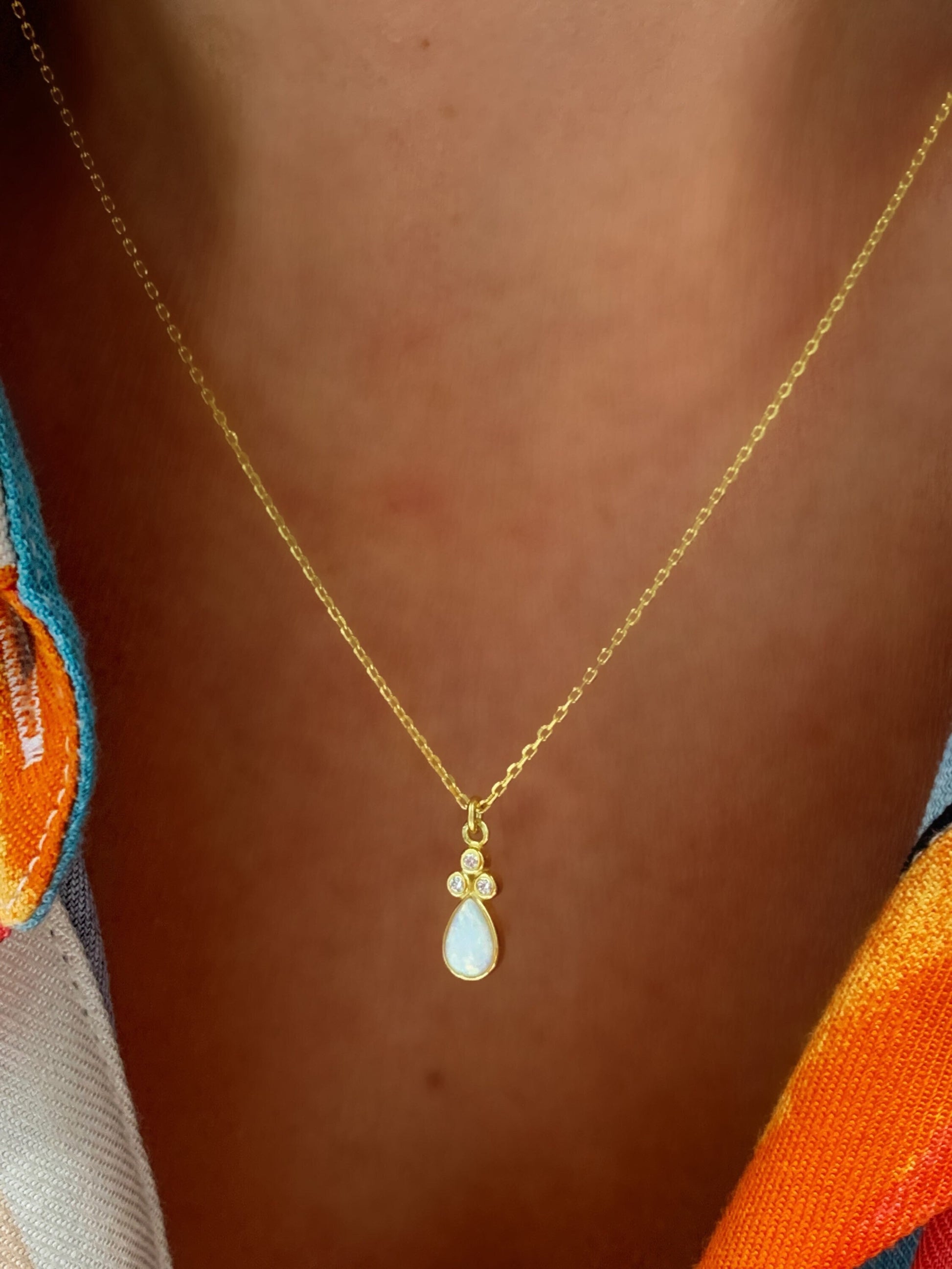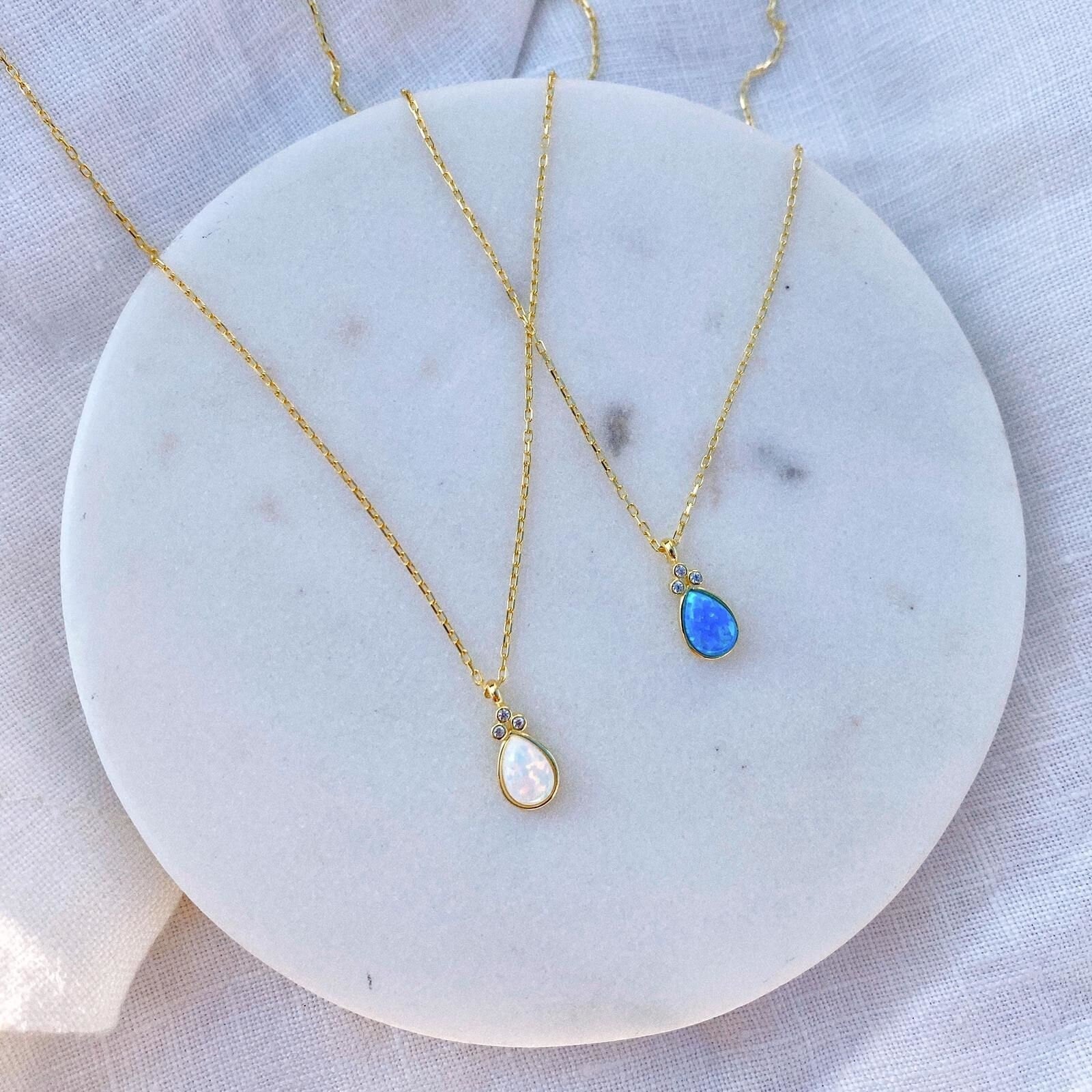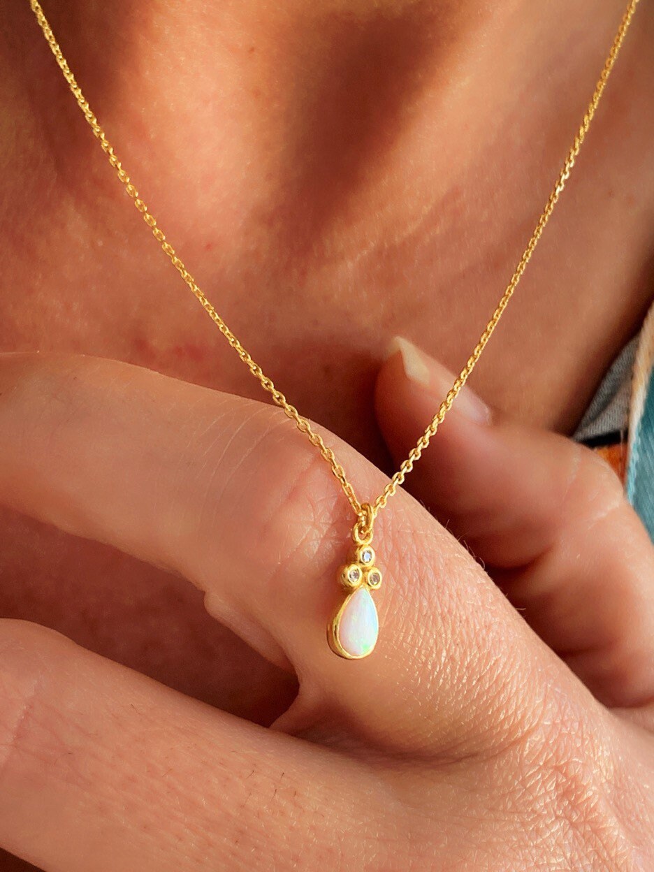 This minimal opal drop necklace is great gift for a woman or addition to your jewelry collection. You can wear this white opal birthstone jewelry alone or layer with other pieces. 14 K Gold plated over 925 Sterling Silver.