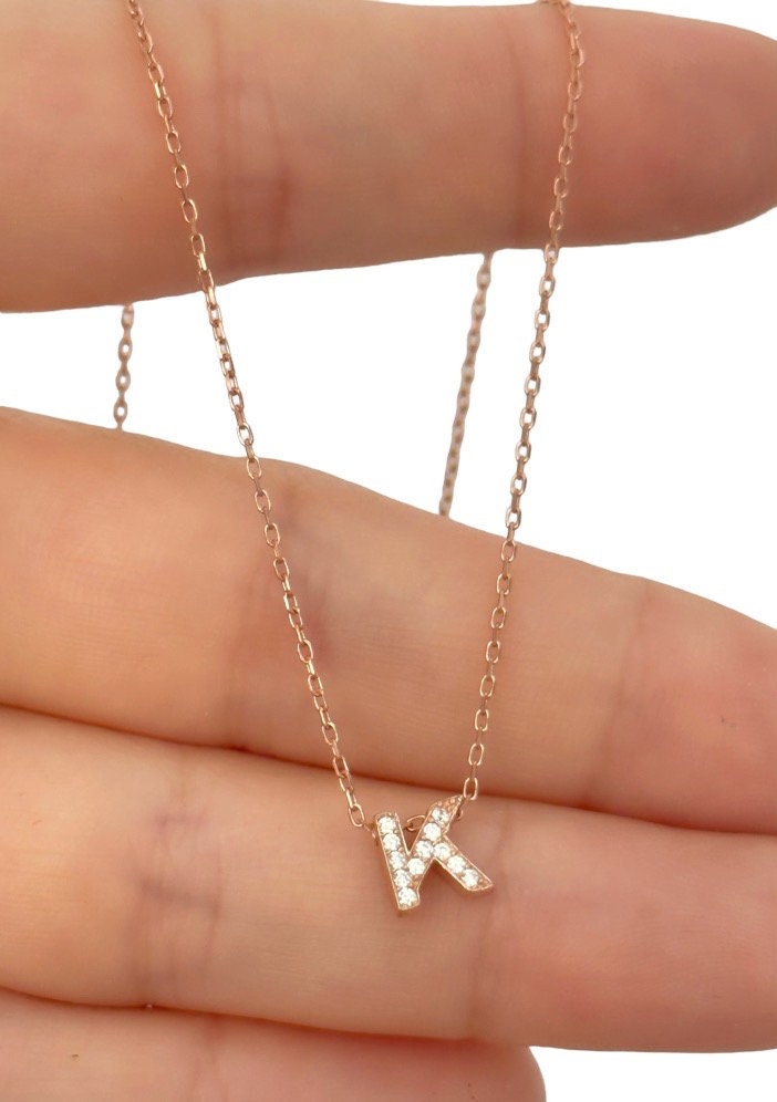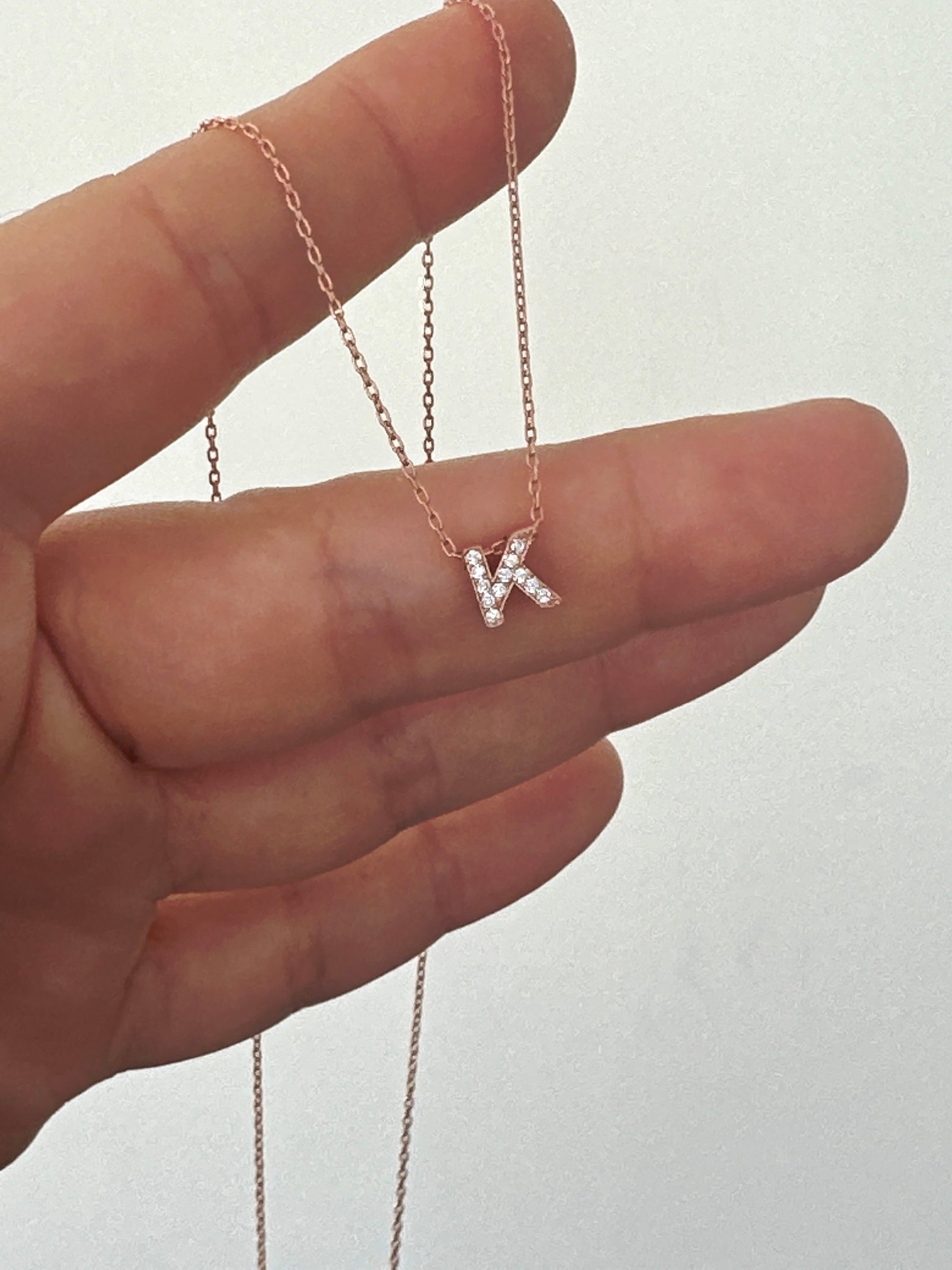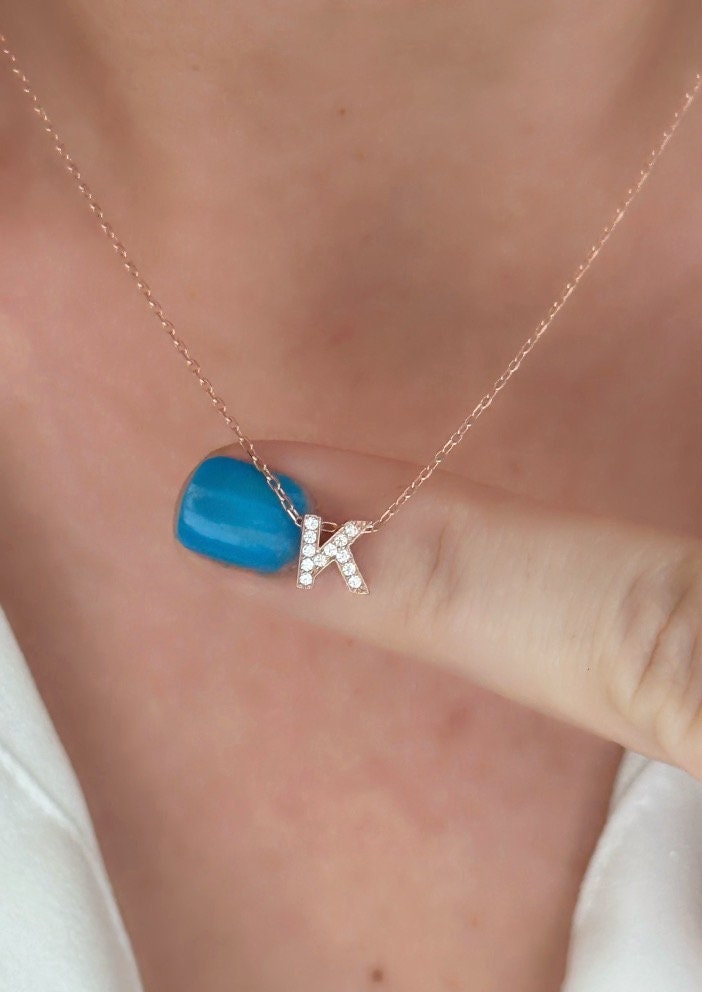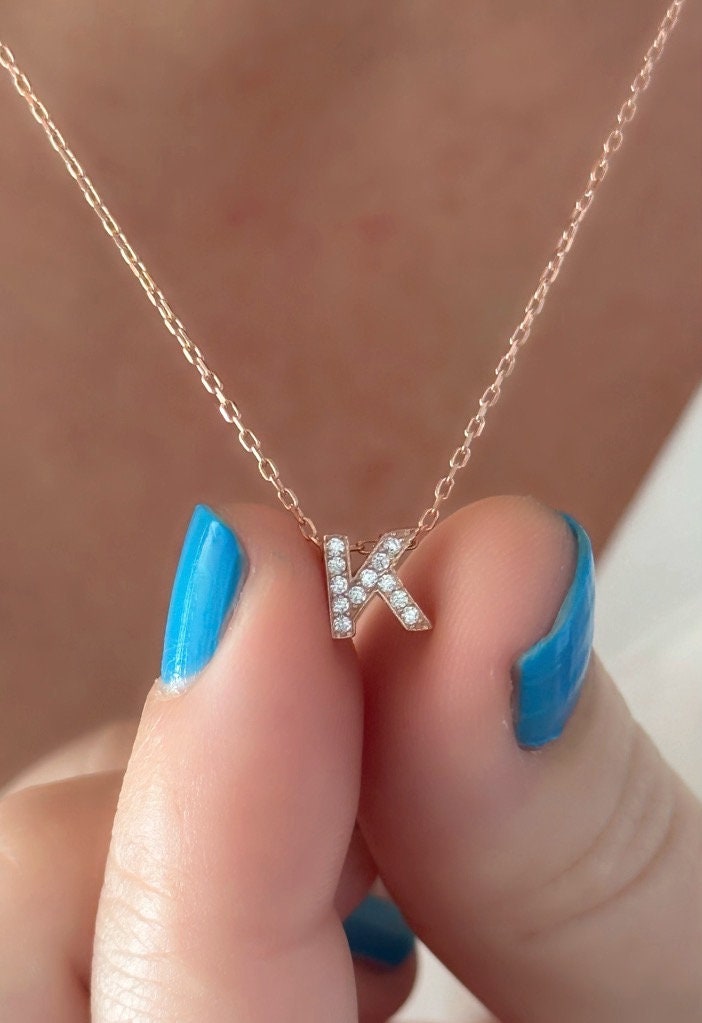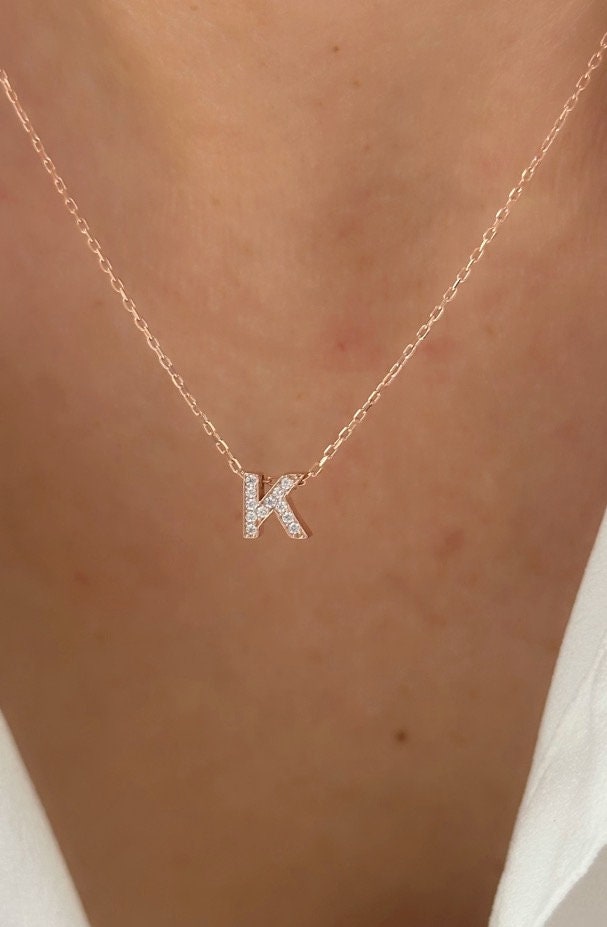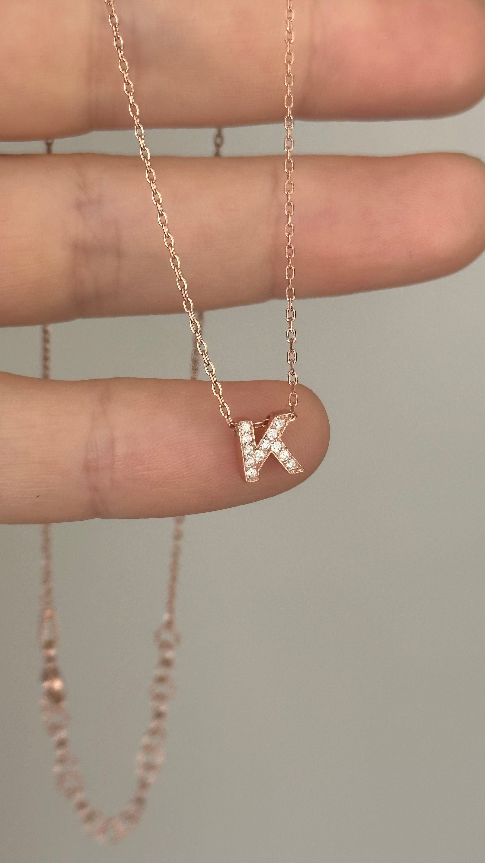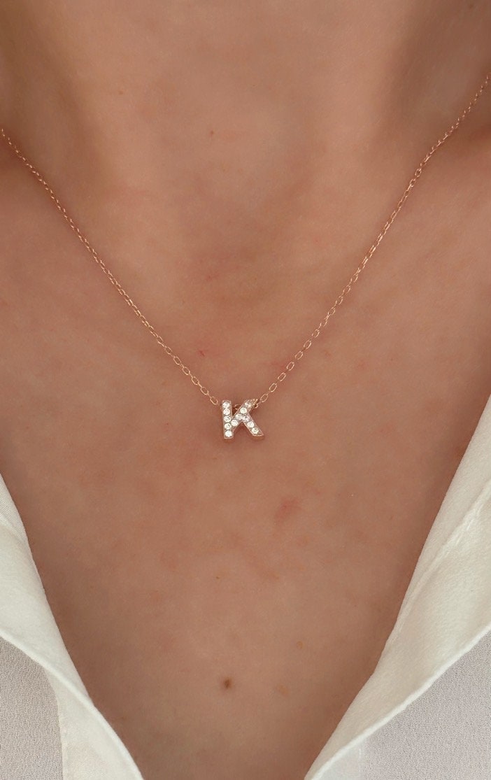 Pave Letter Necklace with CZ Diamonds, Cute Initial Necklace, Personalized Gifts, Statement Necklace, Minimal Jewelry, 925 Sterling Silver