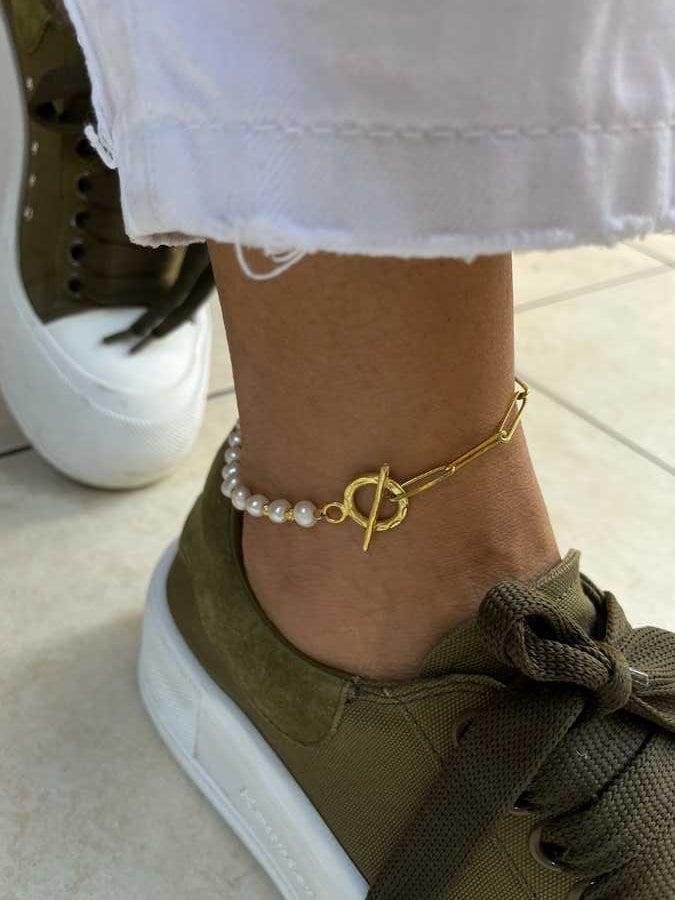 Pearl Anklet, Half Pearl Half Chain Anklet, Gold Pearl Anklet, Bead Anklet, Summer Anklet, Beach Jewelry, Gift for her, Foot Jewelry, Silver