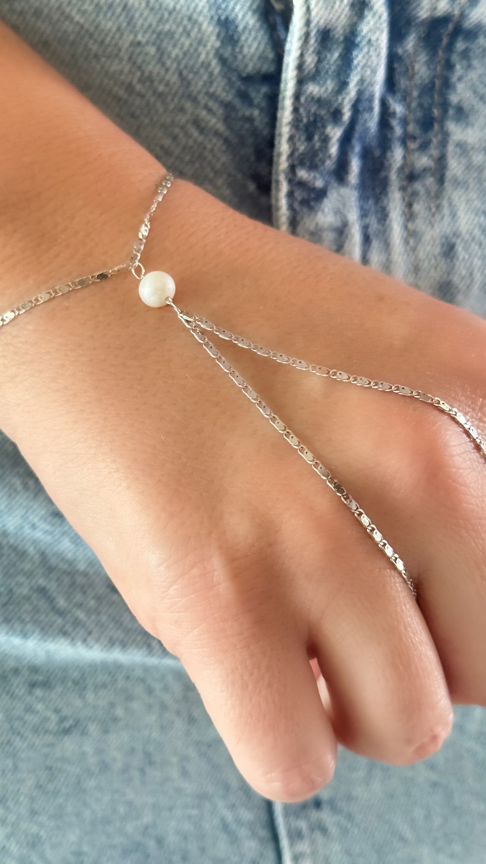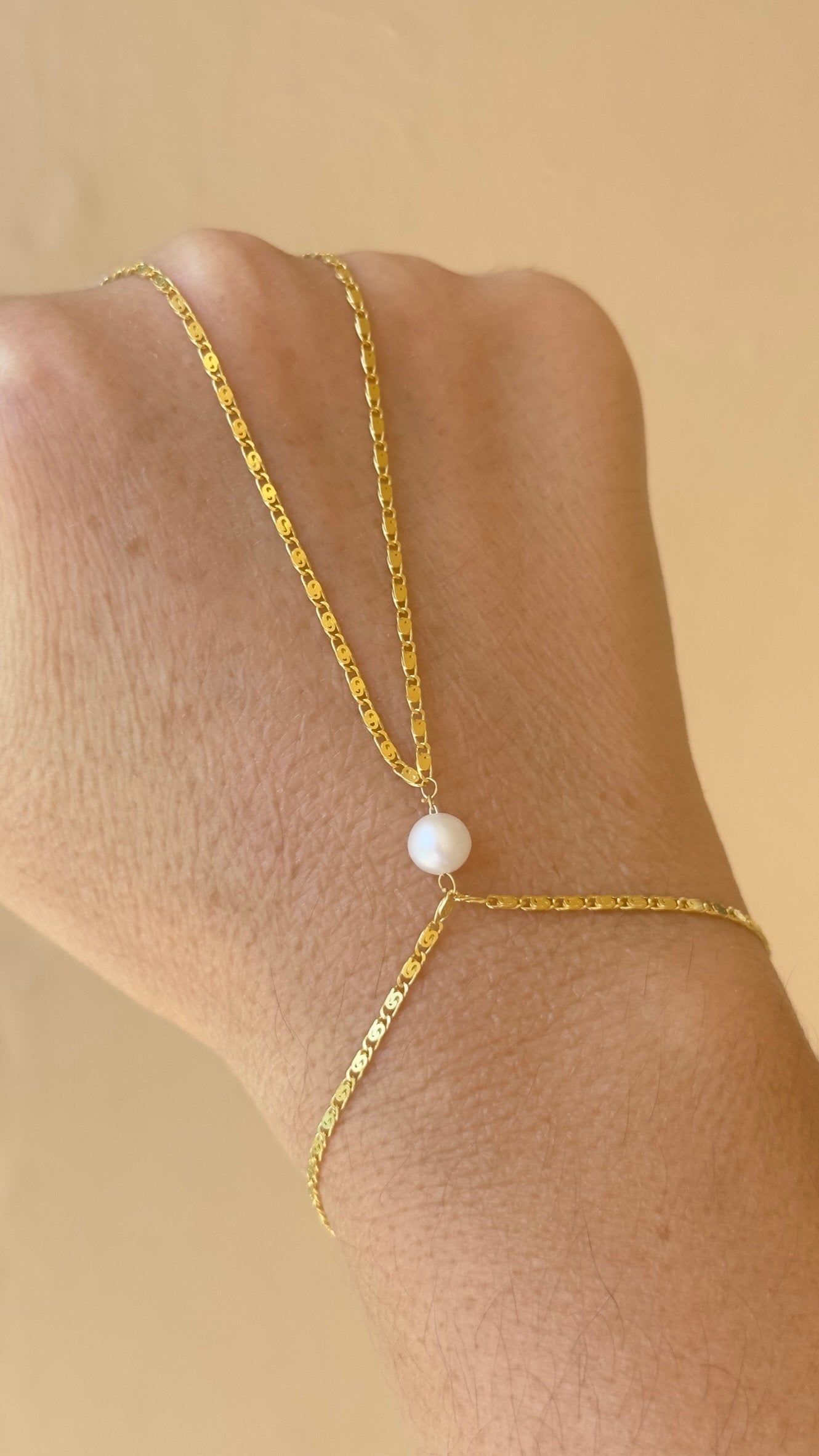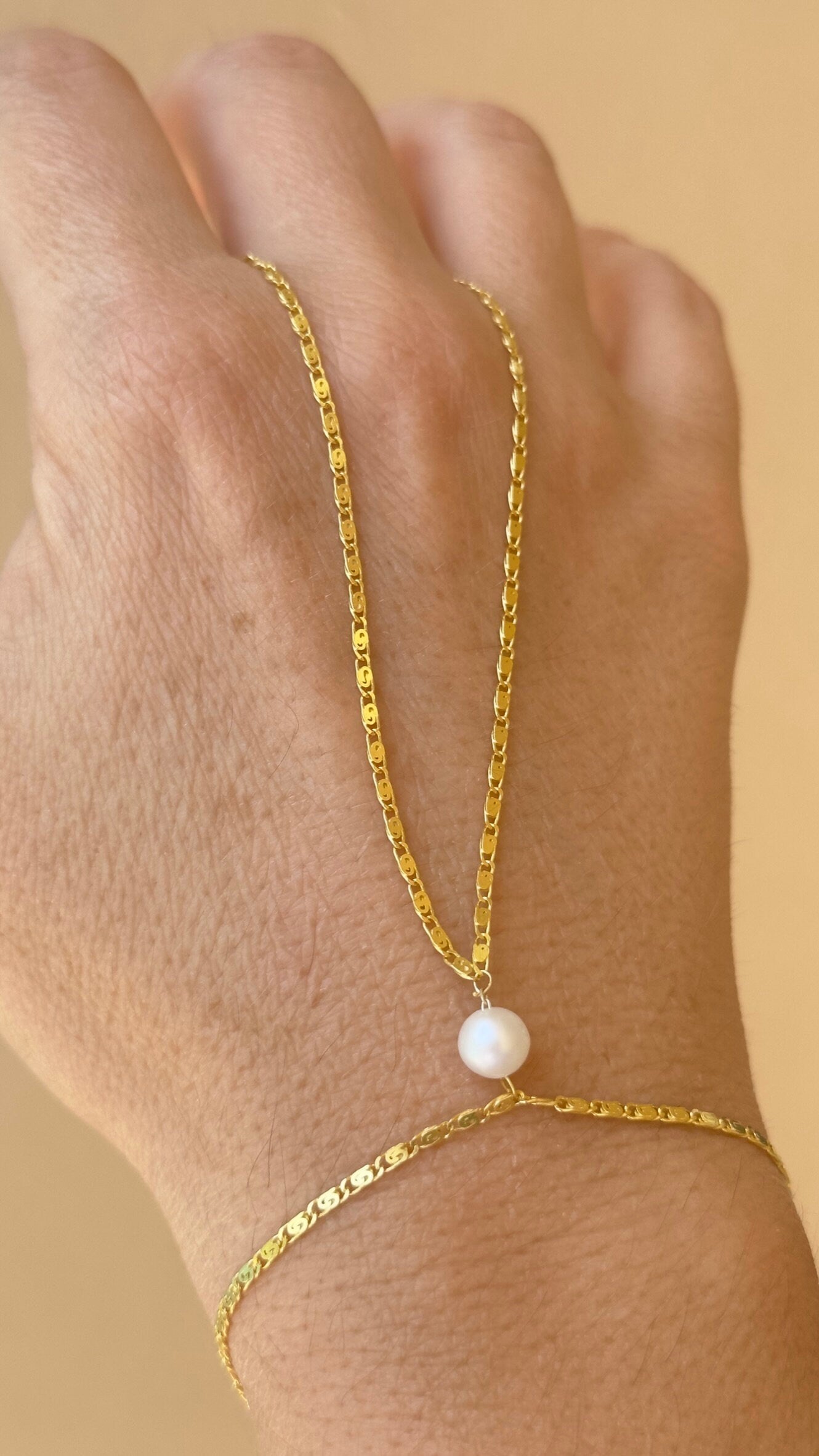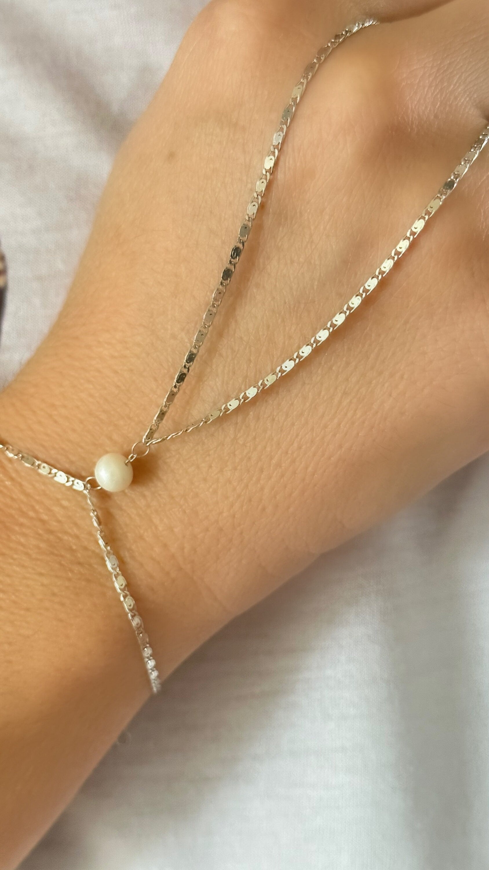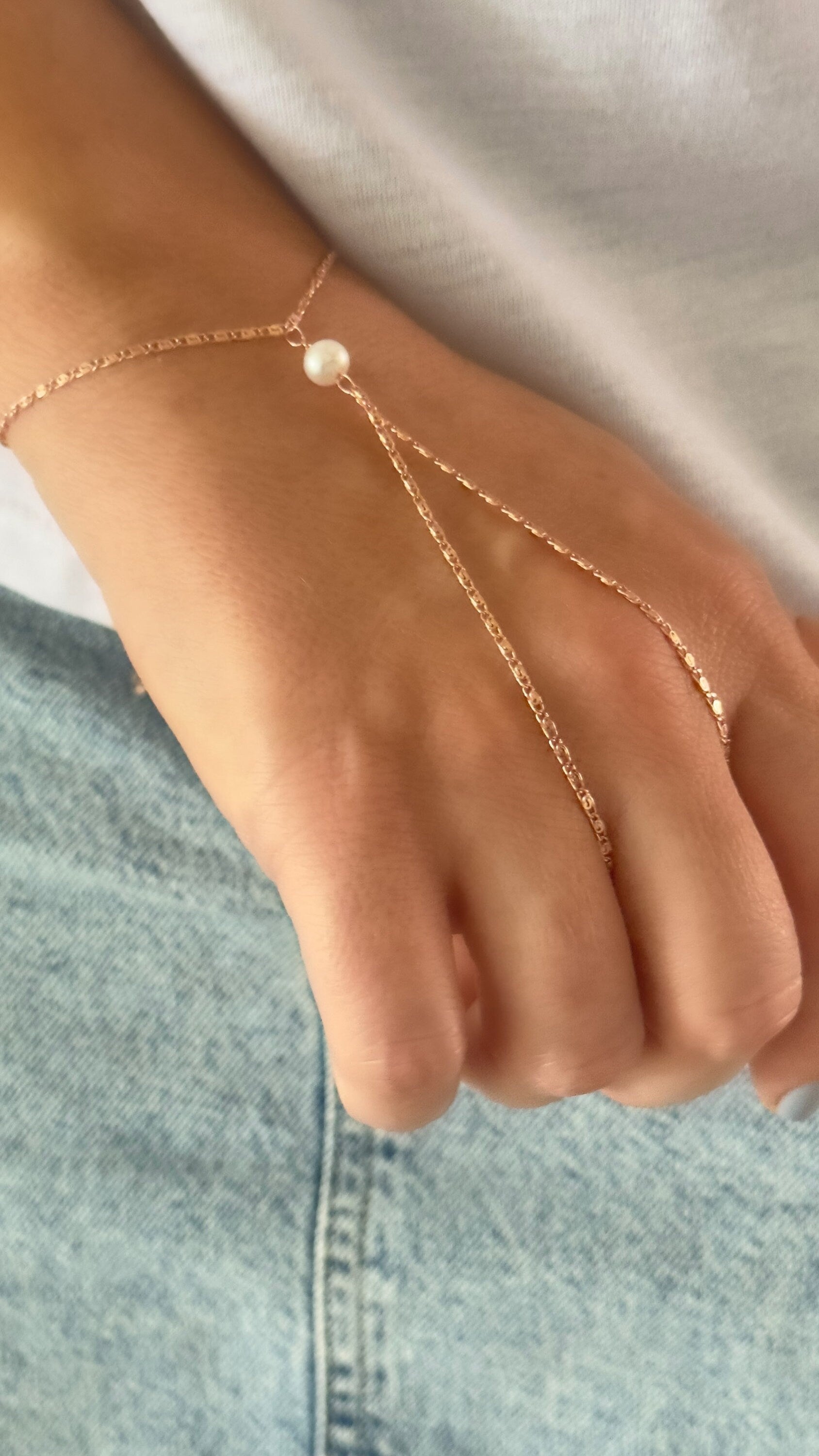 Pearl Hand Chain, Hand Chain Bracelet, Slave Bracelet, Ring Bracelet, Pearl Jewelry, Gift for Woman, 925 Silver, 14k Gold , 14K Rose Gold, Valentine's day gift, Minimalist Jewelry, Birthday Gift
