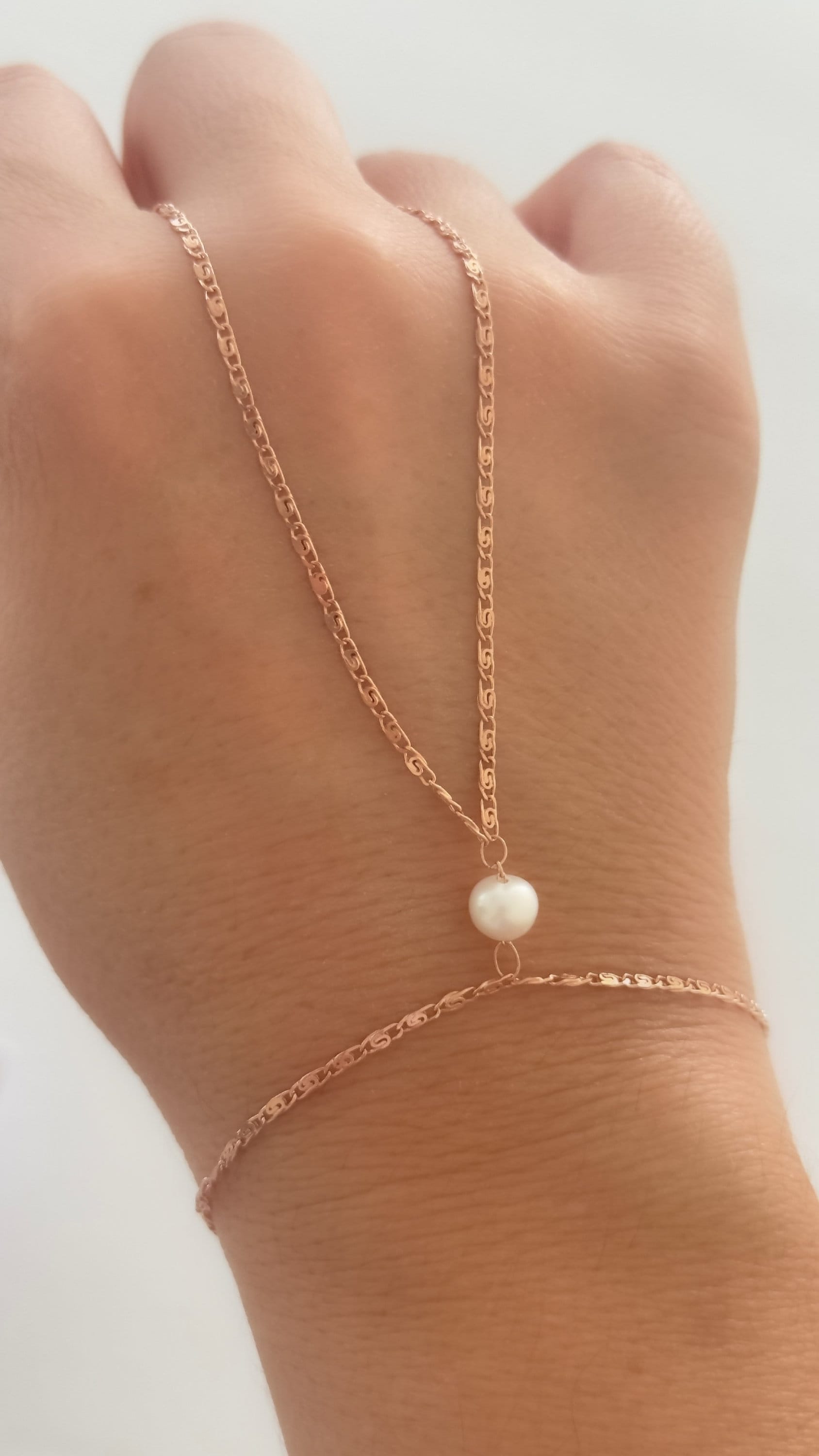 Pearl Hand Chain, Hand Chain Bracelet, Slave Bracelet, Ring Bracelet, Pearl Jewelry, Gift for Woman, 925 Silver, 14k Gold , 14K Rose Gold