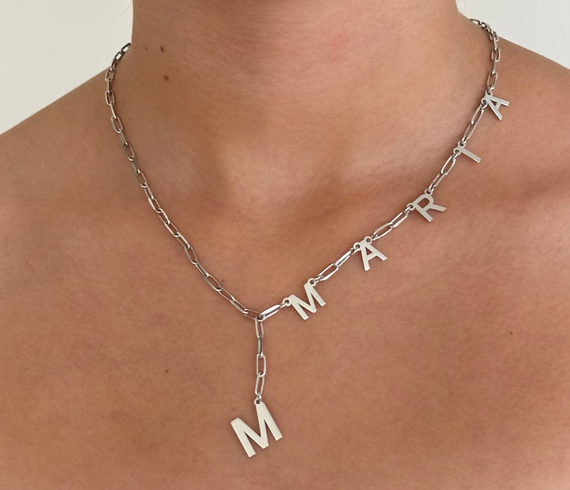 Personalized Name Necklace, Lariat Necklace, Custom Name Necklace, Drop Name Necklace, Initial Necklace, Personalized gifts, Long Y Necklace, Birthday Gift for her, Solid 925 Sterling Silver, Personalized Jewelry