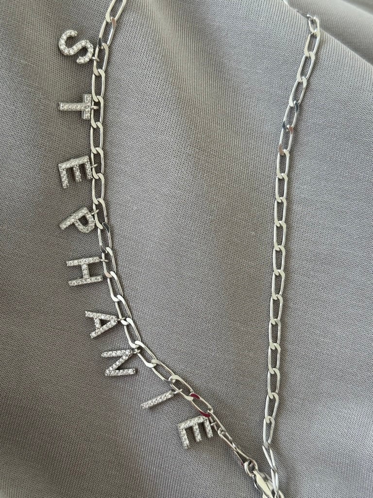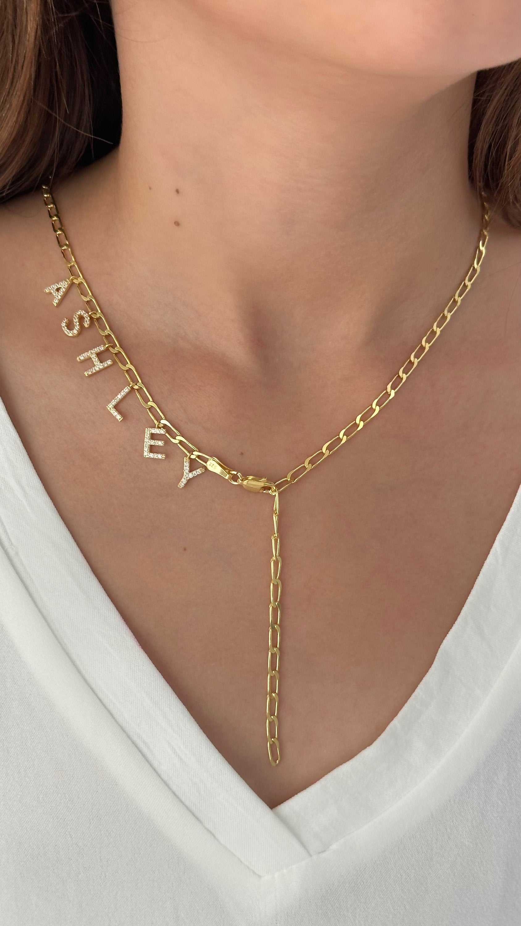 Personalized Lariat Name Necklace with Paperclip Chain, Lariat Necklace in Gold, Custom Name Necklace, CZ Stone Dangle Letter, Drop Necklace