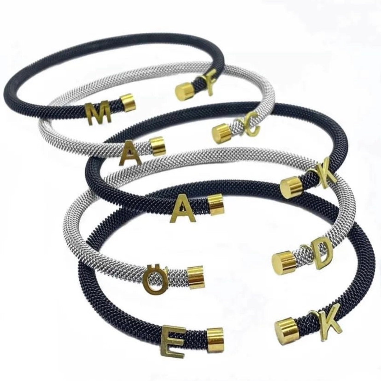 Cuff ending part an initials 925 Solid Sterling Silver- 14k Gold, 14k Rose Gold, Rhodium Plated