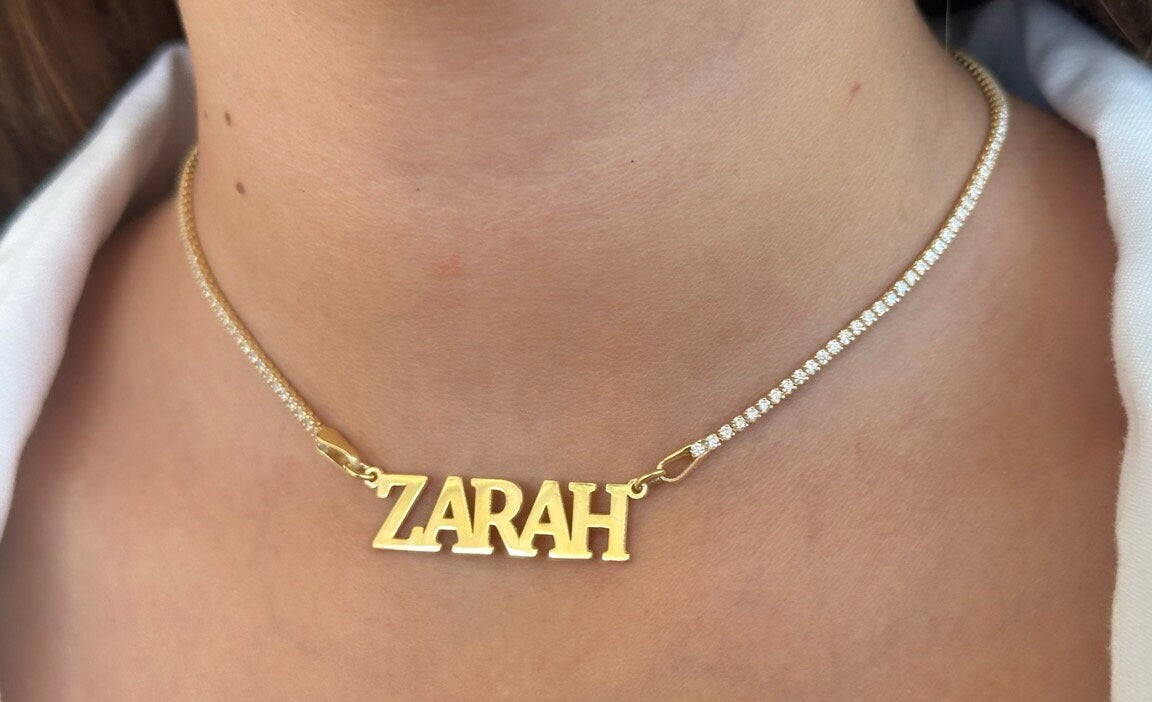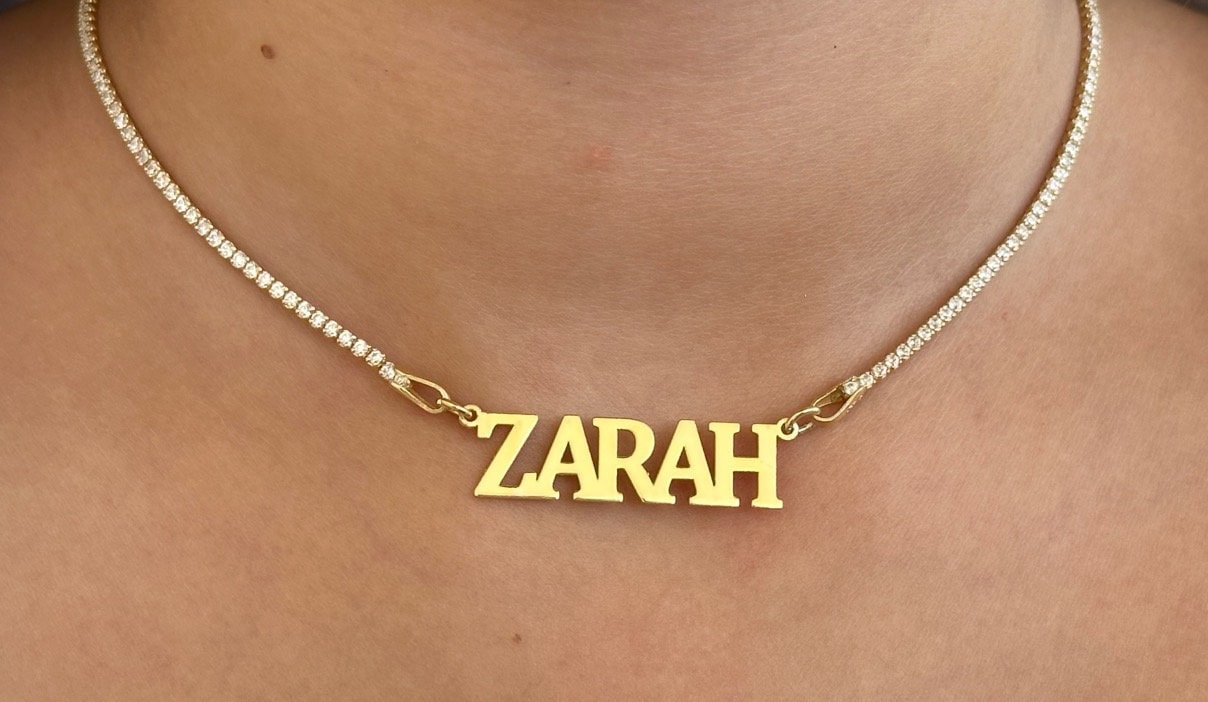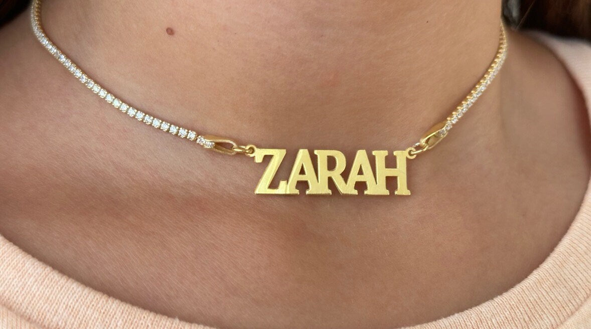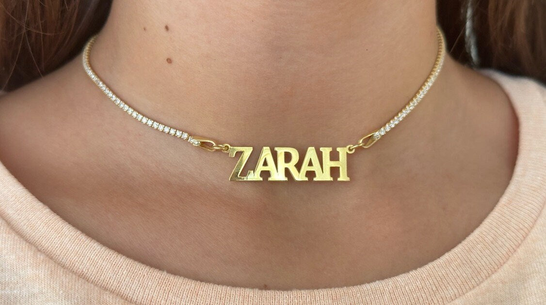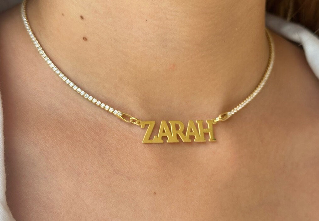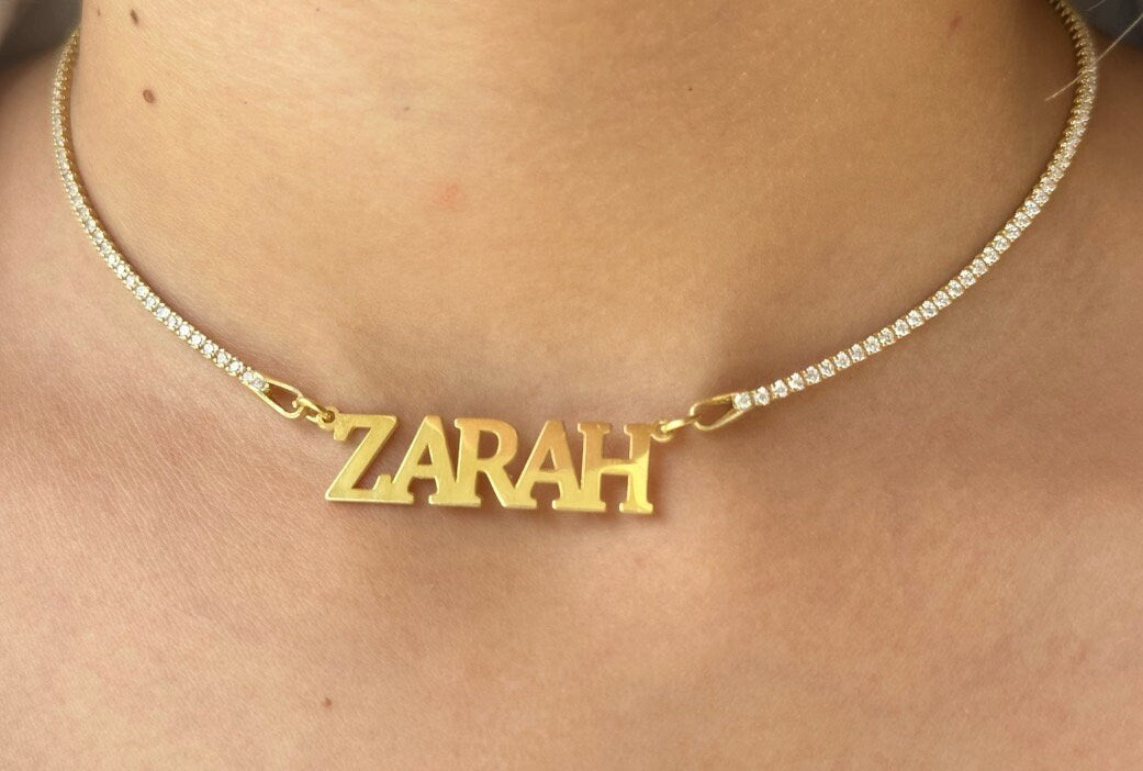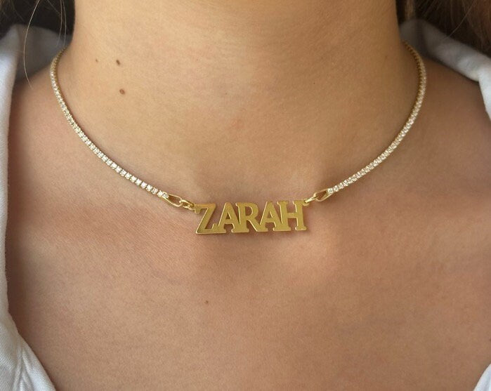 Personalized Tennis Name Necklace, Custom Tennis Name Choker Necklace, Personalized CZ Nameplate Necklace Personalize gift her, 925 Silver