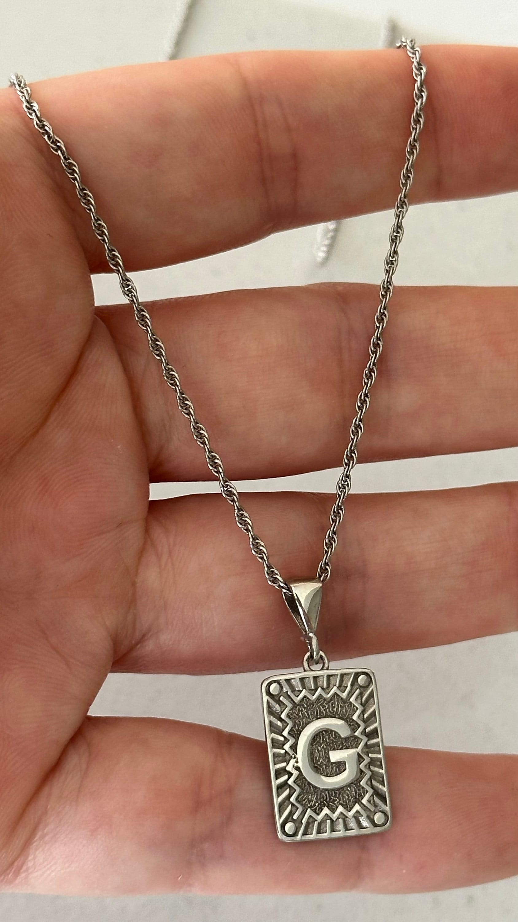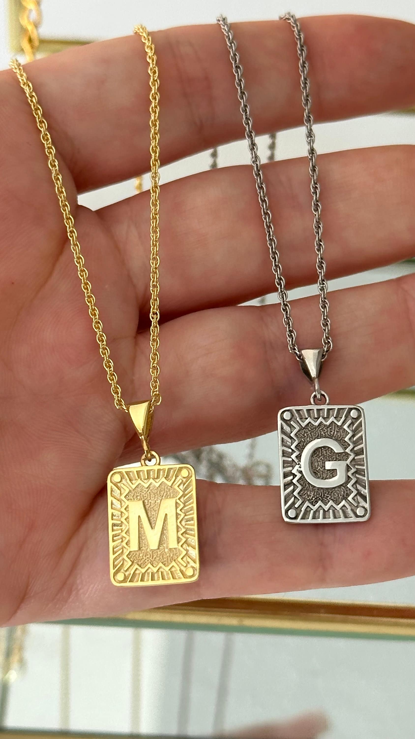 Retro Initial Letter Necklace, Layering Letter Pendant Necklace, Alphabet Rectangle Medallion Pendant, Personalized gift for her and him