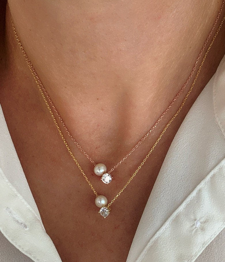 Solitaire Necklace, CZ Solitaire Necklace, Pearl Necklace, Single Pearl Necklace Choker, Gold Tiny Solitaire Necklace, Everyday Necklace, Minimal Necklace, Minimalist Jewelry, Pearl jewelry, Pearl Necklace, Pearl Choker,Simple Pearl Necklace, Pearl CZ Necklace, Birthday Gift for her, gold necklace, chain necklace, gift for mom, bridesmaid gifts, pearl chain necklace, tiny pearl necklace, charm necklace, Silver Necklace