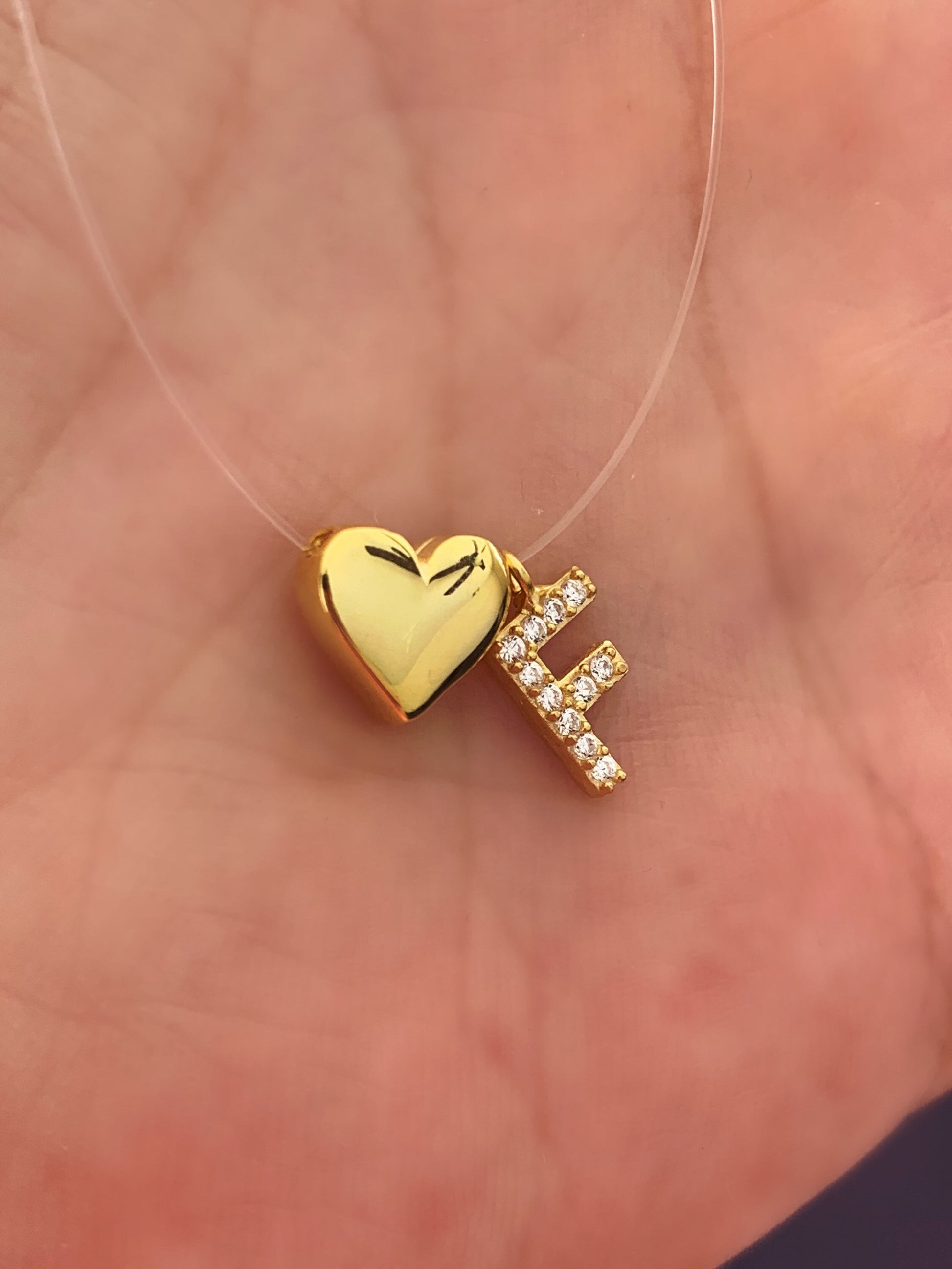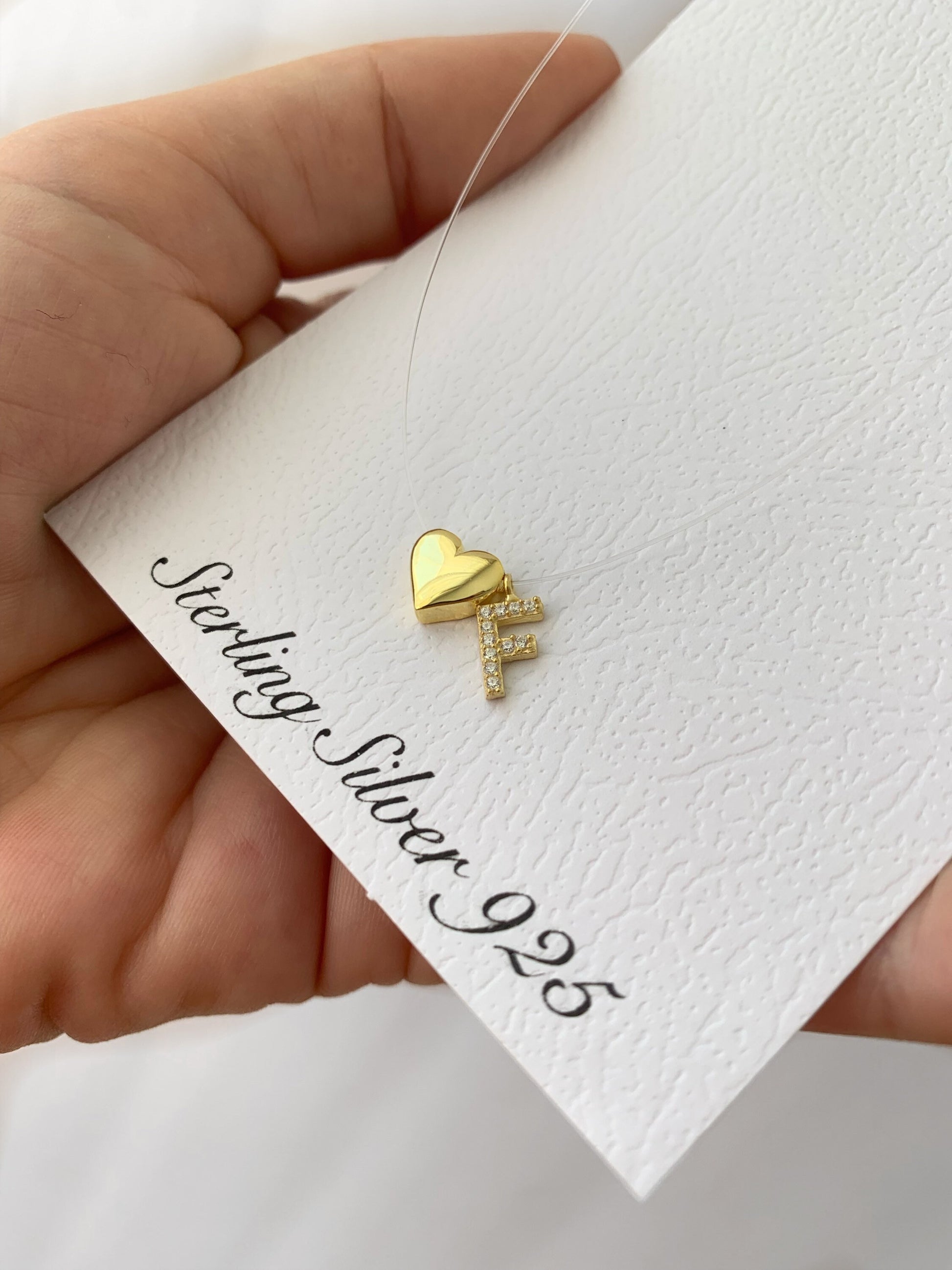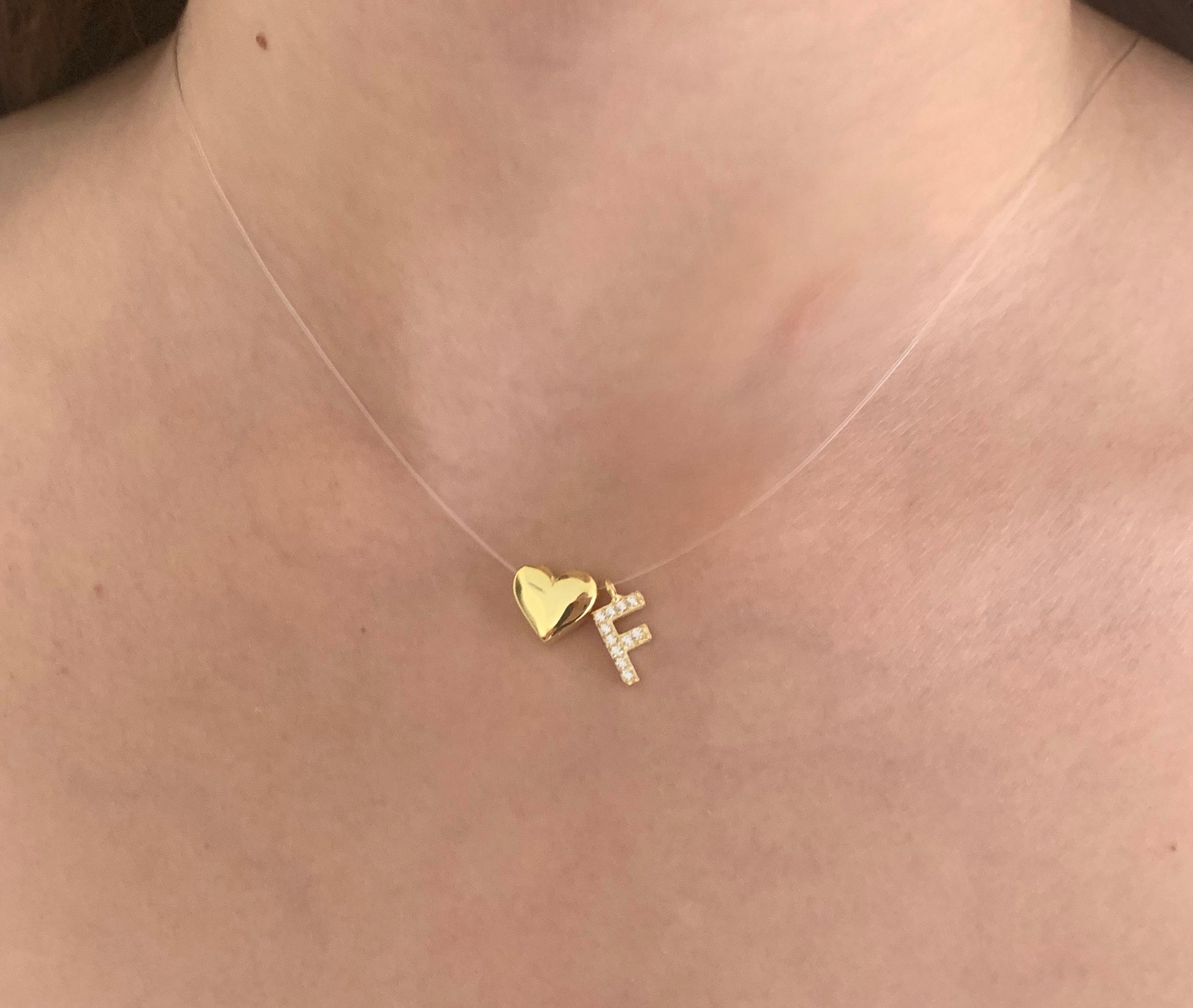 Tiny Initial Letter Necklace, Invisible Necklace, Clear Corg Chain, Custom Pave Letter Necklace, CZ Gemstone, Layering Minimalist Necklace, Personalized Gifts, Custom Necklace, 925 Sterling Silver