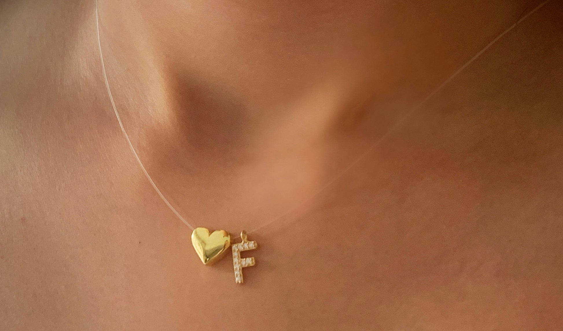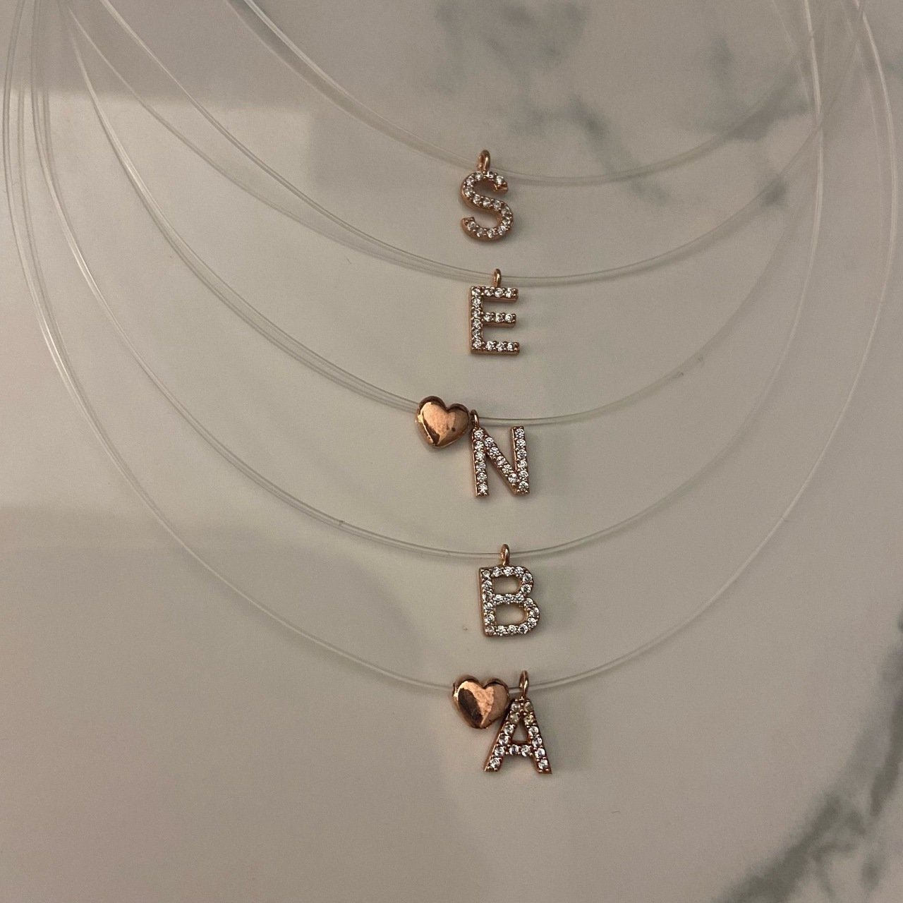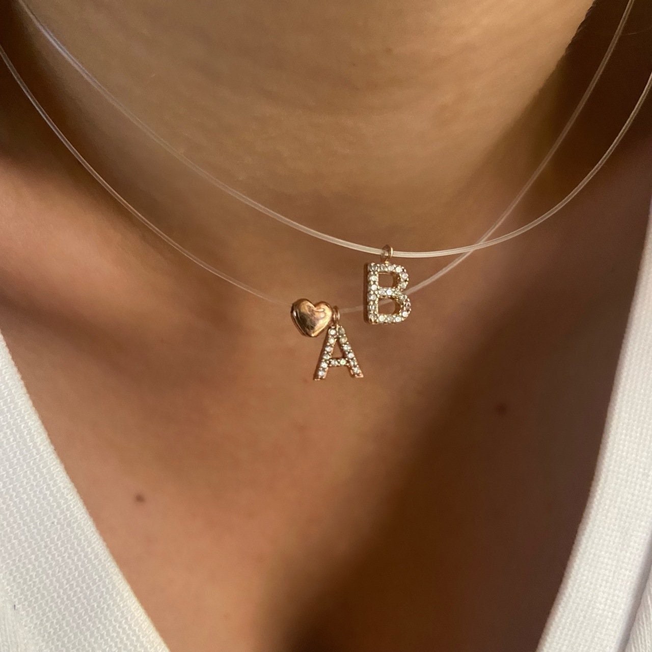 Tiny Initial Letter Necklace, Invisible Necklace, Clear Corg Chain, Custom Pave Letter Necklace, CZ Gemstone, Layering Minimalist Necklace, Personalized Gifts, Custom Necklace, 925 Sterling Silver
